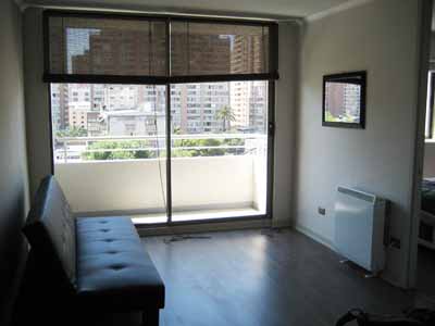 This 1 bedroom furnished Apartment is located a 5 minutes’ walk from the bus stop and a 5 minutes’ walk from the Metro Station Santa Ana.The apartment has a living room, dinning room, kitchen (open), 1 bathroom and balcony. The bedroom 1 has a double bed, closet, 2 nightstands, TV and bathroom in suite. The place measures 33m² + 2m² of balcony approximately The cost of services like common expenses, hot water, cold water and electricity are paid in advance together with the monthly rent, with a consumption limit of $ 101USD. The accommodation has in-house share laundry, price per load for both washers or dryers is $ 1USD approximately. You should pay a security deposit, which will be returned at the end of the lease term; The tenant(s) must also pay $ 34USD fee when the unit is returned for cleaning. The unit is located close to the emblematic high schools 1 Javiera Carrera and Liceo de Aplicación, in addition to the national monument, the church Iglesia Parroquial de Santa Ana. A few steps away, you can find the square Plaza de Armas, an important part of the historic center of Santiago, renowned for its architecture and infrastructure; such as the Post Office of Santiago, the Cathedral of Santiago, the Municipality and the Casa Colorada.