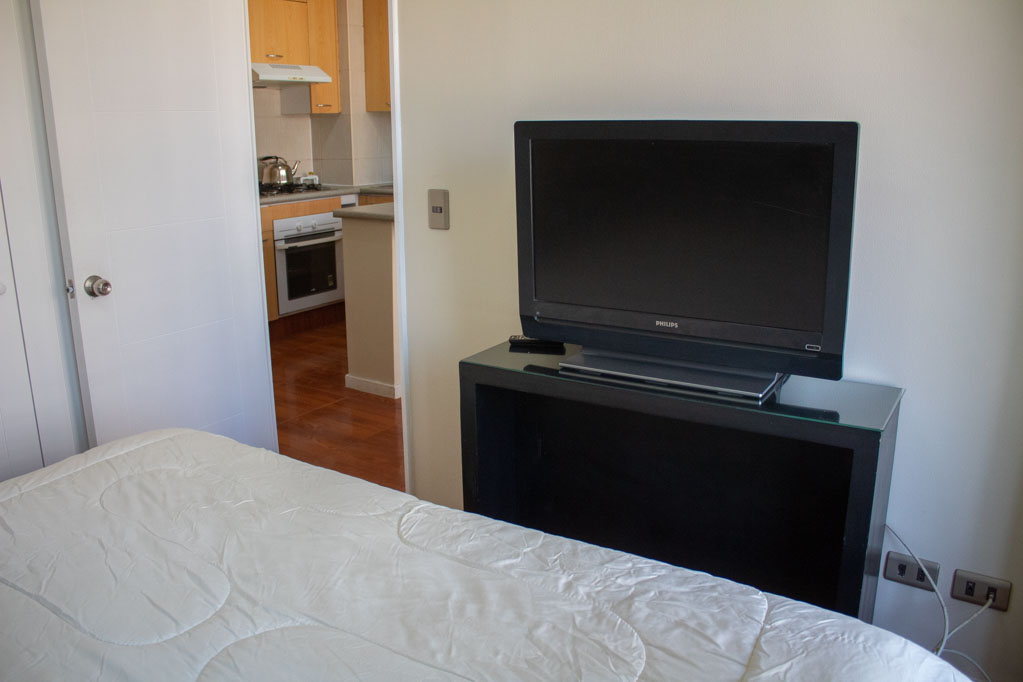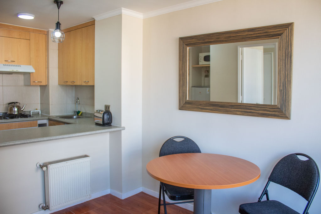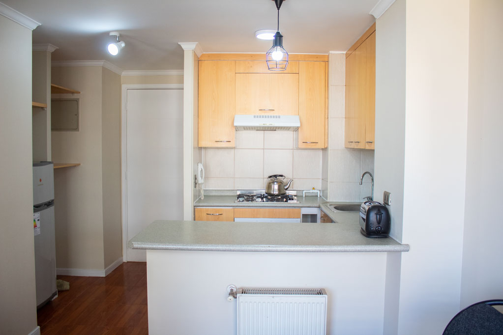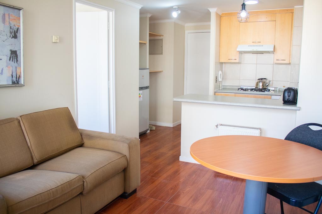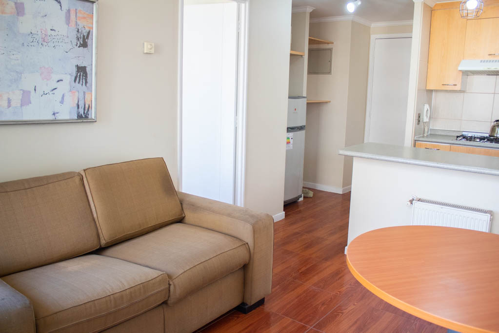 This 1 bedroom furnished Apartment is located a 5 minutes’ walk from the bus stop and a 5 minutes’ walk from the Metro Station Baquedano.The apartment has a living room, dinning room, kitchen (open), 1 bathroom and terrace. The bedroom 1 has a double bed, closet, 2 nightstands, TV and bathroom in suite. The place measures 35m² + 3m² of balcony approximately The cost of services like common expenses, hot water, cold water, electricity and gas are paid in advance together with the monthly rent, with a consumption limit of $ 139USD. The accommodation has in-house share laundry, price per load for both washers or dryers is $ 1USD approximately. You should pay a security deposit, which will be returned at the end of the lease term; The tenant(s) must also pay $ 35USD fee when the unit is returned for cleaning. The unit is located close to Bustamante Park, where it is possible to walk, practice sports or visit the library (literary coffee shop). At just a few steps away from the neighborhood Bellavista. It is unique for its identity and multiple artistic interventions, museums, galleries and squares; a combination of different costumes, handicrafts, besides its restaurants, nightclubs, bars and cafés. Nearby is the San Cristóbal Hill where you can walk and practice sports; in addition to an important tourist attraction: the house of the poet Pablo Neruda "La Chascona".