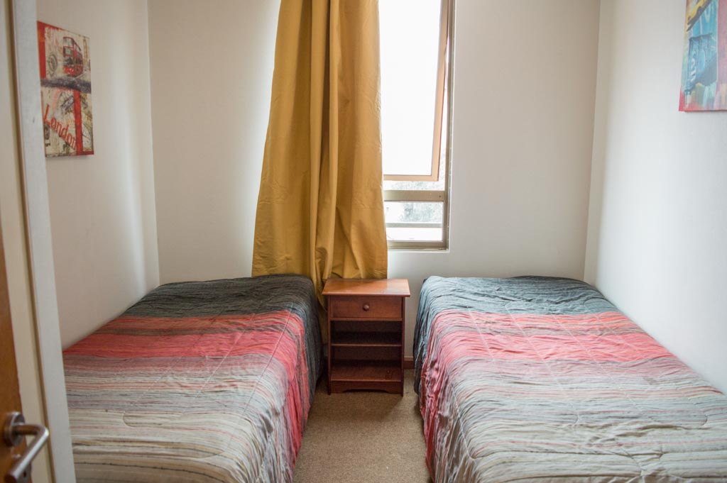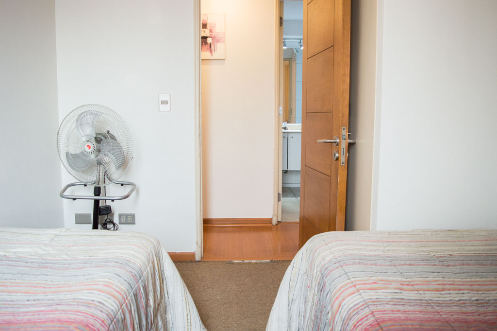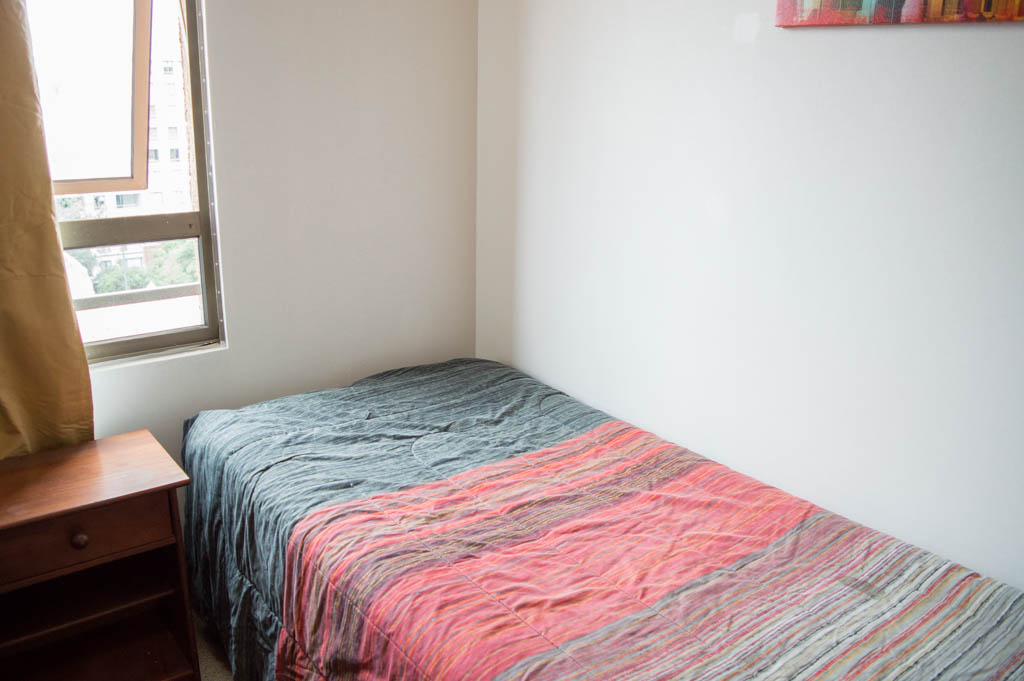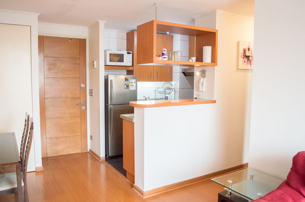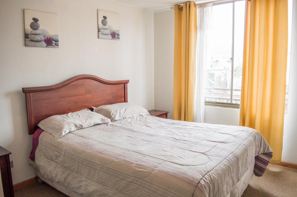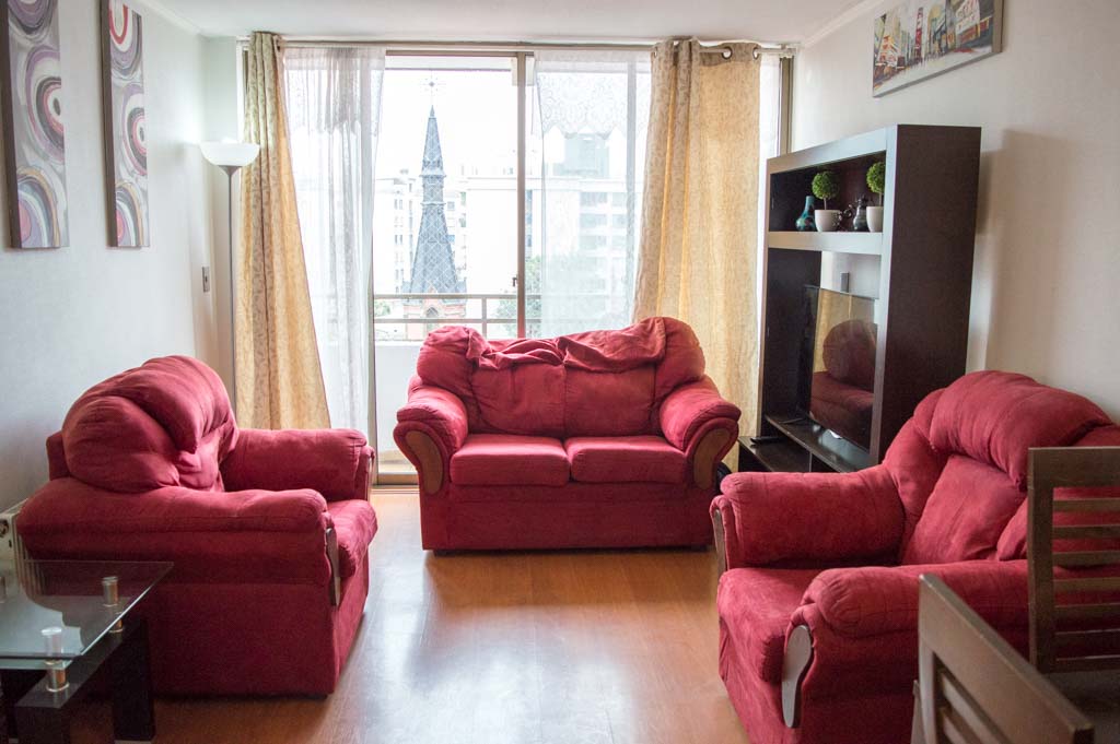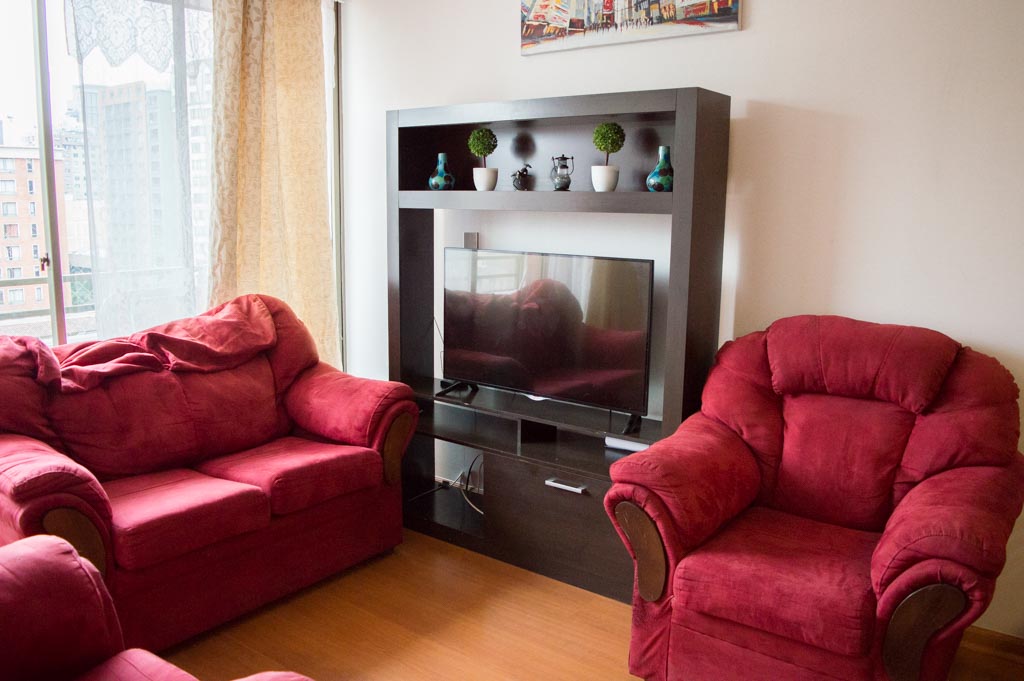 This 2 bedrooms furnished Apartment is located a 1 minute’ walk from the bus stop and a 5 minutes’ walk from the Metro Station Bellas Artes.The apartment has a living room, dinning room, kitchen (open), 2 bathrooms and balcony. The bedroom 1 has a double bed, closet, 2 nightstands, TV and bathroom in suite. The bedroom 2 has a 2 single beds, closet and nightstand. The place measures 56m² + 3m² of balcony approximately The cost of services like common expenses, hot water, cold water, electricity and gas are paid in advance together with the monthly rent, with a consumption limit of $ 121USD. The accommodation has in-house share laundry, price per load for both washers or dryers is $ 2USD approximately. You should pay a security deposit, which will be returned at the end of the lease term; The tenant(s) must also pay $ 33USD fee when the unit is returned for cleaning. The unit is located close to the neighborhoods Lastarria and Bellas Artes (historic - cultural neighborhoods), characterized by its XIX century mansions restored and used as restaurants, coofee shops, bookstores, cultural centers, among others. A few steps from it, you will find the Chilean National Museum of Fine Arts, in which there are houses the most valuable national and international arts, and the Forest Park, an ideal place for sharing with friends, play sports and go for a walk.