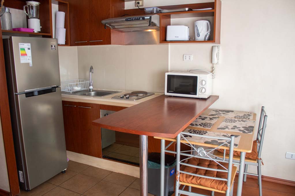 This 1 bedroom furnished Apartment is located a 1 minute’ walk from the bus stop and a 5 minutes’ walk from the Metro Station La Moneda.The apartment has a living room, dinning room, kitchen (open) and 1 bathroom. The bedroom 1 has a double bed, closet, 2 nightstands and bathroom in suite. The place measures 30m² approximately. Should be considered, the payment of the expenses of services of common expenses, hot water, cold water, electricity and internet that add $ 93USD approximately. The accommodation has in-house share laundry, price per load for both washers or dryers is $ 1USD approximately. You should pay a security deposit, which will be returned at the end of the lease term; The tenant(s) must also pay $ 23USD fee when the unit is returned for cleaning. The unit is located close to Bernardo O'Higgins Avenue (better known as Alameda,) the Moneda Palace and the square Plaza de la Constitución, among other buildings of historical and architectural value. You can also find multiple restaurants, bars, banks and government entities.