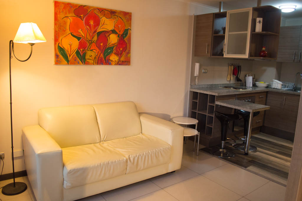 This 1 bedroom furnished Apartment is located a 2 minutes’ walk from the bus stop and a 12 minutes’ walk from the Metro Station Parque Bustamante.The apartment has a living room, dinning room, kitchen (open) and 1 bathroom. The bedroom 1 has a double bed, closet, 2 nightstands, TV and bathroom in suite. The place measures 30m² + 2m² of balcony approximately The cost of services like common expenses, hot water, cold water, electricity, gas and internet are paid in advance together with the monthly rent, with a consumption limit of $ 139USD. The accommodation has in-house share laundry approximately. You should pay a security deposit, which will be returned at the end of the lease term; The tenant(s) must also pay $ 58USD fee when the unit is returned for cleaning. The unit is located close to the emblematic high schools Liceo Arturo Alessandri Palma and the Liceo Carmela Carvajal de Prat. They are located in the Santa Isabel neighborhood, which has grown exponentially over the years due to the great estate development, which has allowed a generation of green areas and sport spaces. In the same sector is the neighborhood Italia where various artists, designers, masters of gastronomy, small shops, and even mechanical workshops have been installed.