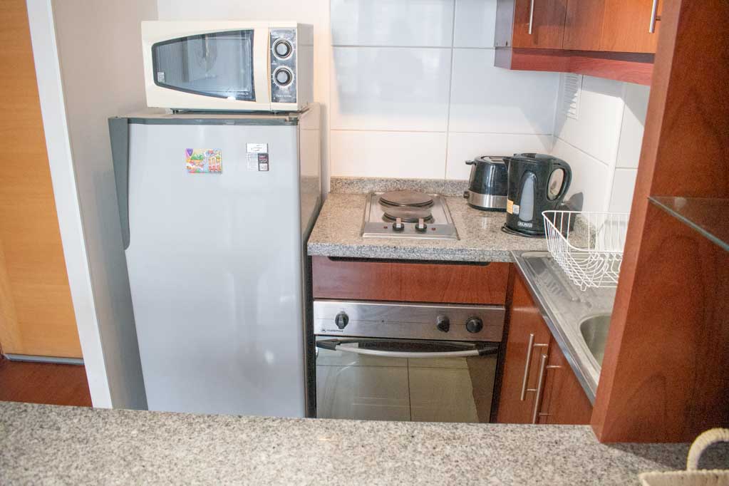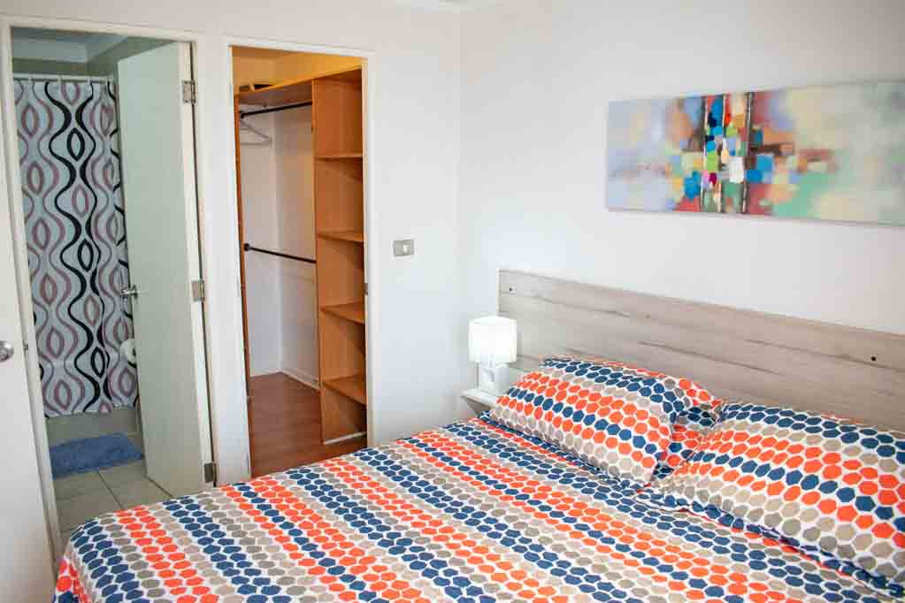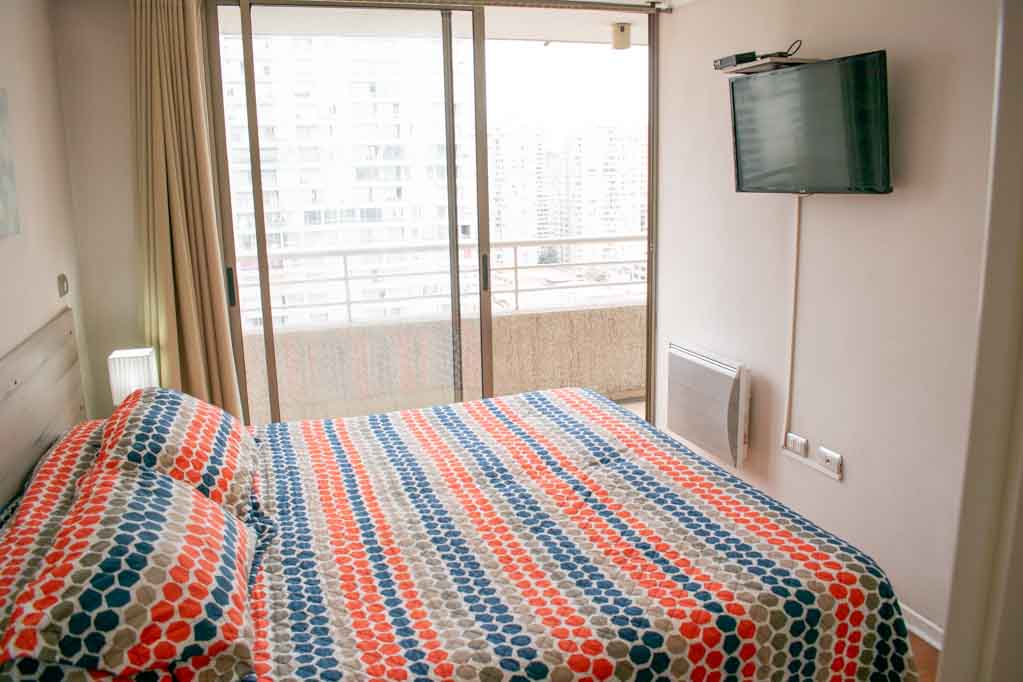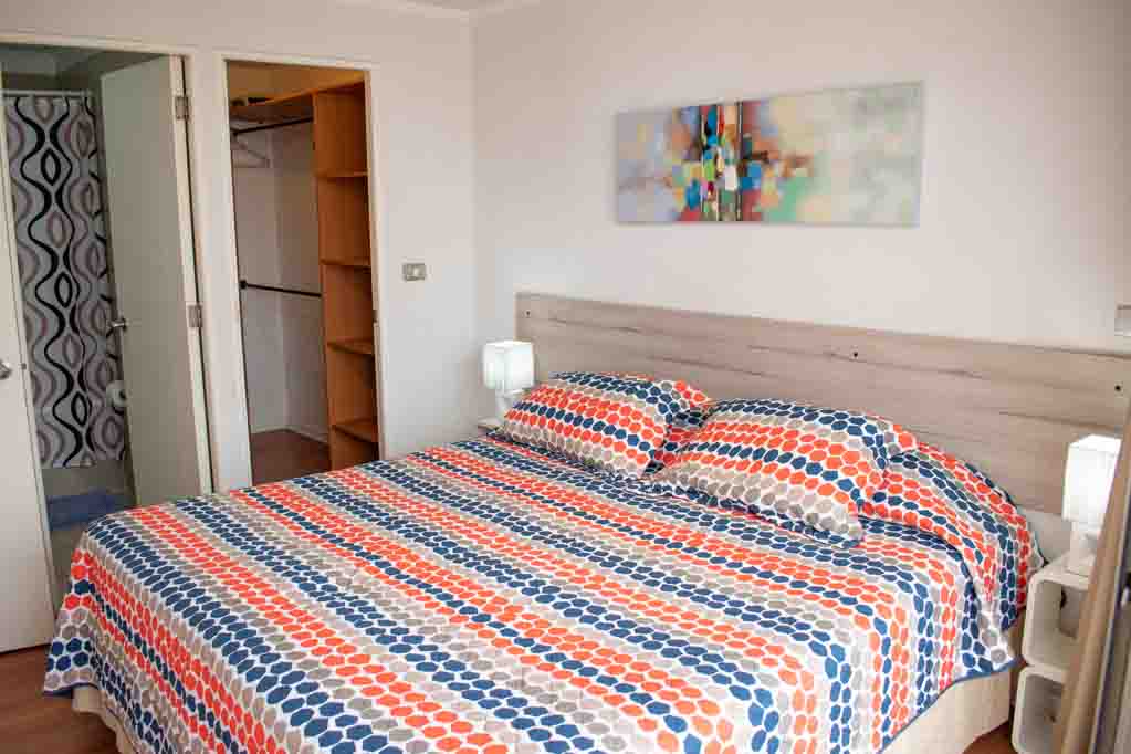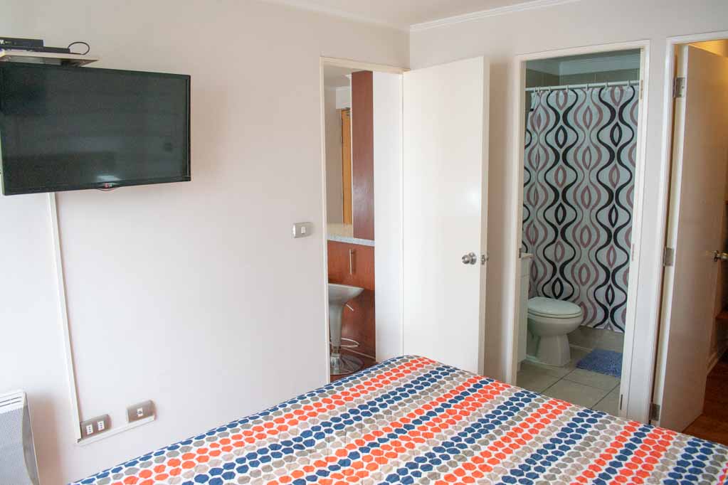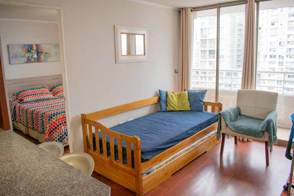 This 1 bedroom furnished Apartment is located a 5 minutes’ walk from the bus stop and a 5 minutes’ walk from the Metro Station Universidad de Chile.The apartment has a living room, dinning room, kitchen (open), 1 bathroom and terrace. The bedroom 1 has a double bed, walk-in closet, 2 nightstands, TV and bathroom in suite. The place measures 31m² + 6m² of balcony approximately The cost of services like common expenses, hot water, cold water, electricity, internet and TV cable are paid in advance together with the monthly rent, with a consumption limit of $ 131USD. The accommodation has in-house share laundry, price per load for both washers or dryers is $ 2USD approximately. You should pay a security deposit, which will be returned at the end of the lease term; The tenant(s) must also pay $ 27USD fee when the unit is returned for cleaning. The unit is located close to Bernardo O'Higgins Avenue (better known as Alameda,) where you can find different shops, a variety of public transport and the civic center of Santiago; also, a few steps away from the subway, you can find the emblematic José Miguel Carrera National Institute, the University of Chile and the Municipal Theater of Santiago.