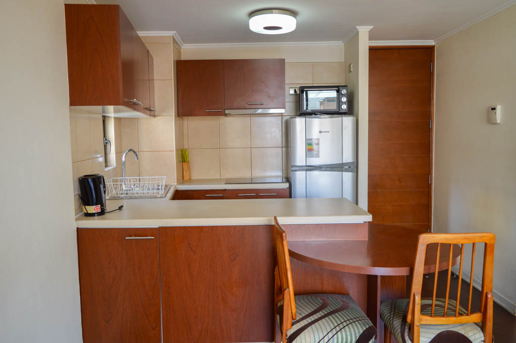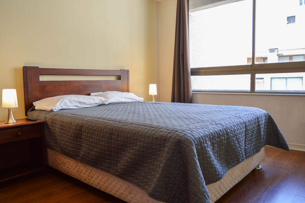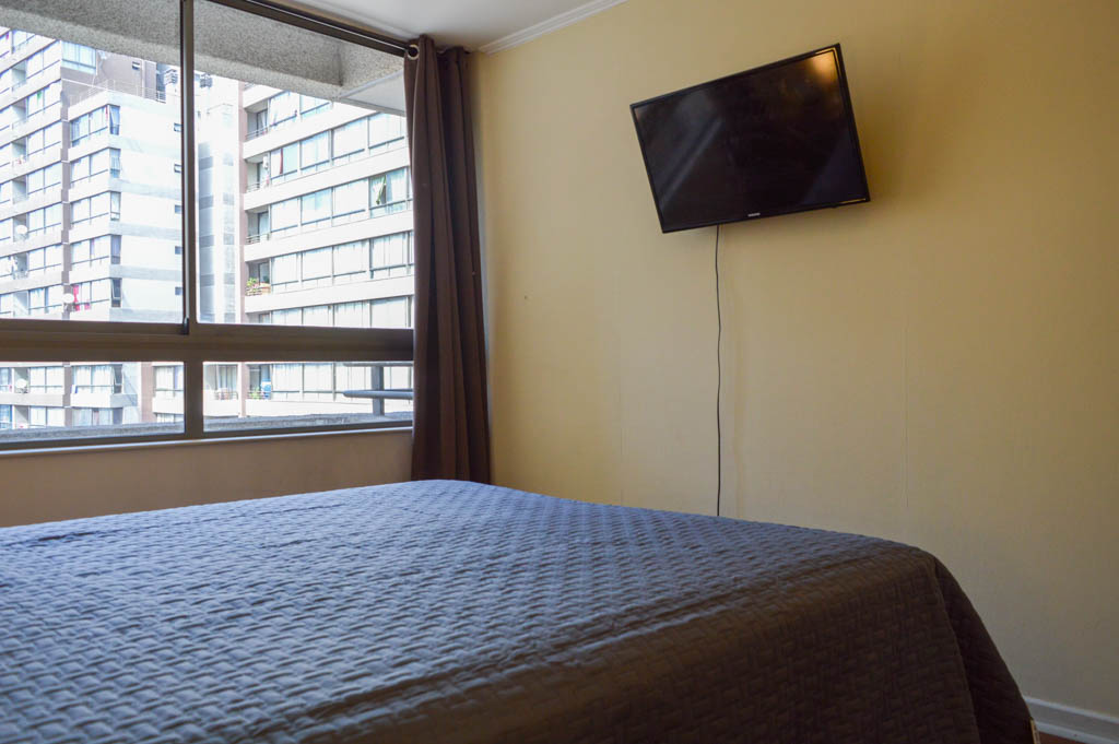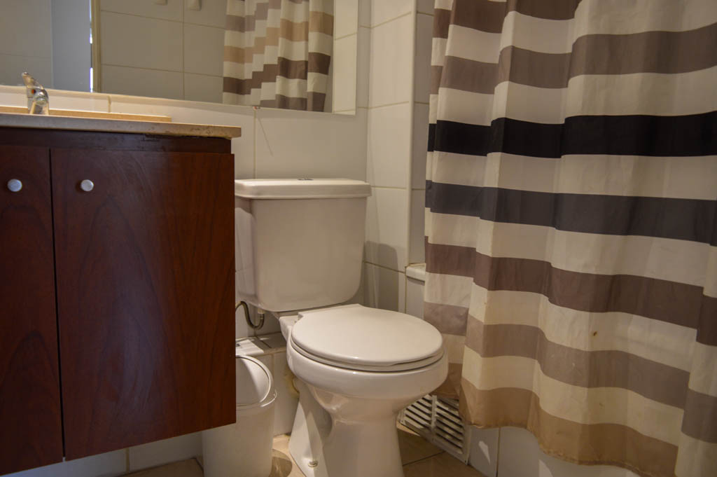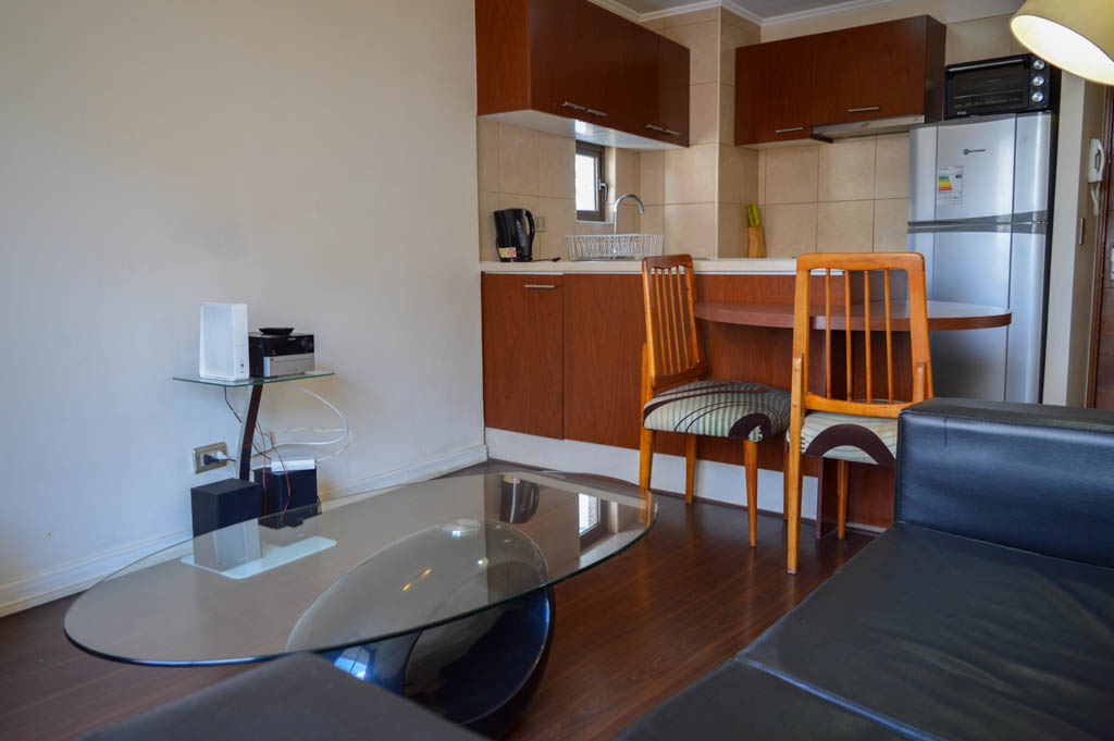 This 2 bedrooms furnished Apartment is located a 6 minutes’ walk from the bus stop and a 8 minutes’ walk from the Metro Station Santa Ana.The apartment has a living room, dinning room, kitchen (open), 2 bathrooms and balcony. The bedroom 1 has a double bed, closet, 2 nightstands, TV and bathroom in suite. The bedroom 2 has a single bed, closet and nightstand. The place measures 48m² + 6m² of balcony approximately The cost of services like common expenses, hot water, cold water and electricity are paid in advance together with the monthly rent, with a consumption limit of $ 116USD. The accommodation has in-house share laundry, price per load for both washers or dryers is $ 1USD approximately. You should pay a security deposit, which will be returned at the end of the lease term; The tenant(s) must also pay $ 35USD fee when the unit is returned for cleaning. The unit is located close to the emblematic high schools 1 Javiera Carrera and Liceo de Aplicación, in addition to the national monument, the church Iglesia Parroquial de Santa Ana. A few steps away, you can find the square Plaza de Armas, an important part of the historic center of Santiago, renowned for its architecture and infrastructure; such as the Post Office of Santiago, the Cathedral of Santiago, the Municipality and the Casa Colorada.