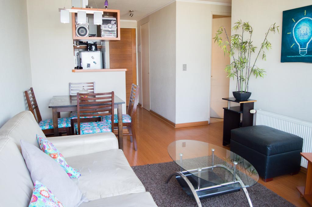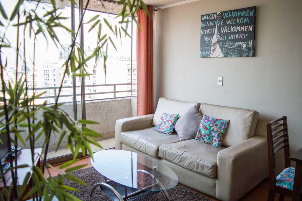 This 2 bedrooms furnished Apartment is located a 1 minute’ walk from the bus stop and a 5 minutes’ walk from the Metro Station Bellas Artes.The apartment has a living room, dinning room, kitchen (open), 2 bathrooms and balcony. The bedroom 1 has a double bed, closet, 2 nightstands and bathroom in suite. The bedroom 2 has a single bed and nightstand. The place measures 56m² + 3m² of balcony approximately Should be considered, the payment of the expenses of services of common expenses, hot water, cold water, electricity, gas, internet and TV cable that add $ 158USD approximately. The accommodation has in-house share laundry, price per load for both washers or dryers is $ 2USD approximately. You should pay a security deposit, which will be returned at the end of the lease term; The tenant(s) must also pay $ 29USD fee when the unit is returned for cleaning. The unit is located close to the neighborhoods Lastarria and Bellas Artes (historic - cultural neighborhoods), characterized by its XIX century mansions restored and used as restaurants, coofee shops, bookstores, cultural centers, among others. A few steps from it, you will find the Chilean National Museum of Fine Arts, in which there are houses the most valuable national and international arts, and the Forest Park, an ideal place for sharing with friends, play sports and go for a walk.