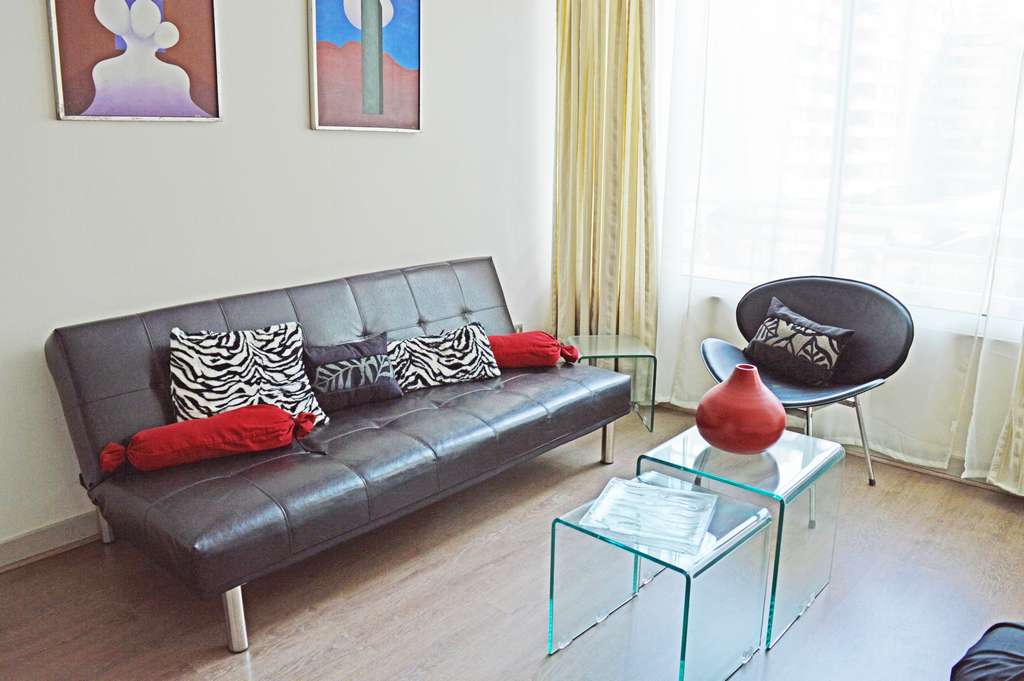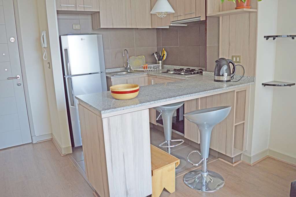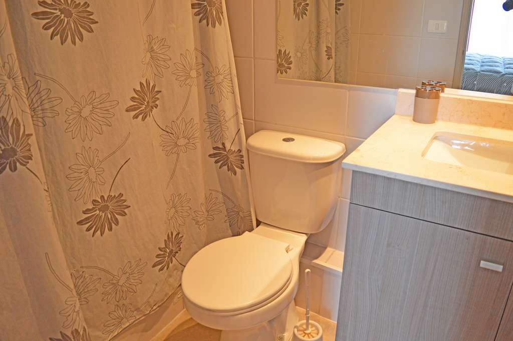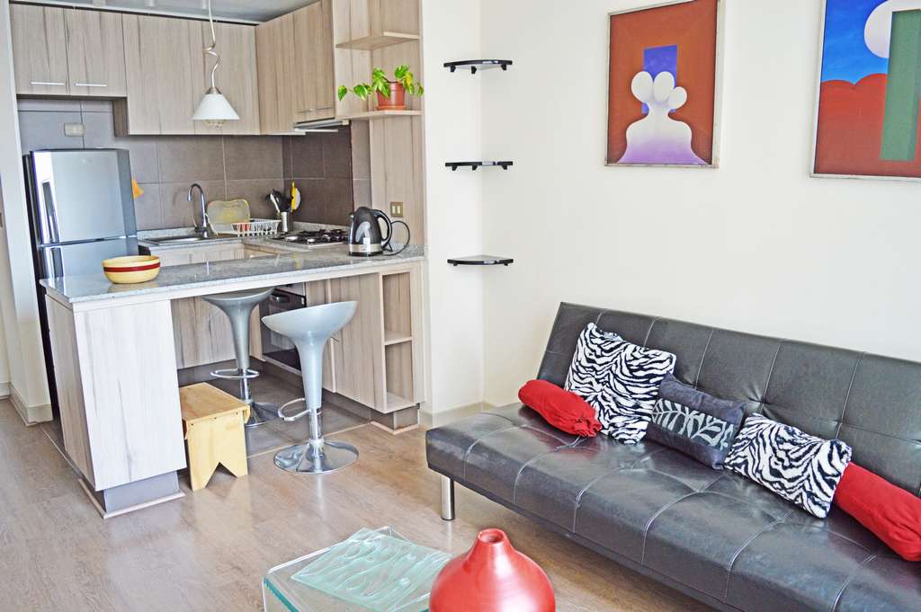This 2 bedrooms furnished Apartment is located a 5 minutes’ walk from the bus stop and a 9 minutes’ walk from the Metro Station Universidad de Chile.The apartment has a living room, dinning room, kitchen (open), 2 bathrooms and balcony. The bedroom 1 has a double bed, closet, 2 nightstands and bathroom in suite. The bedroom 2 has a single bed and closet. The place measures 43m² + 2m² of balcony approximately Should be considered, the payment of the expenses of services of common expenses, cold water, electricity and gas that add $ 117USD approximately. The accommodation has in-house share laundry, price per load for both washers or dryers is $ 1USD approximately. You should pay a security deposit, which will be returned at the end of the lease term; The tenant(s) must also pay $ 47USD fee when the unit is returned for cleaning. The unit is located close to Bernardo O'Higgins Avenue (better known as Alameda,) where you can find different shops, a variety of public transport and the civic center of Santiago; also, a few steps away from the subway, you can find the emblematic José Miguel Carrera National Institute, the University of Chile and the Municipal Theater of Santiago.