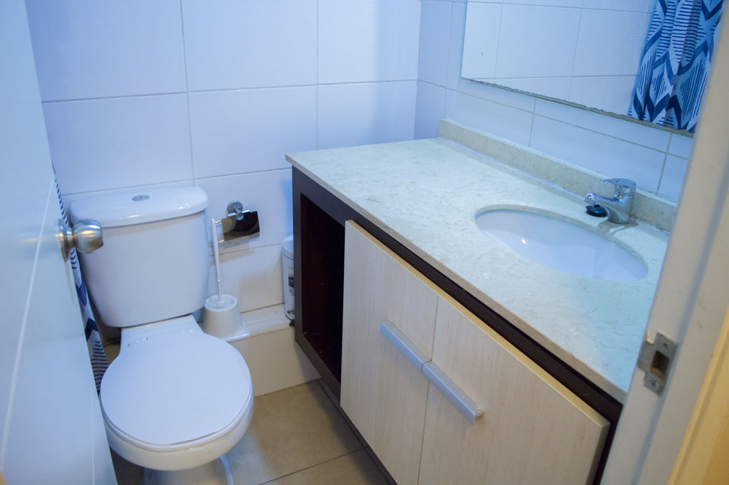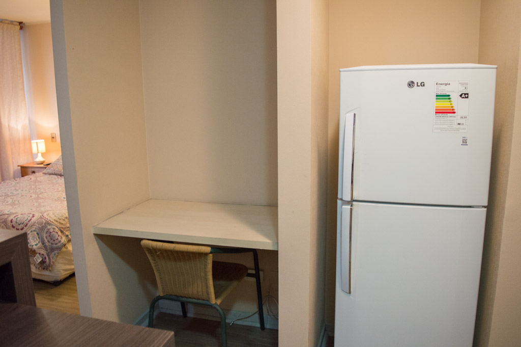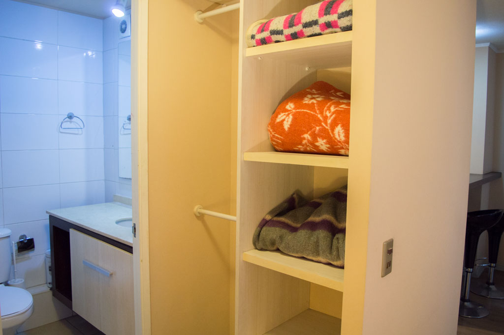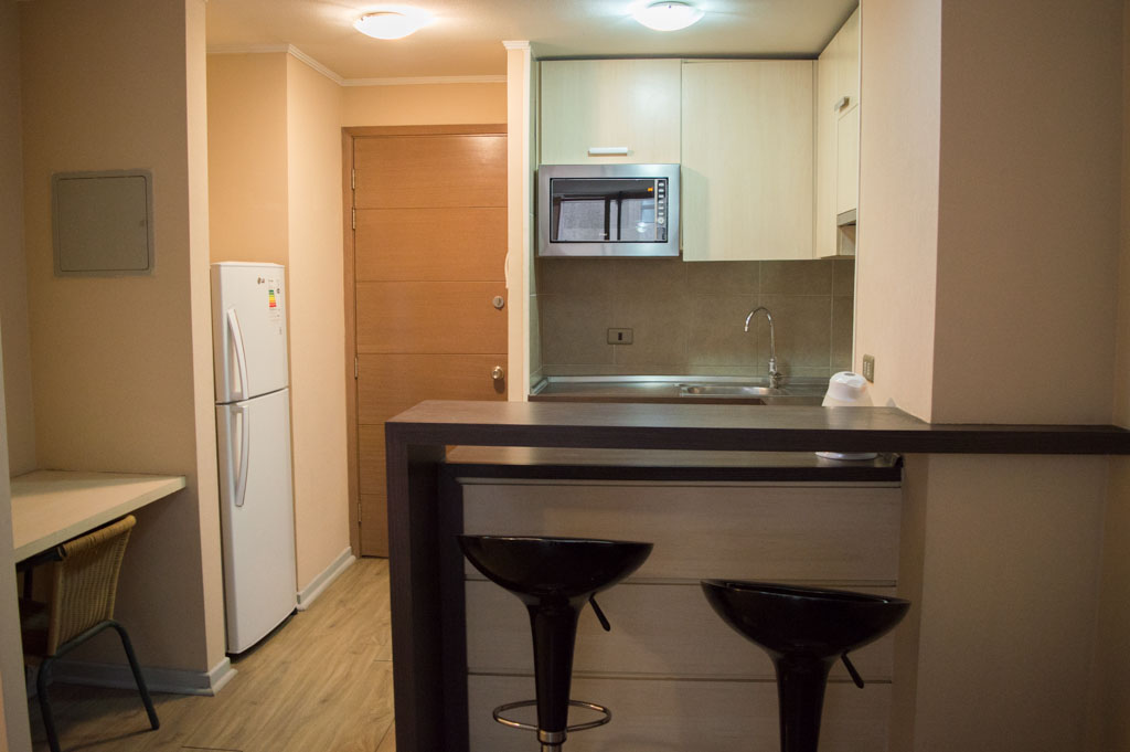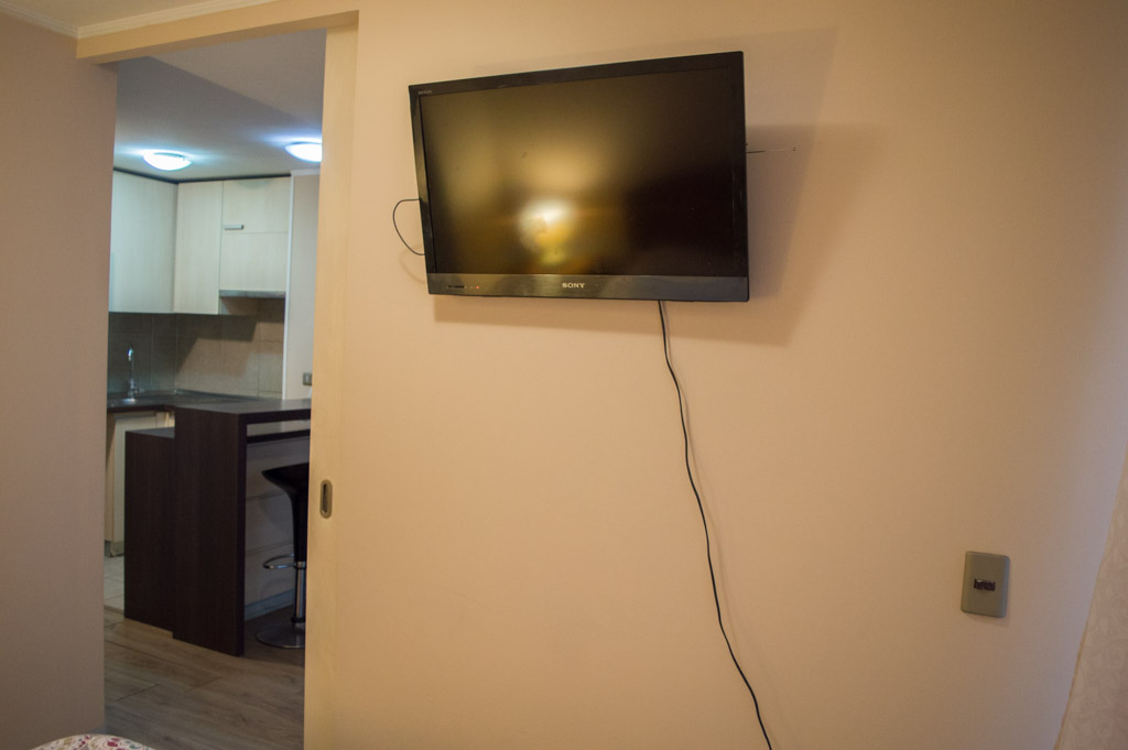 This 1 bedroom furnished Apartment is located a 3 minutes’ walk from the bus stop and a 5 minutes’ walk from the Metro Station Santa Lucía.The apartment has a living room, dinning room, kitchen (open), 1 bathroom and balcony. The bedroom 1 has a double bed, closet, 2 nightstands, TV and bathroom in suite. The place measures 33m² + 3m² of balcony approximately Should be considered, the payment of the expenses of services of common expenses, hot water, cold water and electricity that add $ 103USD approximately. The accommodation has in-house share laundry, price per load for both washers or dryers is $ 2USD approximately. You should pay a security deposit, which will be returned at the end of the lease term; The tenant(s) must also pay $ 54USD fee when the unit is returned for cleaning. The unit is located close to the Biblioteca Nacional de Chile, the Municipal Theater of Santiago, Cine Arte, craft fairs, cultural centers and the Santa Lucia Hill (an important focus for tourism and Sunday walks due to the attractions it presents, such as water fountains, terraces and viewpoints where you can enjoy a privileged view of Santiago.)
