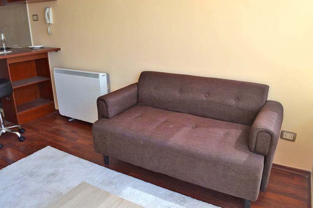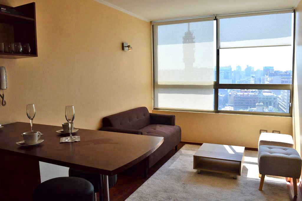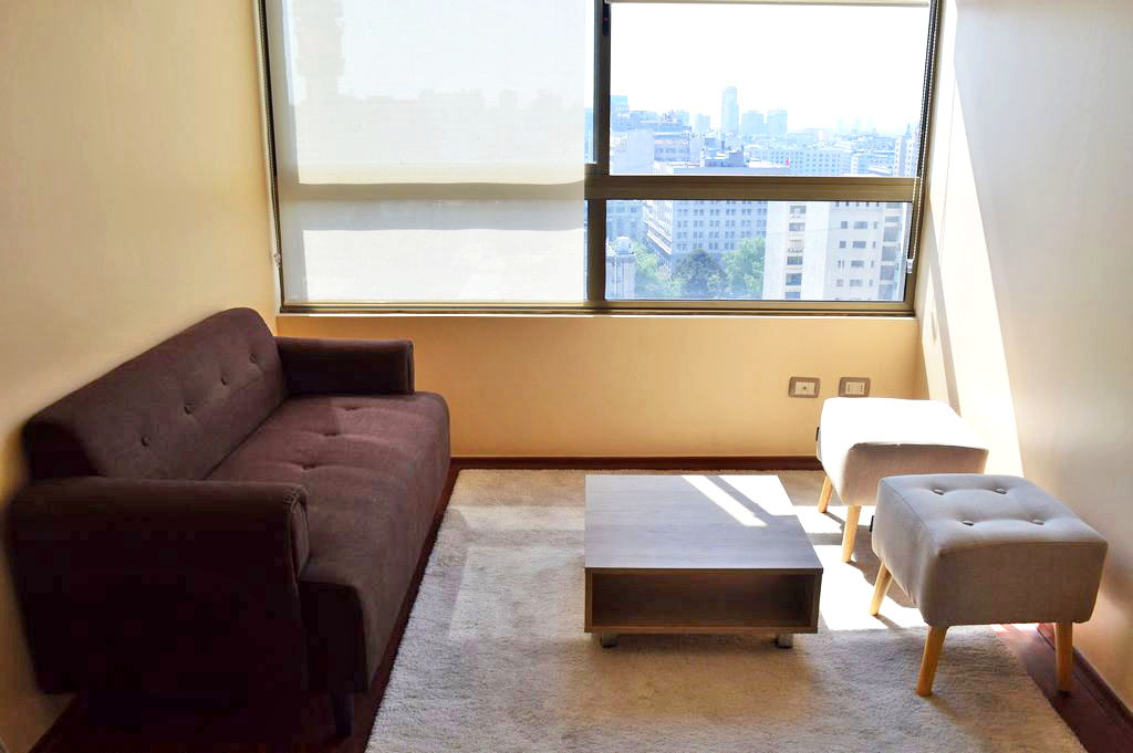 This 1 bedroom furnished Apartment is located a 3 minutes’ walk from the bus stop and a 3 minutes’ walk from the Metro Station La Moneda.The apartment has a living room, kitchen (open) and 1 bathroom. The bedroom 1 has a double bed, 2 nightstands, TV and bathroom in suite. The place measures 30m² approximately. The cost of services like common expenses, hot water, cold water and electricity are paid in advance together with the monthly rent, with a consumption limit of $ 104USD. The accommodation has in-house share laundry, price per load for both washers or dryers is $ 2USD approximately. You should pay a security deposit, which will be returned at the end of the lease term; The tenant(s) must also pay $ 33USD fee when the unit is returned for cleaning. The unit is located close to Bernardo O'Higgins Avenue (better known as Alameda,) the Moneda Palace and the square Plaza de la Constitución, among other buildings of historical and architectural value. You can also find multiple restaurants, bars, banks and government entities.