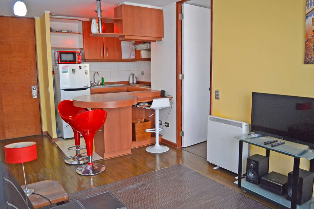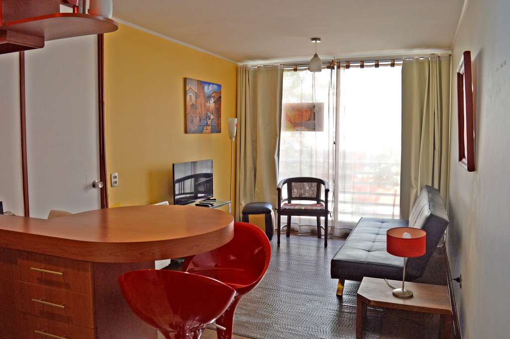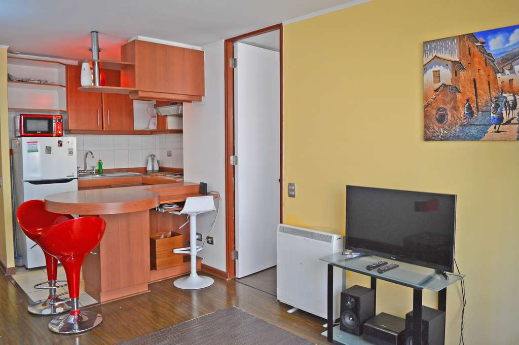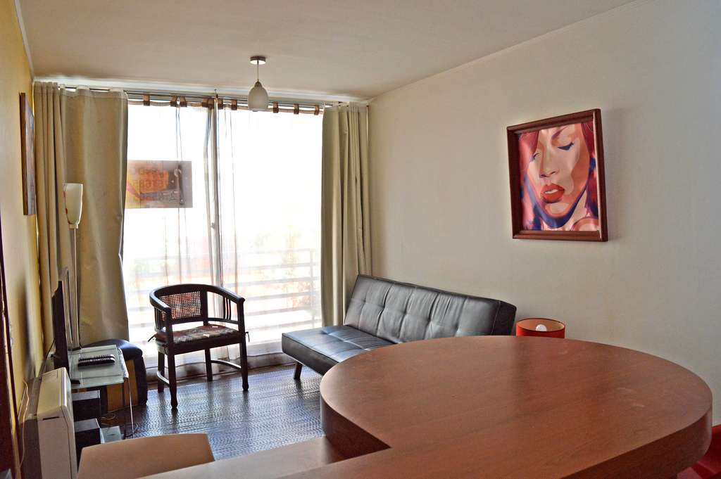 This 1 bedroom furnished Apartment is located a 2 minutes’ walk from the bus stop and a 7 minutes’ walk from the Metro Station Toesca.The apartment has a living room, kitchen (open) and 1 bathroom. The bedroom 1 has a double bed, closet, 2 nightstands and bathroom in suite. The place measures 32m² approximately. Should be considered, the payment of the expenses of services of common expenses, cold water and electricity that add $ 106USD approximately. The accommodation has in-house share laundry, price per load for both washers or dryers is $ 1USD approximately. You should pay a security deposit, which will be returned at the end of the lease term; The tenant(s) must also pay $ 34USD fee when the unit is returned for cleaning. The unit is located close to Palacio Cousiño, a national monument and one of the most important museums in Santiago. It is inside the Almagro Park, 29,000 acres of park, where you can also see varied sculptures; the church of the Sacramentinos, among other attractions.
