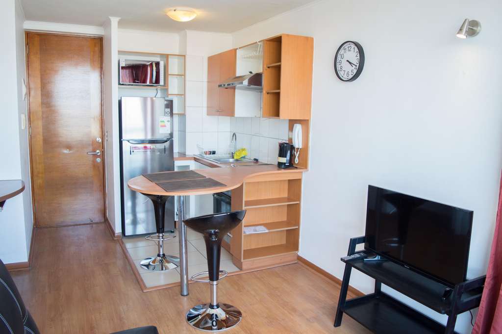 This 1 bedroom furnished Apartment is located a 1 minute’ walk from the bus stop and a 11 minutes’ walk from the Metro Station Santa Lucía.The apartment has a living room, dinning room, kitchen (open) and 1 bathroom. The bedroom 1 has a double bed, closet, 2 nightstands and bathroom in suite. The place measures 35m² approximately. Should be considered, the payment of the expenses of services of common expenses, hot water, cold water and electricity that add $ 81USD approximately. The accommodation has in-house share laundry, price per load for both washers or dryers is $ 1USD approximately. You should pay a security deposit, which will be returned at the end of the lease term; The tenant(s) must also pay $ 23USD fee when the unit is returned for cleaning. The unit is located close to the Biblioteca Nacional de Chile, the Municipal Theater of Santiago, Cine Arte, craft fairs, cultural centers and the Santa Lucia Hill (an important focus for tourism and Sunday walks due to the attractions it presents, such as water fountains, terraces and viewpoints where you can enjoy a privileged view of Santiago.)