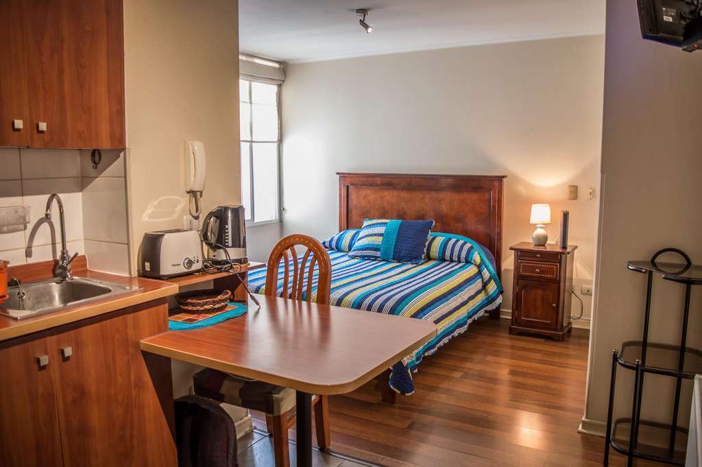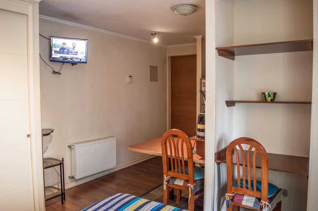 This 1 studio furnished Apartment is located a 2 minutes’ walk from the bus stop and a 5 minutes’ walk from the Metro Station Santa Ana.The apartment has a living room, dinning room, kitchen (open) and 1 bathroom. The bedroom 1 has a double bed, closet, 2 chairs and bathroom in suite. The place measures 22m² approximately. The cost of services like common expenses, hot water, cold water and electricity are paid in advance together with the monthly rent, with a consumption limit of $ 116USD. The accommodation has in-house share laundry, price per load for both washers or dryers is $ 2USD approximately. You should pay a security deposit, which will be returned at the end of the lease term; The tenant(s) must also pay $ 58USD fee when the unit is returned for cleaning. The unit is located close to the emblematic high schools 1 Javiera Carrera and Liceo de Aplicación, in addition to the national monument, the church Iglesia Parroquial de Santa Ana. A few steps away, you can find the square Plaza de Armas, an important part of the historic center of Santiago, renowned for its architecture and infrastructure; such as the Post Office of Santiago, the Cathedral of Santiago, the Municipality and the Casa Colorada.