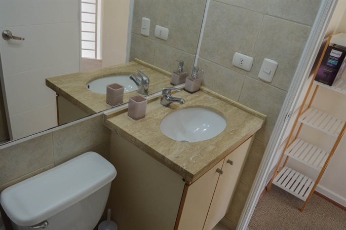 This 1 bedroom furnished Apartment is located a 1 minute’ walk from the bus stop and a 10 minutes’ walk from the Metro Station Santa Lucía.The apartment has a living room, dinning room, kitchen (open) and 1 bathroom. The bedroom 1 has a double bed, closet, chair and bathroom in suite. The place measures 54m² approximately. The cost of services like common expenses, hot water, cold water, electricity, gas and internet are paid in advance together with the monthly rent, with a consumption limit of $ 140USD. The accommodation has in-house share laundry, price per load for both washers or dryers is $ 1USD approximately. You should pay a security deposit, which will be returned at the end of the lease term; The tenant(s) must also pay $ 33USD fee when the unit is returned for cleaning. The unit is located close to the Biblioteca Nacional de Chile, the Municipal Theater of Santiago, Cine Arte, craft fairs, cultural centers and the Santa Lucia Hill (an important focus for tourism and Sunday walks due to the attractions it presents, such as water fountains, terraces and viewpoints where you can enjoy a privileged view of Santiago.)