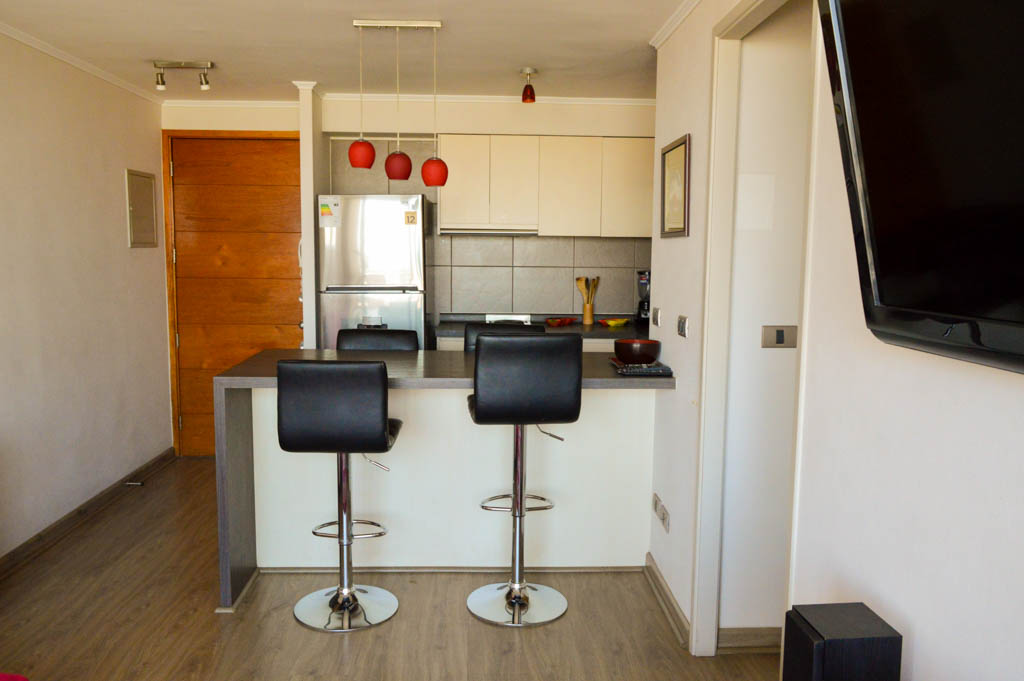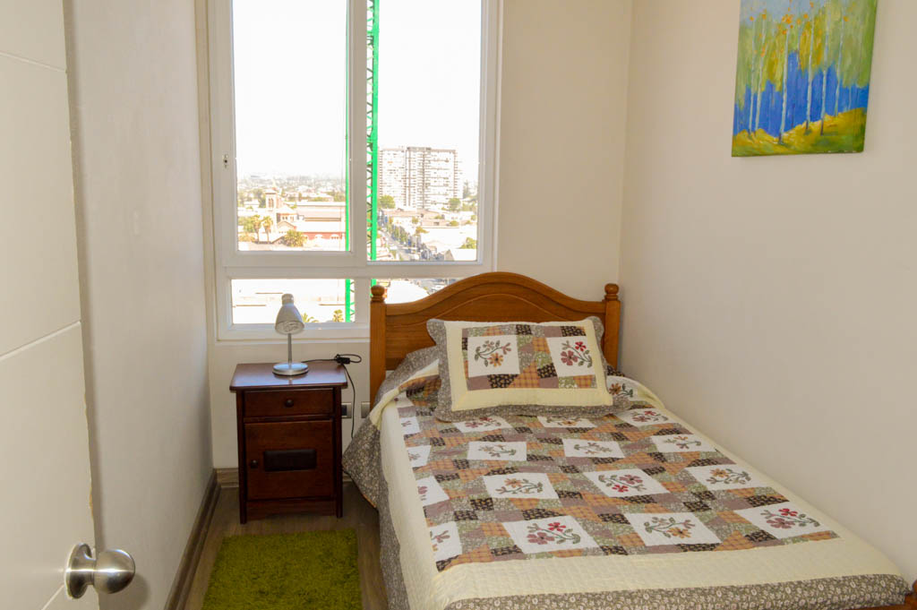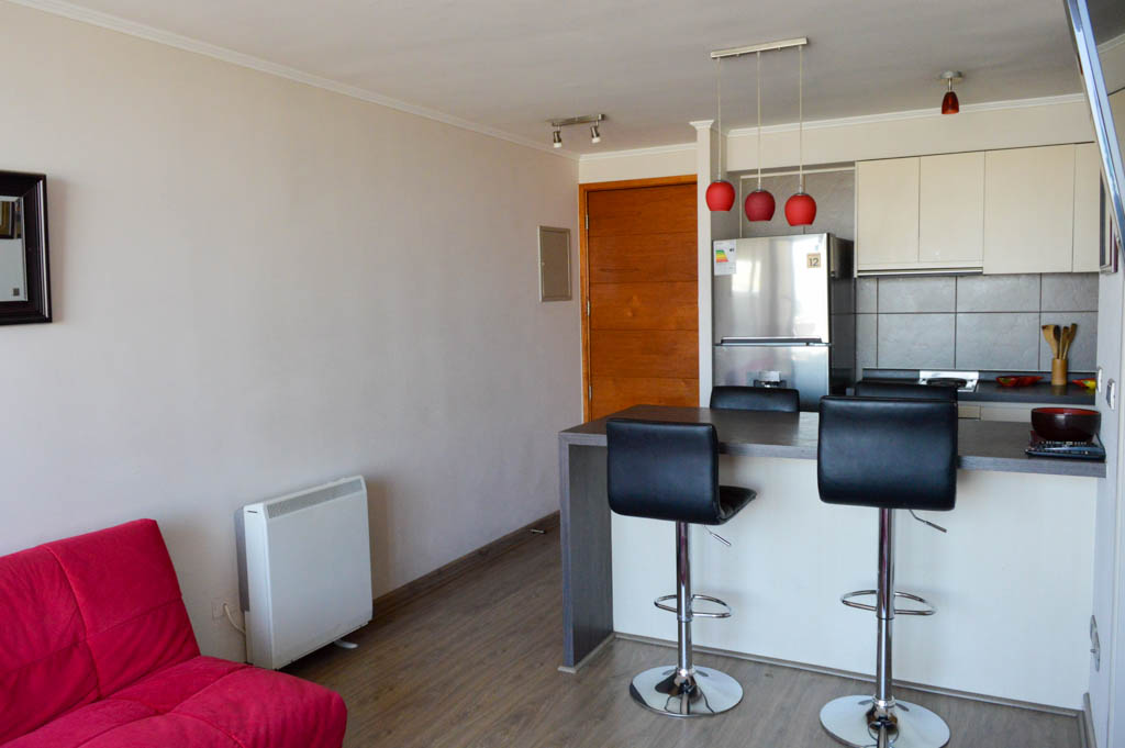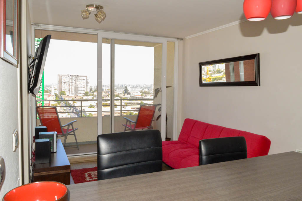 This 2 bedrooms furnished Apartment is located a 1 minute’ walk from the bus stop and a 12 minutes’ walk from the Metro Station Matta.The apartment has a living room, dinning room, kitchen (open), 1 bathroom and balcony. The bedroom 1 has a double bed, 2 closets and 2 nightstands. The bedroom 2 has a single bed, closet and nightstand. The place measures 55m² + 4m² of balcony approximately The cost of services like common expenses and hot water are paid in advance together with the monthly rent, with a consumption limit of $ 87USD. In addition, should be considered, the payment of the expenses of services of cold water and electricity that add $ 32USD approximately. The accommodation has in-house share laundry, price per load for both washers or dryers is $ 1USD approximately. You should pay a security deposit, which will be returned at the end of the lease term; The tenant(s) must also pay $ 29USD fee when the unit is returned for cleaning. The unit is located close to Irarrázaval Avenue, one of the main thoroughfares of Santiago, characterized by its different shops, supermarkets, restaurants, pubs and nightclubs. It also has various means of public transport to different parts of the city.
