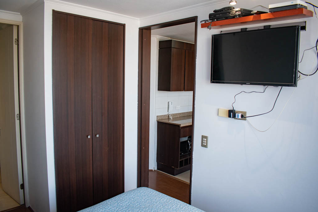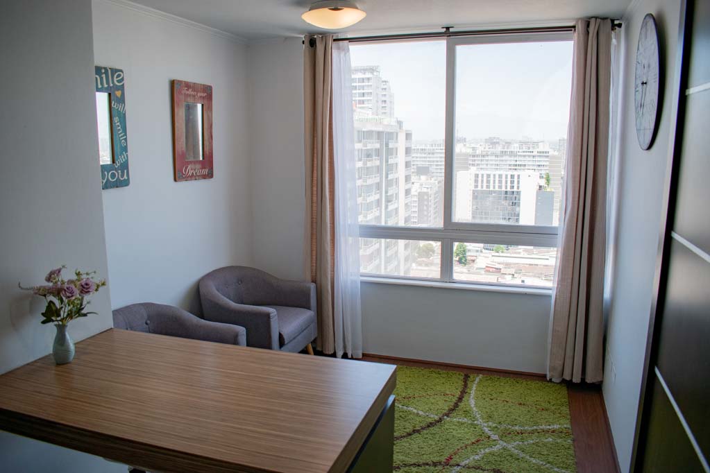 This 1 bedroom furnished Apartment is located a 2 minutes’ walk from the bus stop and a 5 minutes’ walk from the Metro Station Irarrázaval.The apartment has a living room, dinning room, kitchen (open), 1 bathroom and balcony. The bedroom 1 has a double bed, 2 closets, 2 nightstands, TV and bathroom in suite. The place measures 40m² + 2m² of balcony approximately The cost of services like internet are paid in advance together with the monthly rent, with a consumption limit of $ 28USD. In addition, should be considered, the payment of the expenses of services of common expenses, hot water, cold water and electricity that add $ 99USD approximately. The accommodation has in-house share laundry, price per load for both washers or dryers is $ 1USD approximately. You should pay a security deposit, which will be returned at the end of the lease term; The tenant(s) must also pay $ 44USD fee when the unit is returned for cleaning. The unit is located close to Irarrázaval Avenue, one of the main thoroughfares of Santiago, characterized by its different shops, supermarkets, restaurants, pubs and nightclubs. It also has various means of public transport to different parts of the city.