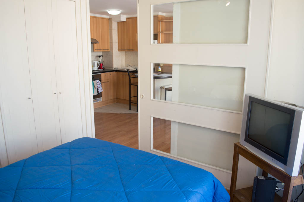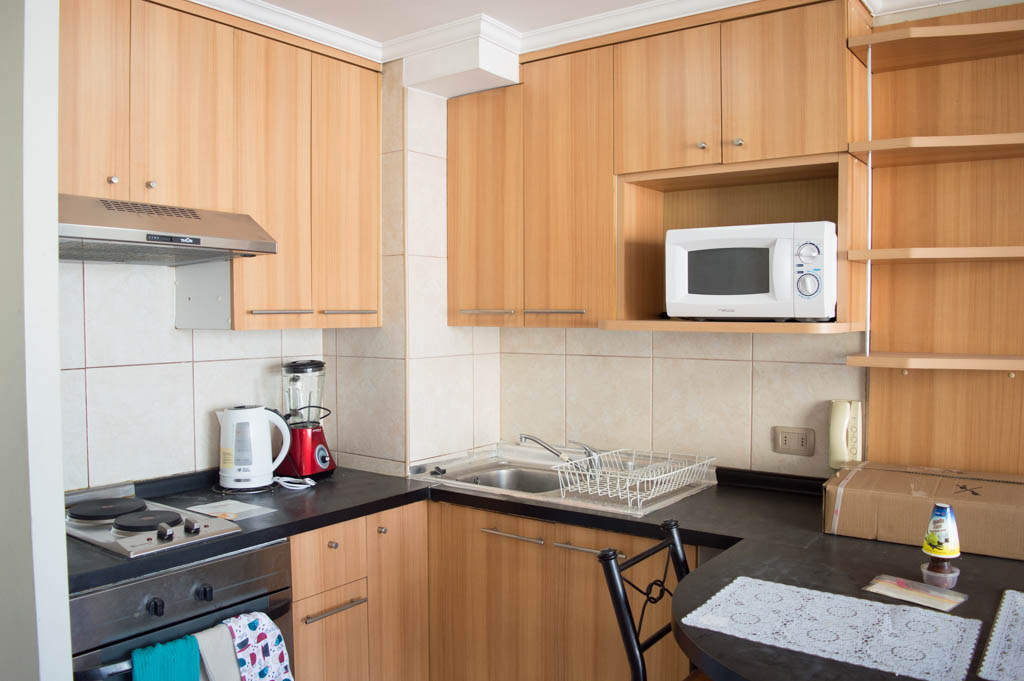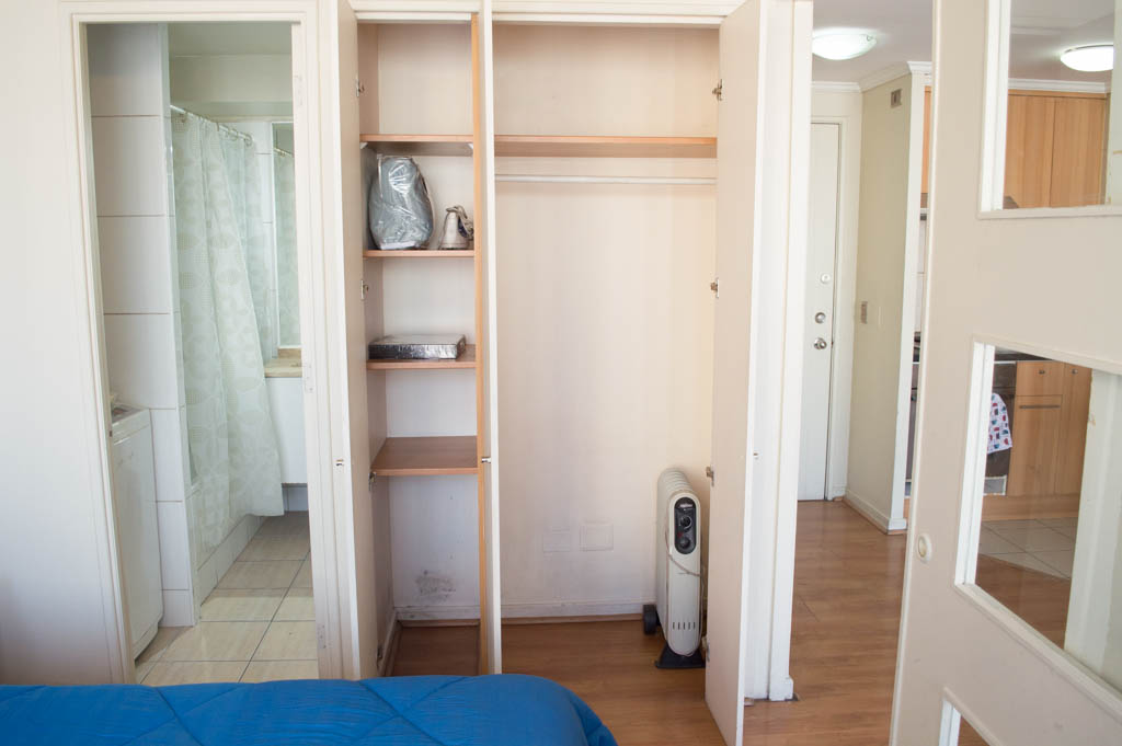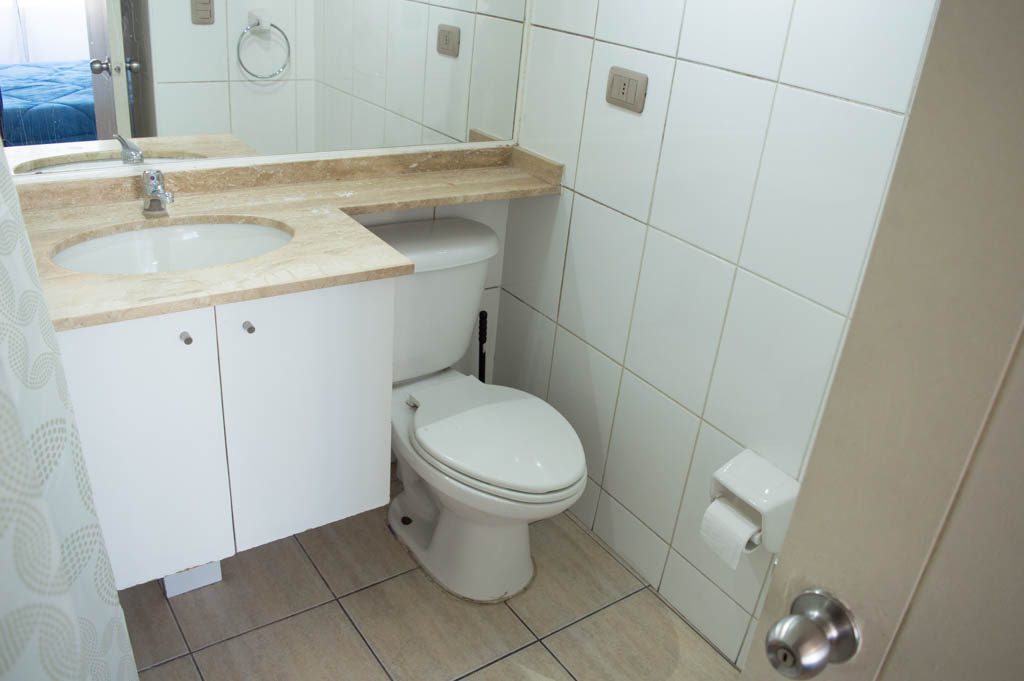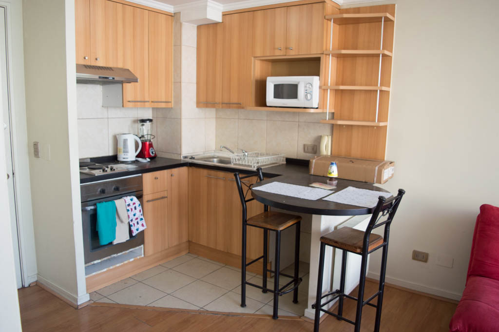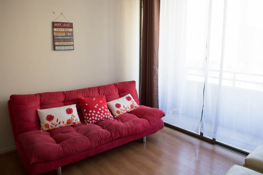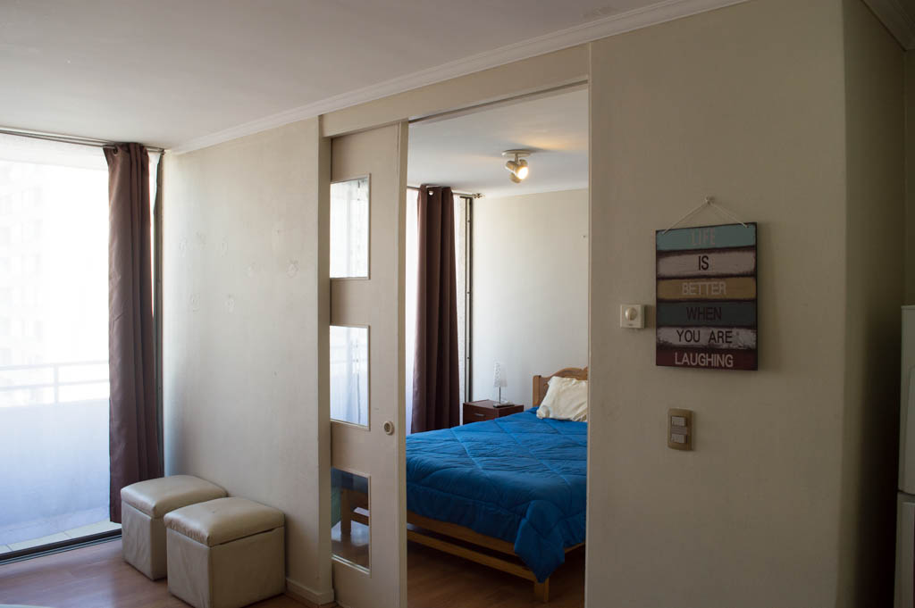 This 1 bedroom furnished Apartment is located a 1 minute’ walk from the bus stop and a 6 minutes’ walk from the Metro Station Santa Lucía.The apartment has a living room, dinning room, kitchen (open), 1 bathroom and balcony. The bedroom 1 has a double bed, closet, 2 nightstands, TV and bathroom in suite. The place measures 33m² + 3m² of balcony approximately Should be considered, the payment of the expenses of services of common expenses, hot water, cold water, electricity and gas that add $ 111USD approximately. The accommodation has in-house share laundry, price per load for both washers or dryers is $ 2USD approximately. You should pay a security deposit, which will be returned at the end of the lease term; The tenant(s) must also pay $ 59USD fee when the unit is returned for cleaning. The unit is located close to the Biblioteca Nacional de Chile, the Municipal Theater of Santiago, Cine Arte, craft fairs, cultural centers and the Santa Lucia Hill (an important focus for tourism and Sunday walks due to the attractions it presents, such as water fountains, terraces and viewpoints where you can enjoy a privileged view of Santiago.)
