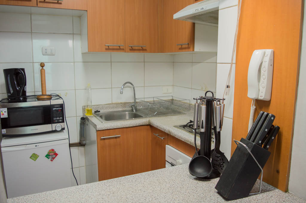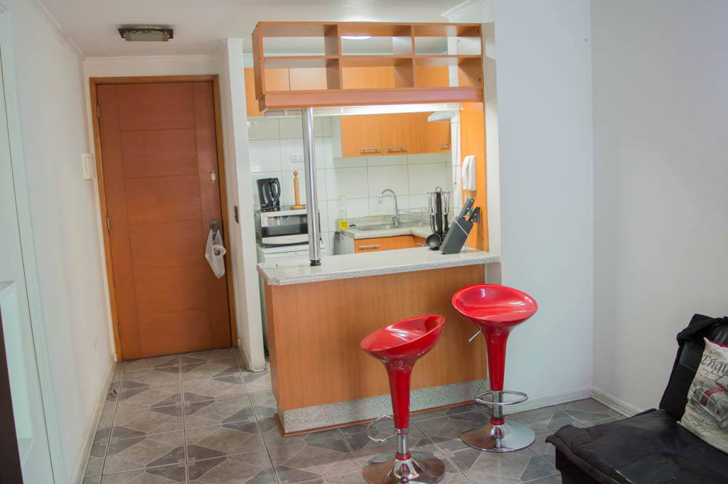 This 1 bedroom furnished Apartment is located a 1 minute’ walk from the bus stop and a 5 minutes’ walk from the Metro Station Santa Ana.The apartment has a living room, dinning room, kitchen (open), 1 bathroom and terrace. The bedroom 1 has a double bed, walk-in closet, 2 nightstands, TV and bathroom in suite. The place measures 35m² + 5m² of balcony approximately. Should be considered, the payment of the expenses of services of common expenses, hot water, cold water, electricity, gas, internet and TV cable that add $ 127USD approximately. The accommodation has in-house share laundry, price per load for both washers or dryers is $ 1USD approximately. You should pay a security deposit, which will be returned at the end of the lease term; The tenant(s) must also pay $ 38USD fee when the unit is returned for cleaning. The unit is located close to the emblematic high schools 1 Javiera Carrera and Liceo de Aplicación, in addition to the national monument, the church Iglesia Parroquial de Santa Ana. A few steps away, you can find the square Plaza de Armas, an important part of the historic center of Santiago, renowned for its architecture and infrastructure; such as the Post Office of Santiago, the Cathedral of Santiago, the Municipality and the Casa Colorada.