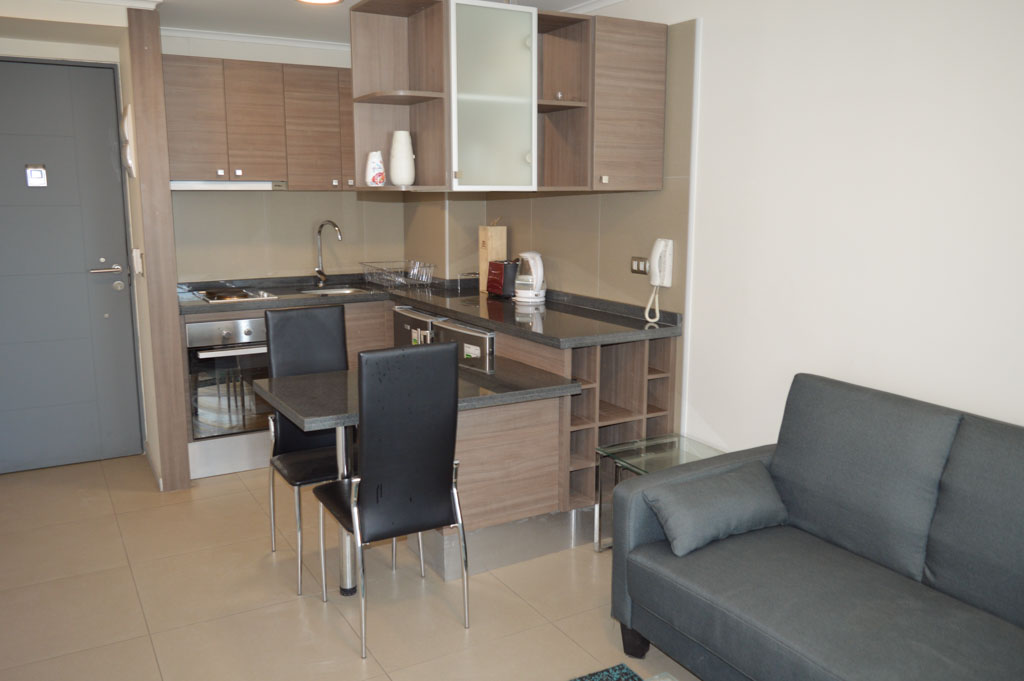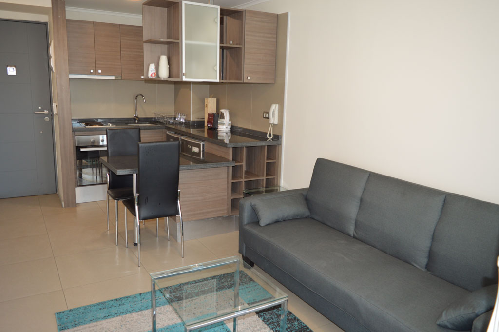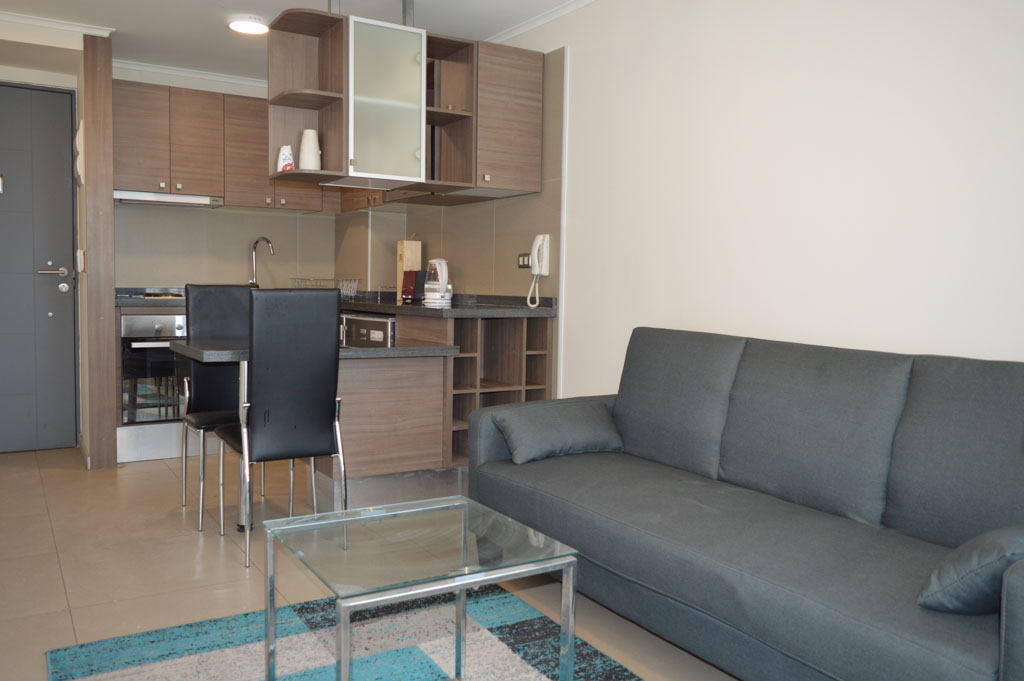 This 1 bedroom furnished Apartment is located a 7 minutes’ walk from the bus stop and a 7 minutes’ walk from the Metro Station La Moneda.The apartment has a living room, dinning room, kitchen (open), 1 bathroom and balcony. The bedroom 1 has a double bed, closet, 2 nightstands, TV and bathroom in suite. The place measures 33m² + 2m² of balcony approximately. Should be considered, the payment of the expenses of services of common expenses, hot water, cold water and electricity that add $ 88USD approximately. The accommodation has in-house share laundry, price per load for both washers or dryers is $ 1USD approximately. You should pay a security deposit, which will be returned at the end of the lease term; The tenant(s) must also pay $ 22USD fee when the unit is returned for cleaning. The unit is located close to Bernardo O'Higgins Avenue (better known as Alameda,) the Moneda Palace and the square Plaza de la Constitución, among other buildings of historical and architectural value. You can also find multiple restaurants, bars, banks and government entities.