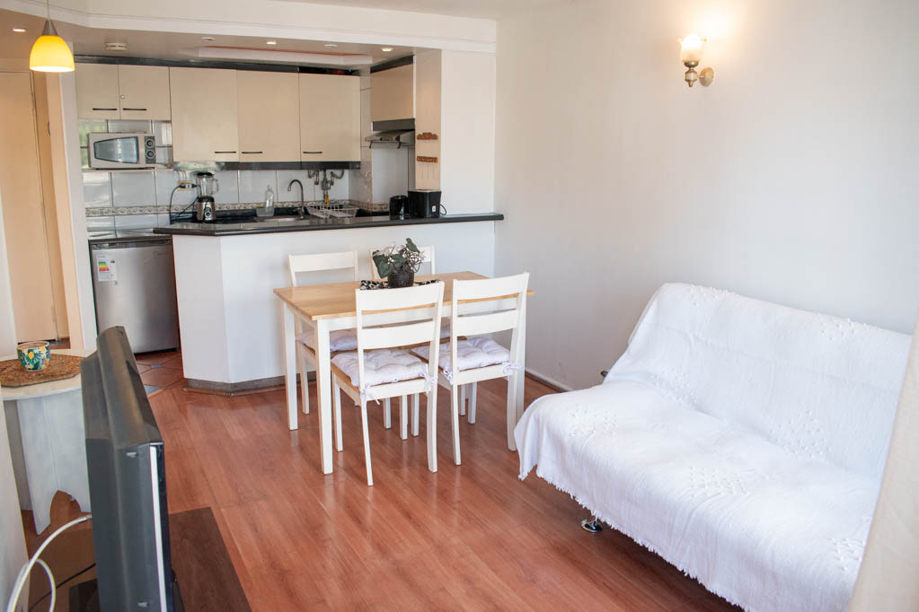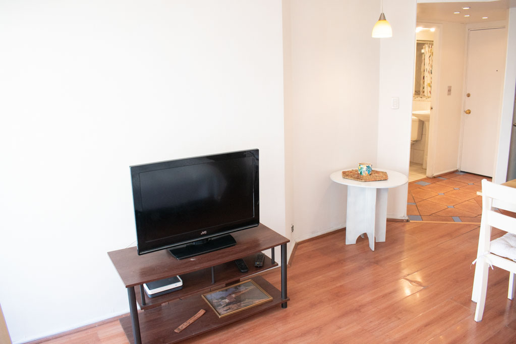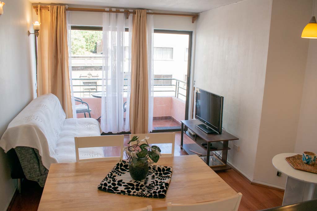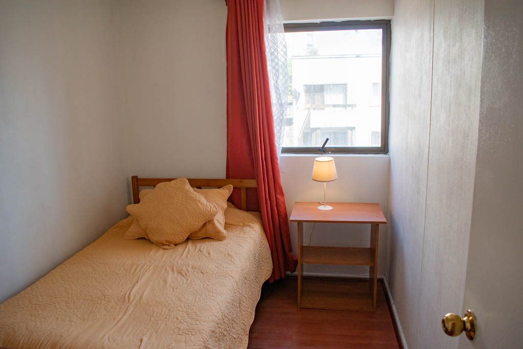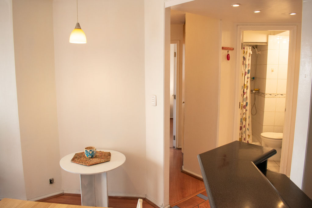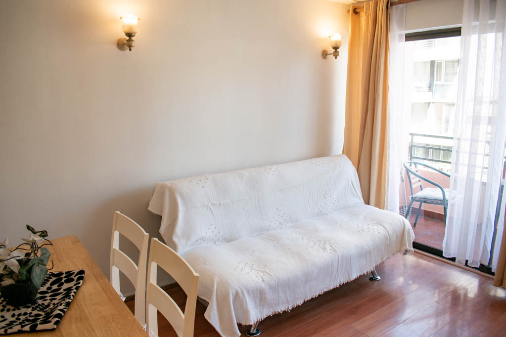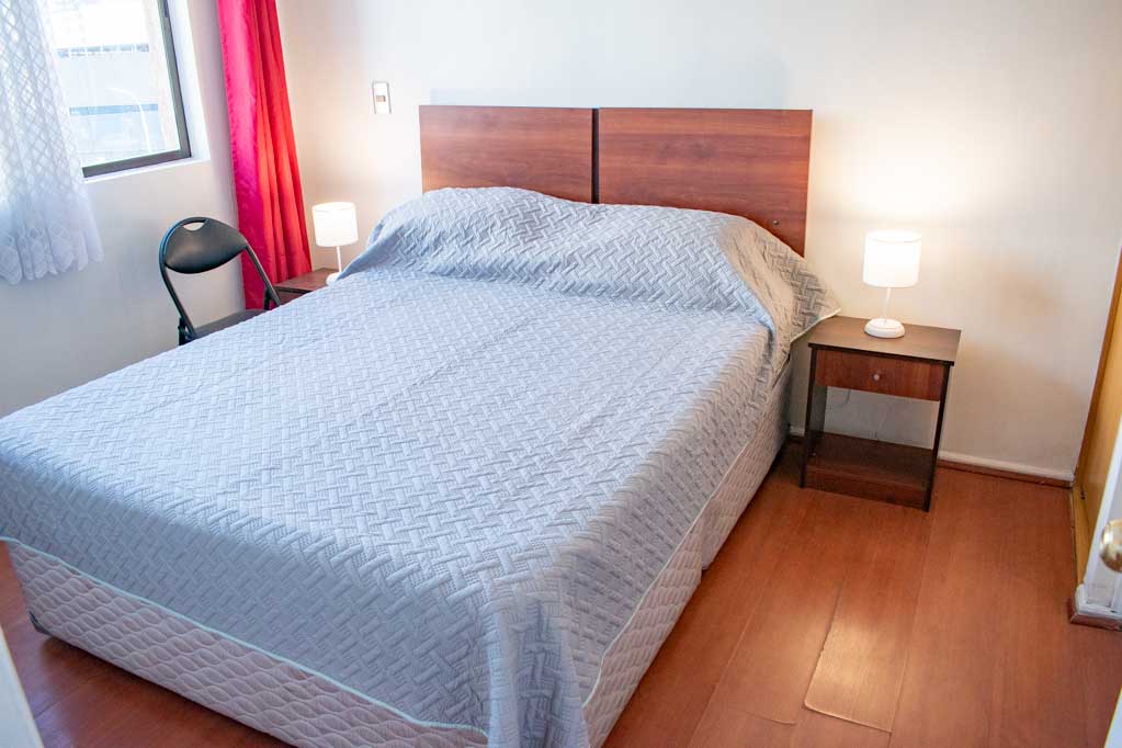 This 2 bedrooms furnished Apartment is located a 5 minutes’ walk from the bus stop and a 10 minutes’ walk from the Metro Station Universidad Católica.The apartment has a living room, dinning room, kitchen (open), 2 bathrooms and balcony. The bedroom 1 has a double bed, closet, 2 nightstands, chair and bathroom in suite. The bedroom 2 has a single bed and nightstand. The place measures 45m² + 2m² of balcony approximately Should be considered, the payment of the expenses of services of common expenses, hot water, cold water, electricity and gas that add $ 123USD approximately. The accommodation has in-house share laundry, price per load for both washers or dryers is $ 2USD approximately. You should pay a security deposit, which will be returned at the end of the lease term; The tenant(s) must also pay $ 35USD fee when the unit is returned for cleaning. The unit is located close to Bustamante Park, one of the most important green areas of the city of Santiago, is ideal for walking, biking and sharing with friends or family. Nearby, there are the Catholic University, the University of Chile and a literary coffee shop, where you will find a wide variety of books to order and read in the same place, accompanied by a coffee. Only 10 minutes from the Park, there is the well-known Bellavista neighborhood.