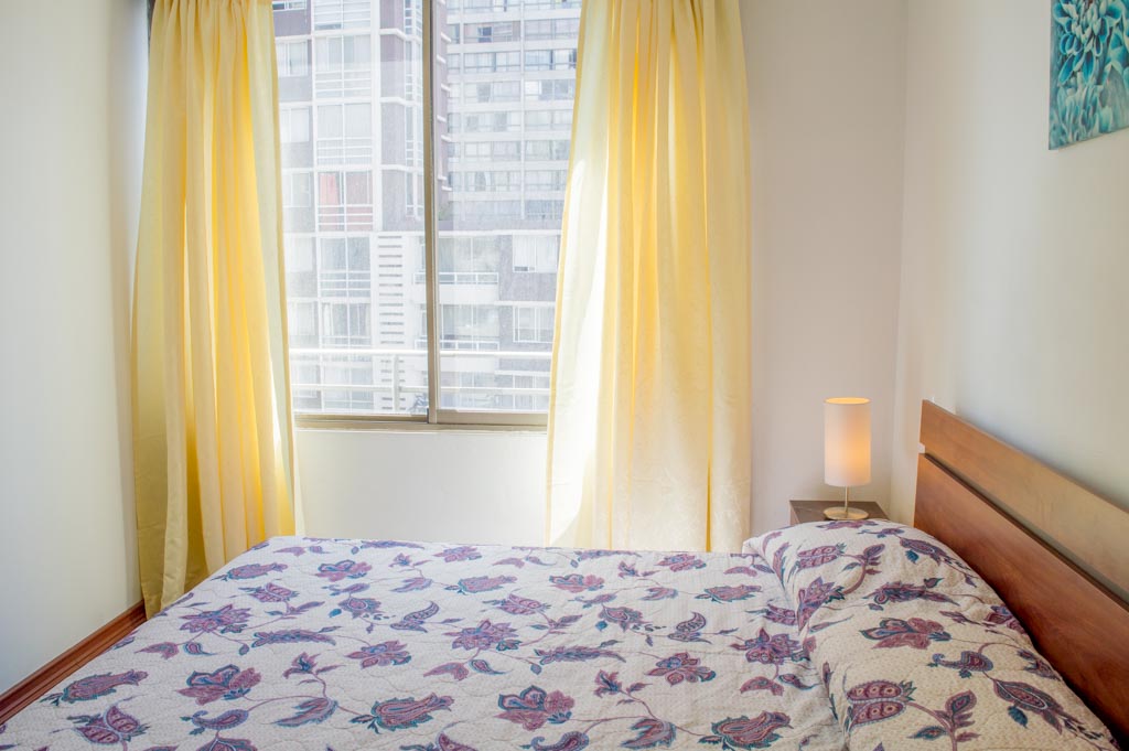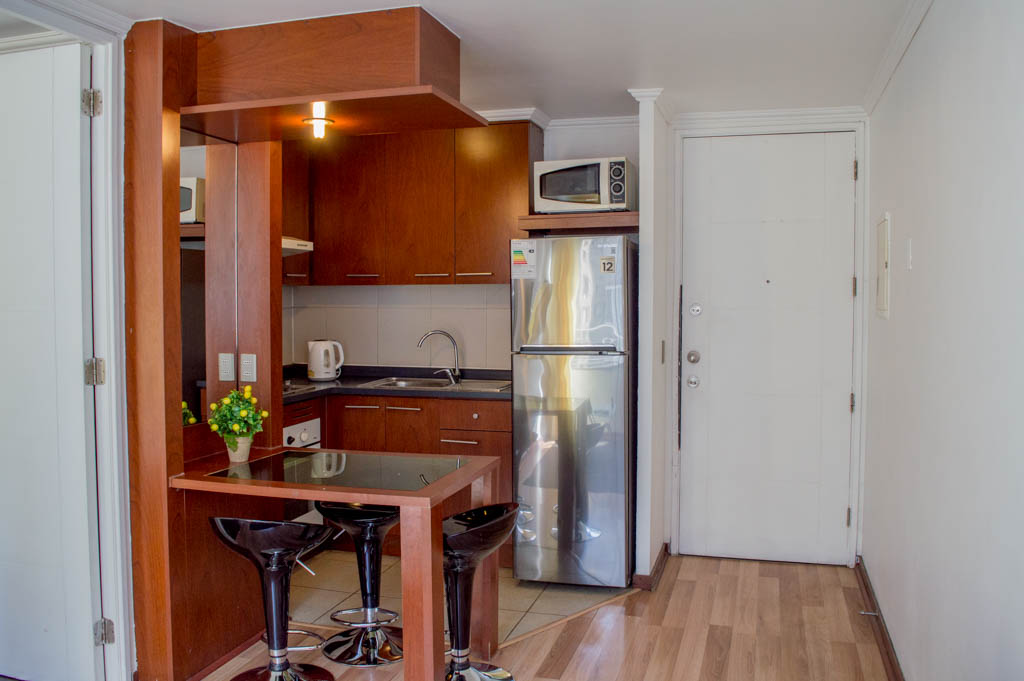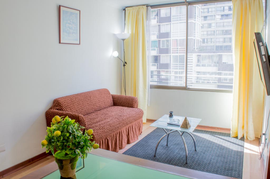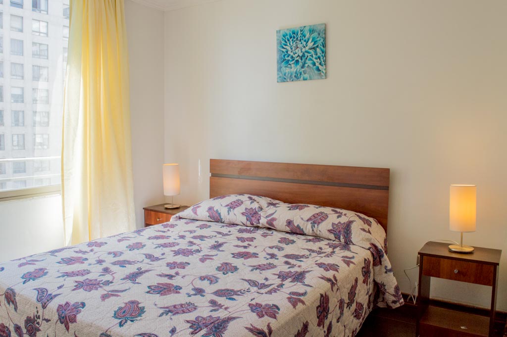 This 1 bedroom furnished Apartment is located a 1 minute’ walk from the bus stop and a 13 minutes’ walk from the Metro Station Santa Lucía.The apartment has a living room, dinning room, kitchen (open) and 1 bathroom. The bedroom 1 has a double bed, closet, 2 nightstands and bathroom in suite. The place measures 35m² approximately. The cost of services like common expenses and hot water are paid in advance together with the monthly rent, with a consumption limit of $ 62USD. In addition, should be considered, the payment of the expenses of services of cold water and electricity that add $ 28USD approximately. The accommodation has in-house share laundry, price per load for both washers or dryers is $ 1USD approximately. You should pay a security deposit, which will be returned at the end of the lease term; The tenant(s) must also pay $ 40USD fee when the unit is returned for cleaning. The unit is located close to the emblematic high schools Liceo Arturo Alessandri Palma and the Liceo Carmela Carvajal de Prat. They are located in the Santa Isabel neighborhood, which has grown exponentially over the years due to the great estate development, which has allowed a generation of green areas and sport spaces. In the same sector is the neighborhood Italia where various artists, designers, masters of gastronomy, small shops, and even mechanical workshops have been installed.