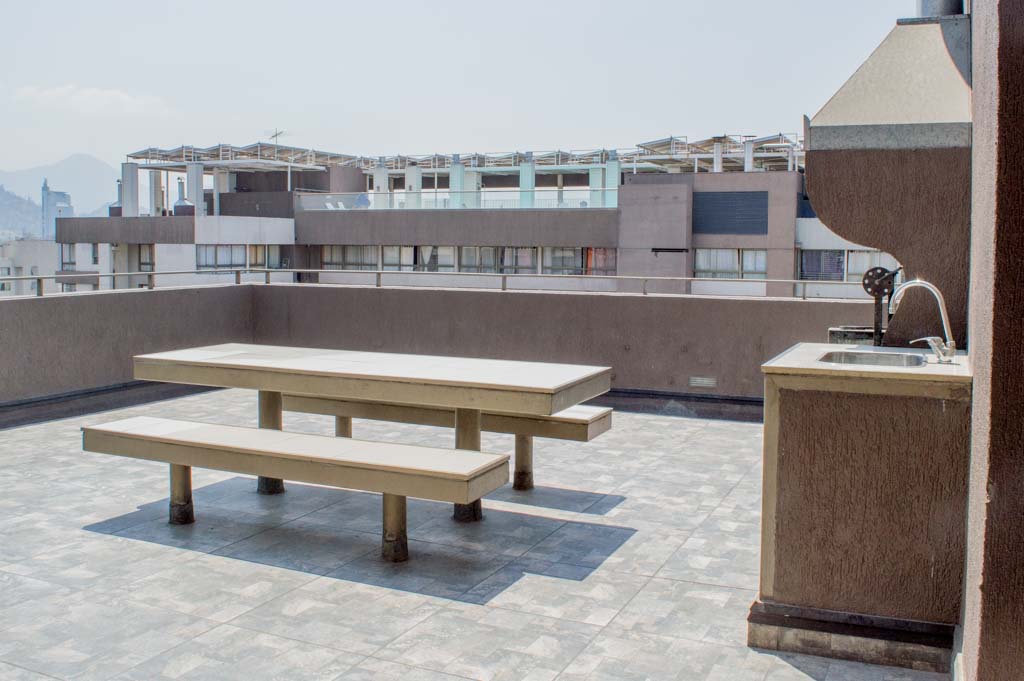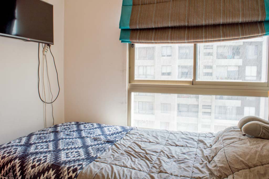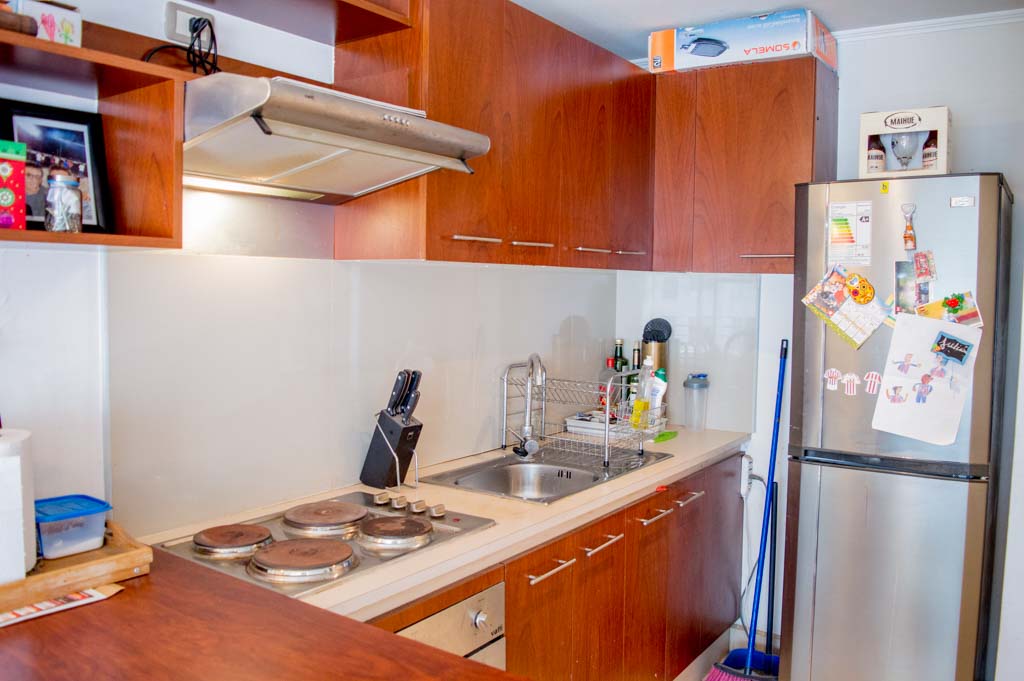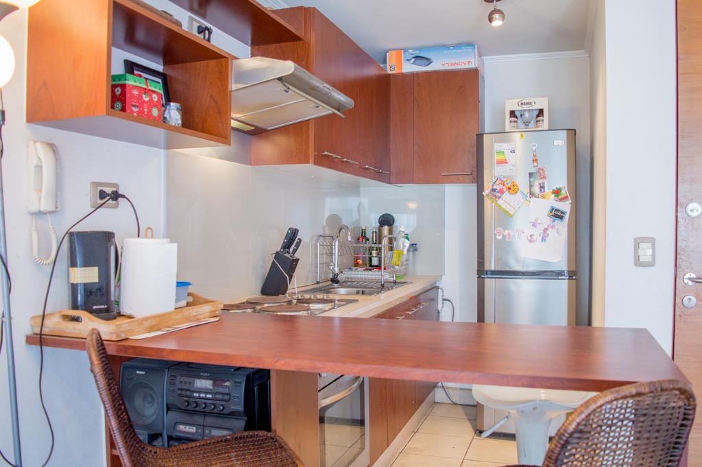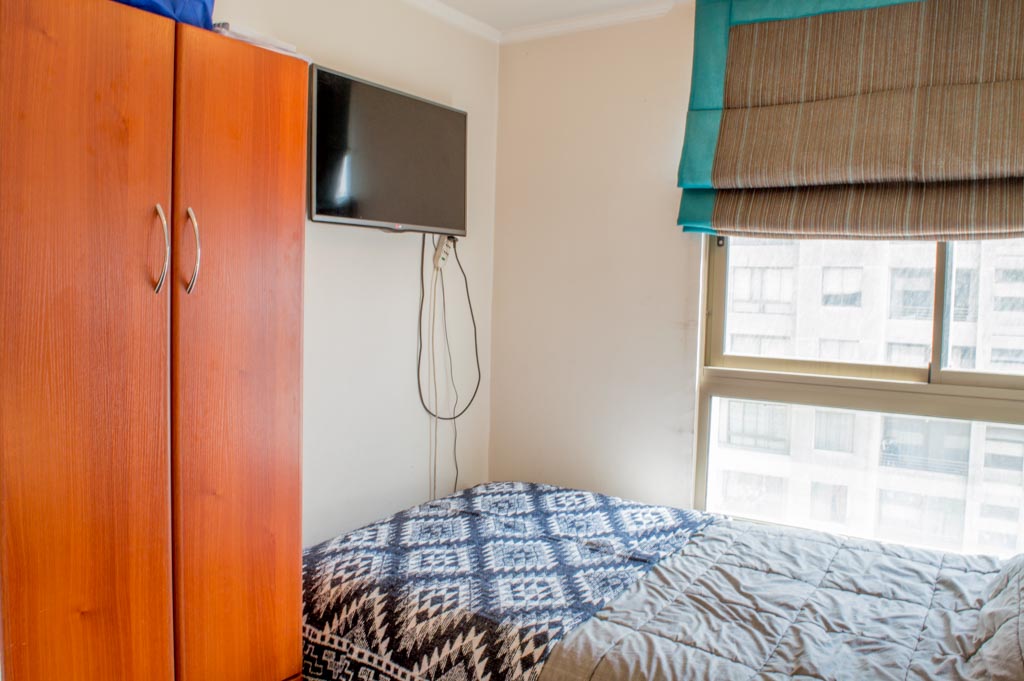 This 2 bedrooms furnished Apartment is located a 1 minute’ walk from the bus stop and a 13 minutes’ walk from the Metro Station Parque Almagro.The apartment has a living room, dinning room, kitchen (open), 1 bathroom, balcony and 1 estacionamiento (optional for additional value of $ 58USD). The bedroom 1 has a double bed, closet and 2 nightstands. The bedroom 2 has a single bed, wardrobe, closet, nightstand and TV. The place measures 44m² + 2m² of balcony approximately Should be considered, the payment of the expenses of services of common expenses, hot water, cold water, electricity and gas that add $ 131USD approximately. The accommodation has in-house share laundry, price per load for both washers or dryers is $ 1USD approximately. You should pay a security deposit, which will be returned at the end of the lease term; The tenant(s) must also pay $ 29USD fee when the unit is returned for cleaning. The unit is located close to the Biblioteca Nacional de Chile, the Municipal Theater of Santiago, Cine Arte, craft fairs, cultural centers and the Santa Lucia Hill (an important focus for tourism and Sunday walks due to the attractions it presents, such as water fountains, terraces and viewpoints where you can enjoy a privileged view of Santiago.)