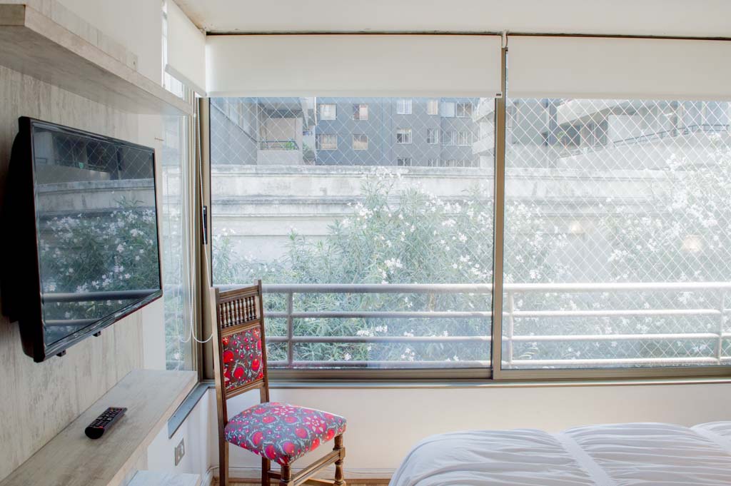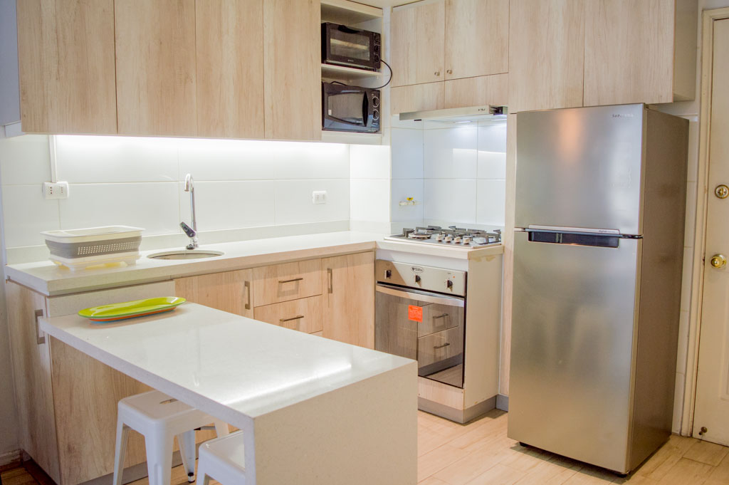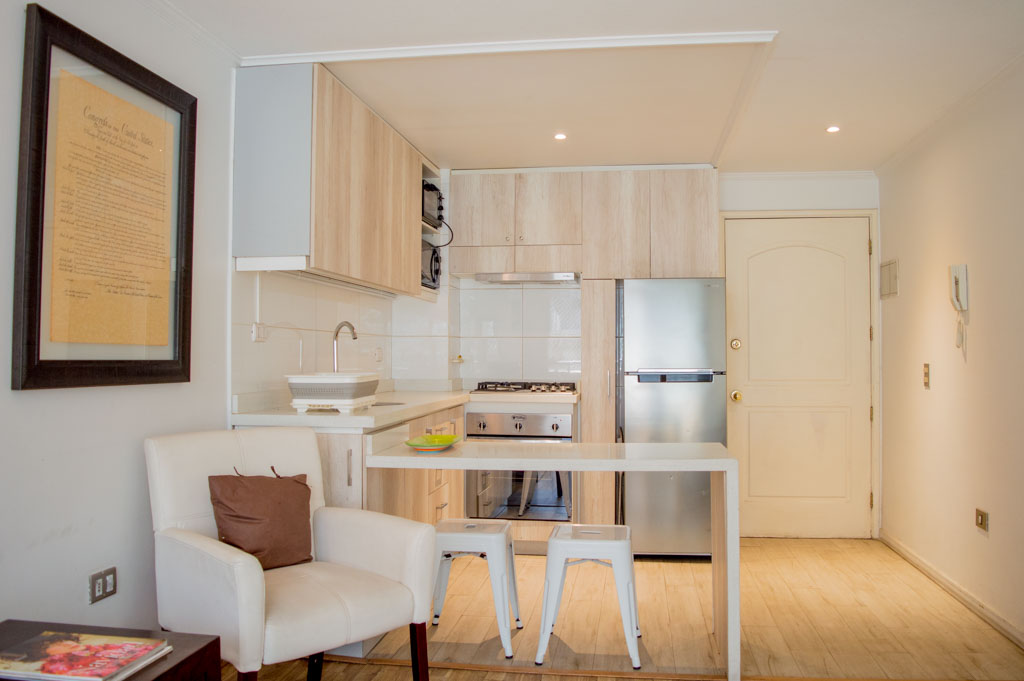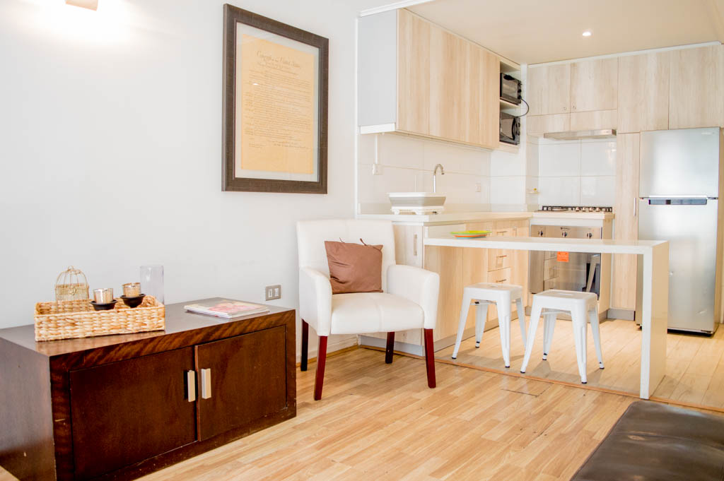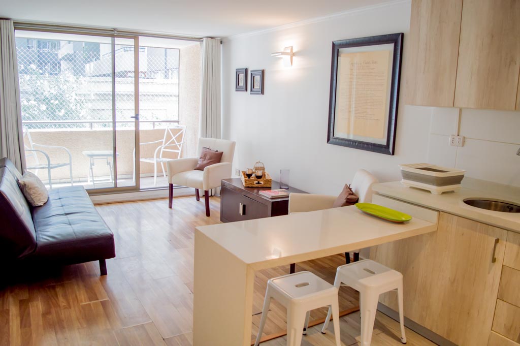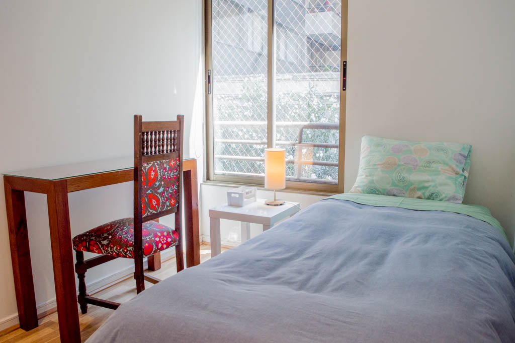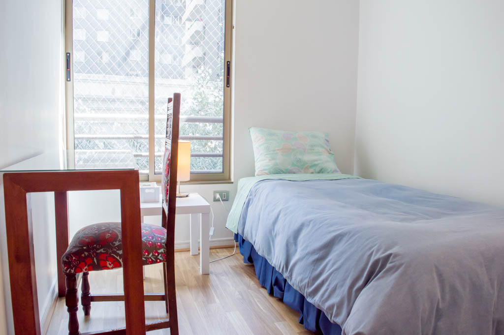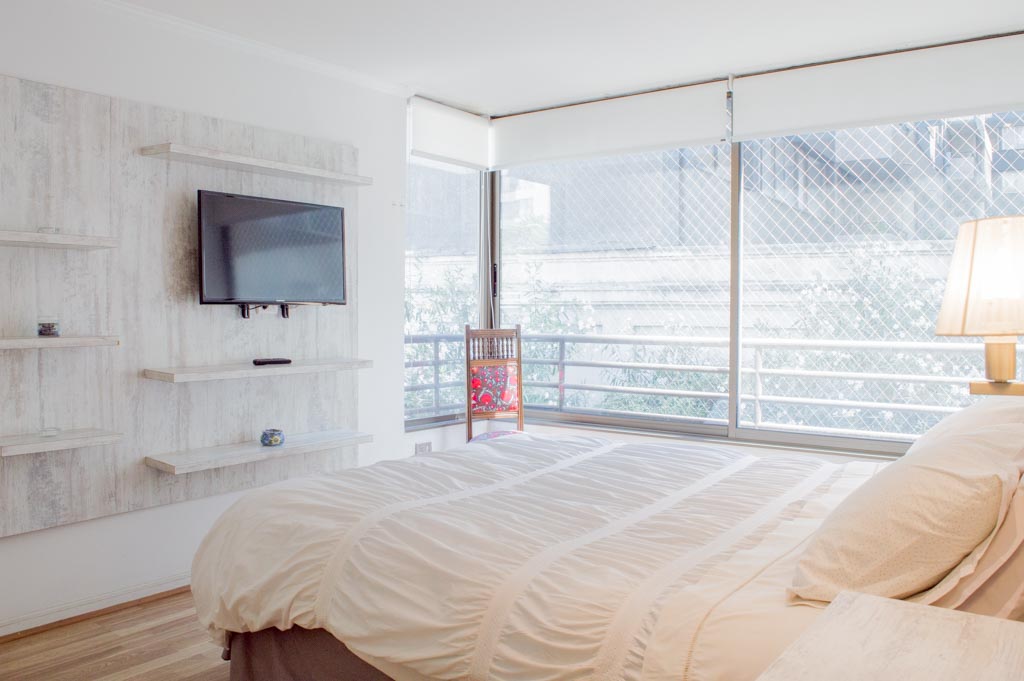This 2 bedrooms furnished Apartment is located a 1 minute’ walk from the bus stop and a 5 minutes’ walk from the Metro Station Parque Bustamente.The apartment has a living room, dinning room, kitchen (open), 1 bathroom, balcony and 1 parking (optional for additional value of $ 66USD). The bedroom 1 has a double bed, closet, 2 nightstands, TV and chair. The bedroom 2 has a single bed, closet, nightstand, desk and chair. The place measures 45m² + 5m² of balcony approximately. The cost of services like common expenses, hot water, cold water, electricity, gas and internet are paid in advance together with the monthly rent, with a consumption limit of $ 163USD. The accommodation has in-house share laundry, price per load for both washers or dryers is $ 1USD approximately. You should pay a security deposit, which will be returned at the end of the lease term; The tenant(s) must also pay $ 33USD fee when the unit is returned for cleaning. The unit is located close to Bustamante Park, one of the most important green areas of the city of Santiago, is ideal for walking, biking and sharing with friends or family. Nearby, there are the Catholic University, the University of Chile and a literary coffee shop, where you will find a wide variety of books to order and read in the same place, accompanied by a coffee. Only 10 minutes from the Park, there is the well-known Bellavista neighborhood.