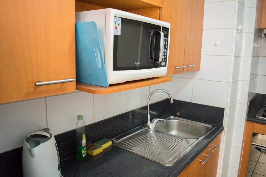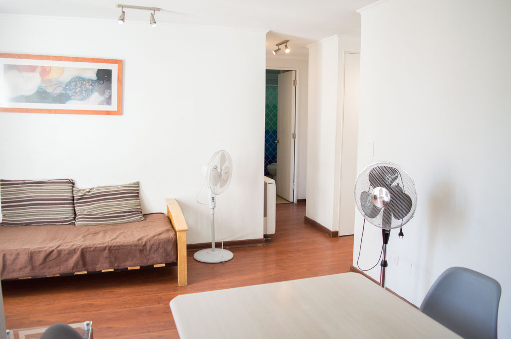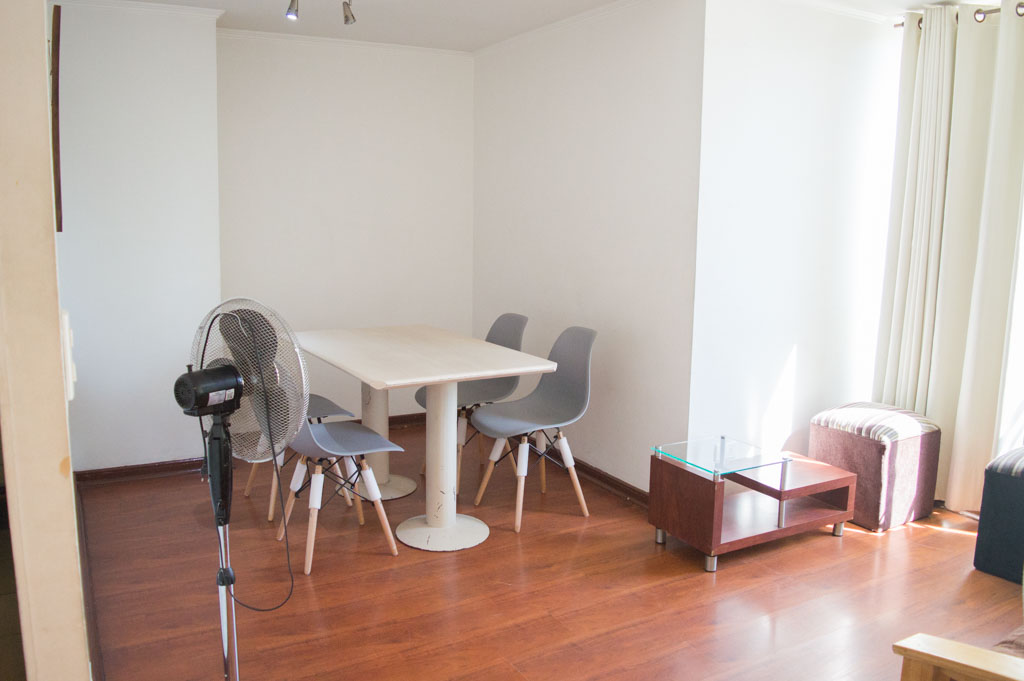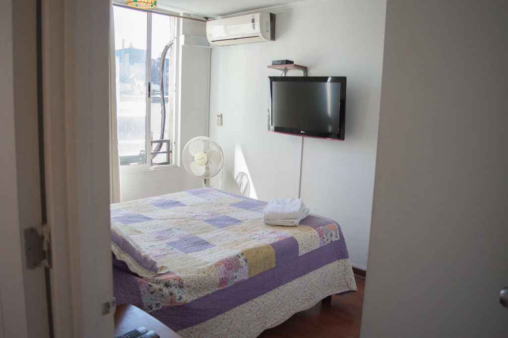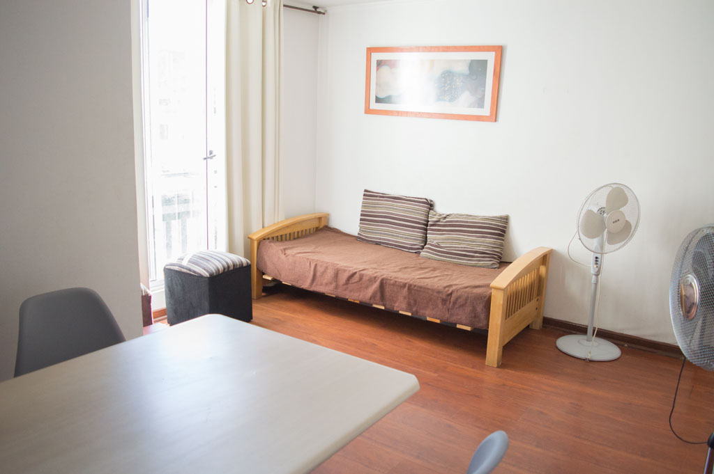 This 2 bedrooms furnished Apartment is located a 2 minutes’ walk from the bus stop and a 2 minutes’ walk from the Metro Station Universidad de Chile.The apartment has a living room, dinning room, kitchen (closed) and 1 bathroom. The bedroom 1 has a double bed, closet, 2 nightstands and TV. The bedroom 2 has a bunk bed, closet and nightstand. The place measures 40m² approximately. The cost of services like common expenses, hot water, cold water, electricity, internet and TV cable are paid in advance together with the monthly rent, with a consumption limit of $ 220USD. The accommodation has in-house share laundry, price per load for both washers or dryers is $ 1USD approximately. You should pay a security deposit, which will be returned at the end of the lease term; The tenant(s) must also pay $ 46USD fee when the unit is returned for cleaning. The unit is located close to Bernardo O'Higgins Avenue (better known as Alameda,) where you can find different shops, a variety of public transport and the civic center of Santiago; also, a few steps away from the subway, you can find the emblematic José Miguel Carrera National Institute, the University of Chile and the Municipal Theater of Santiago.
