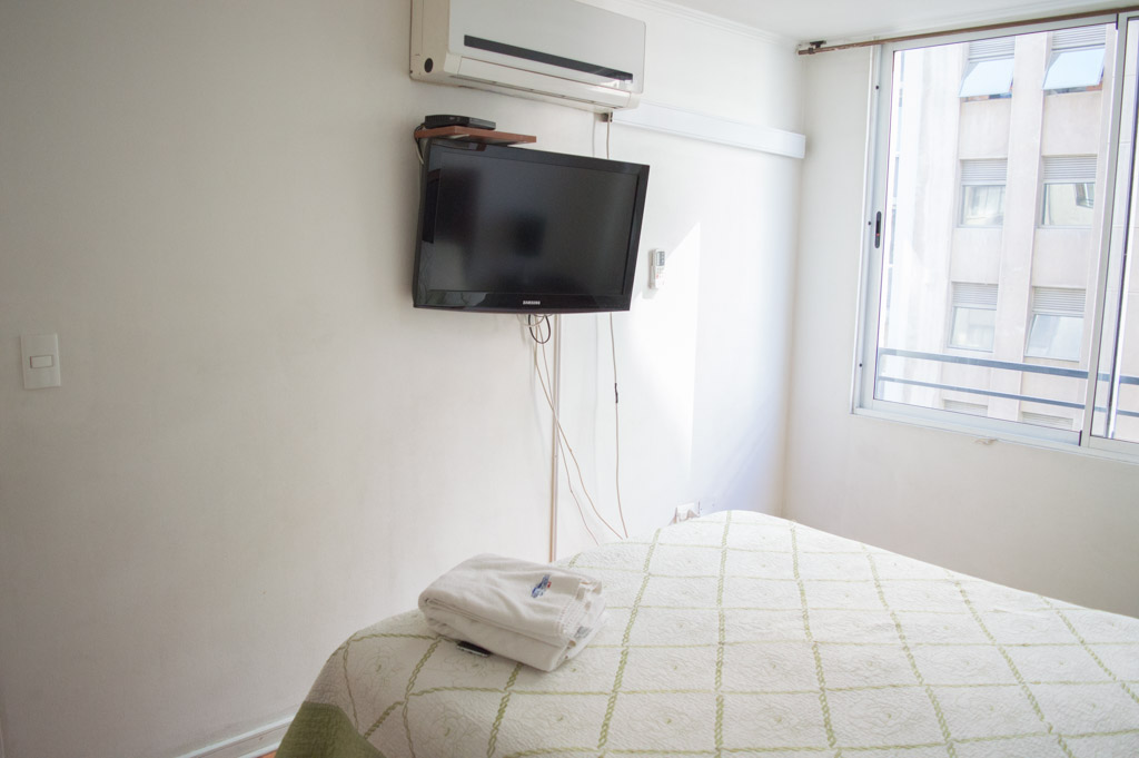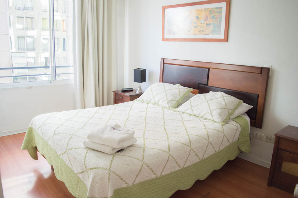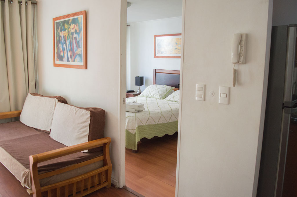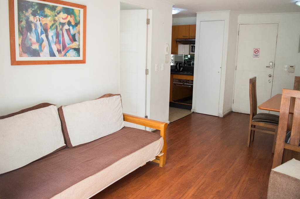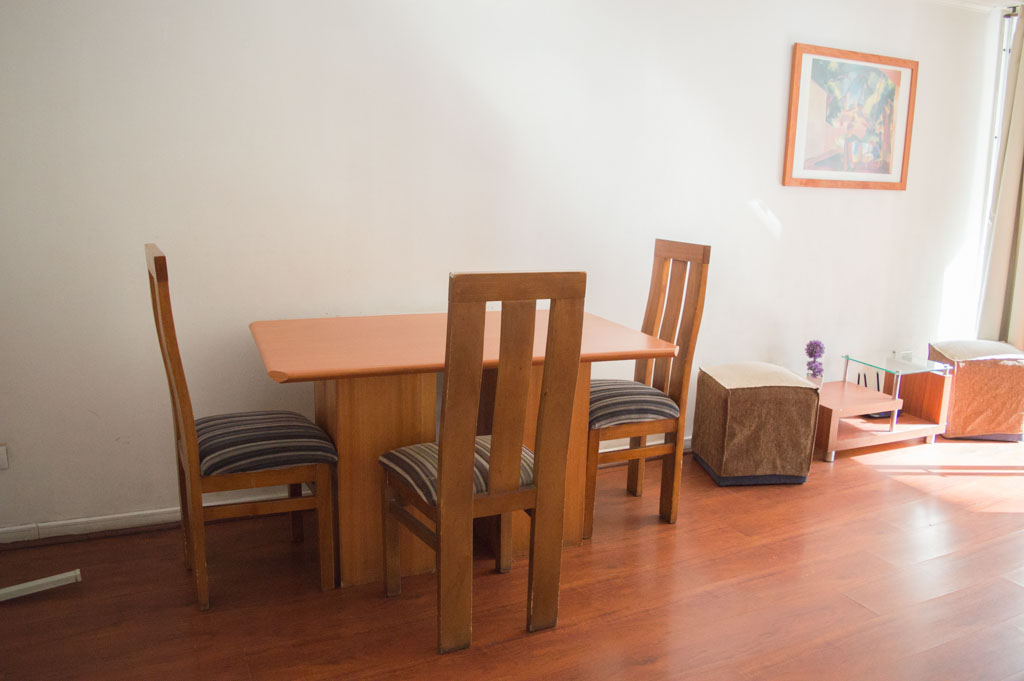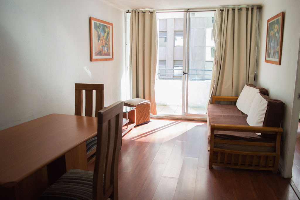 This 1 bedroom furnished Apartment is located a 2 minutes’ walk from the bus stop and a 2 minutes’ walk from the Metro Station Universidad de Chile.The apartment has a living room, dinning room, kitchen (open), 1 bathroom and terrace. The bedroom 1 has a double bed, closet, 2 nightstands, TV and bathroom in suite. The place measures 35m² + 2m² of balcony approximately The cost of services like common expenses, hot water, cold water, electricity, internet and TV cable are paid in advance together with the monthly rent, with a consumption limit of $ 183USD. The accommodation has in-house share laundry, price per load for both washers or dryers is $ 2USD approximately. You should pay a security deposit, which will be returned at the end of the lease term; The tenant(s) must also pay $ 34USD fee when the unit is returned for cleaning. The unit is located close to Bernardo O'Higgins Avenue (better known as Alameda,) where you can find different shops, a variety of public transport and the civic center of Santiago; also, a few steps away from the subway, you can find the emblematic José Miguel Carrera National Institute, the University of Chile and the Municipal Theater of Santiago.