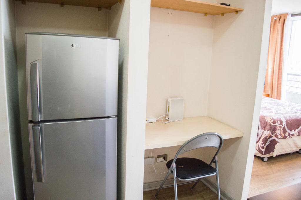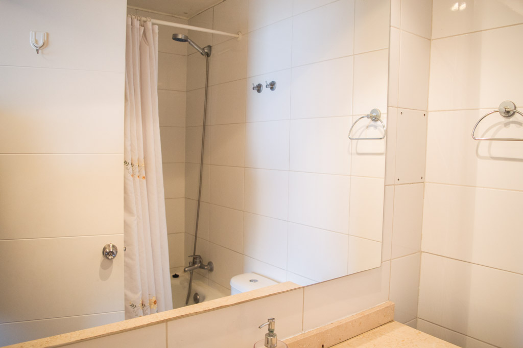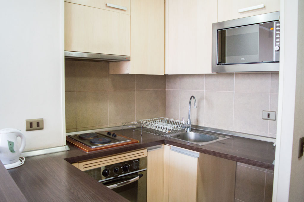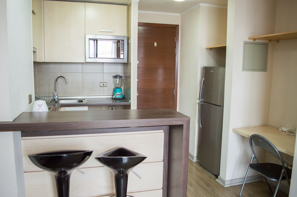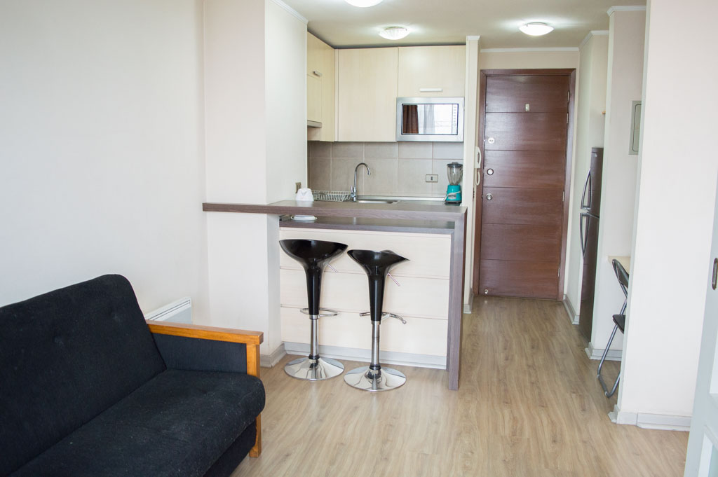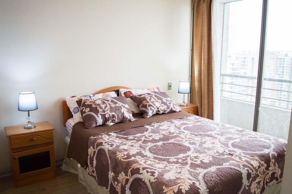 This 1 bedroom furnished Apartment is located a 5 minutes’ walk from the bus stop and a 5 minutes’ walk from the Metro Station Santa Lucía.The apartment has a living room, dinning room, kitchen (open), 1 bathroom and balcony. The bedroom 1 has a double bed, closet, 2 nightstands and bathroom in suite. The place measures 33m² + 3m² of balcony approximately The cost of services like common expenses, hot water, cold water and electricity are paid in advance together with the monthly rent, with a consumption limit of $ 122USD. The accommodation has in-house share laundry, price per load for both washers or dryers is $ 2USD approximately. You should pay a security deposit, which will be returned at the end of the lease term; The tenant(s) must also pay $ 56USD fee when the unit is returned for cleaning. The unit is located close to the Biblioteca Nacional de Chile, the Municipal Theater of Santiago, Cine Arte, craft fairs, cultural centers and the Santa Lucia Hill (an important focus for tourism and Sunday walks due to the attractions it presents, such as water fountains, terraces and viewpoints where you can enjoy a privileged view of Santiago.)