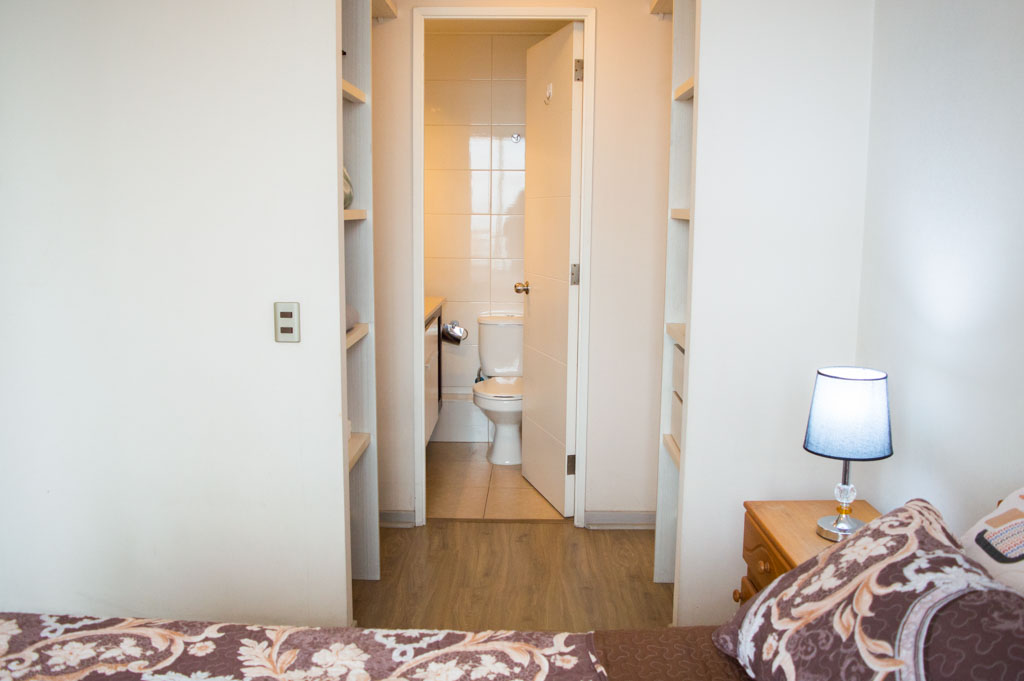 This 1 bedroom furnished Apartment is located a 5 minutes’ walk from the bus stop and a 5 minutes’ walk from the Metro Station Santa Lucía.The apartment has a living room, dinning room, kitchen (open), 1 bathroom and balcony. The bedroom 1 has a double bed, closet, 2 nightstands and bathroom in suite. The place measures 33m² + 3m² of balcony approximately The cost of services like common expenses, hot water, cold water and electricity are paid in advance together with the monthly rent, with a consumption limit of $ 120USD. The accommodation has in-house share laundry, price per load for both washers or dryers is $ 2USD approximately. You should pay a security deposit, which will be returned at the end of the lease term; The tenant(s) must also pay $ 55USD fee when the unit is returned for cleaning. The unit is located close to the Biblioteca Nacional de Chile, the Municipal Theater of Santiago, Cine Arte, craft fairs, cultural centers and the Santa Lucia Hill (an important focus for tourism and Sunday walks due to the attractions it presents, such as water fountains, terraces and viewpoints where you can enjoy a privileged view of Santiago.)