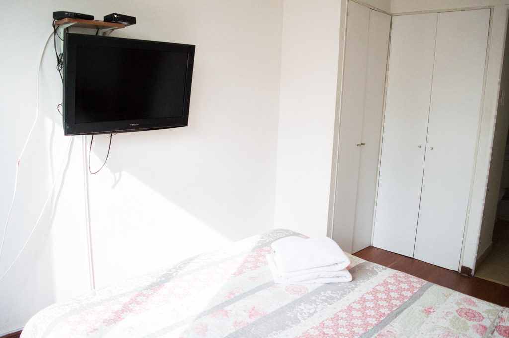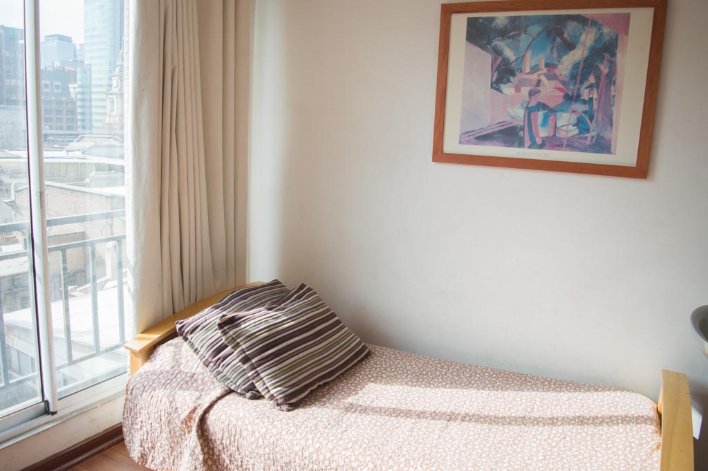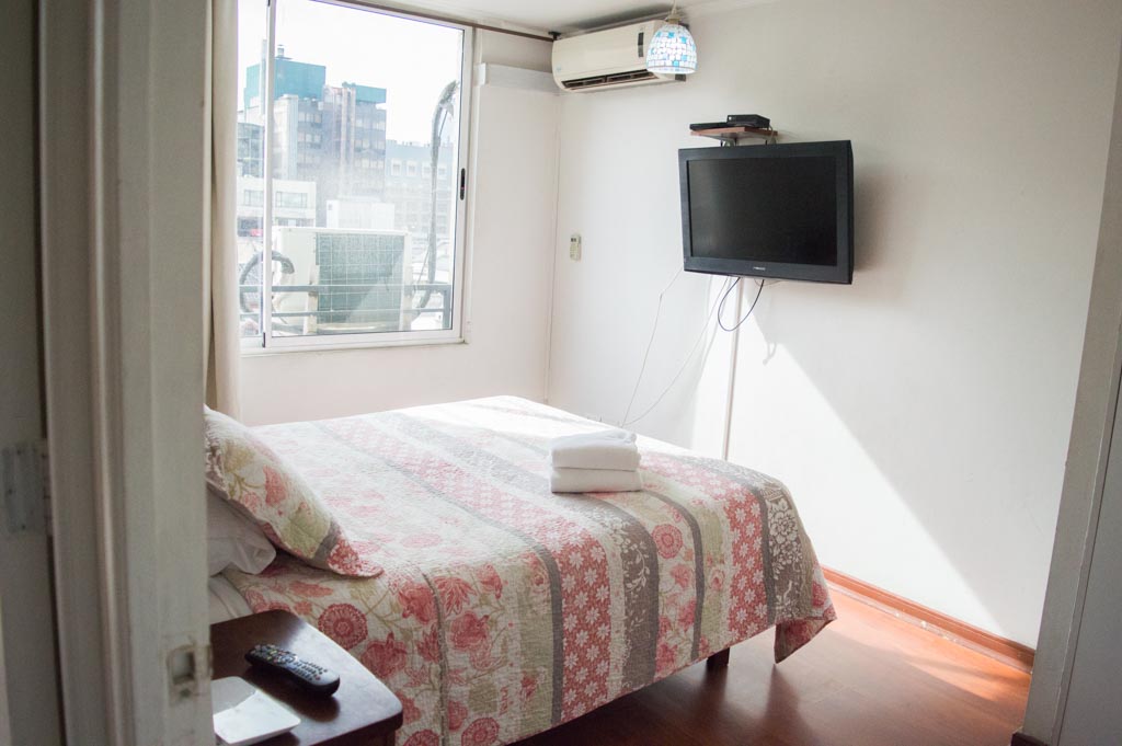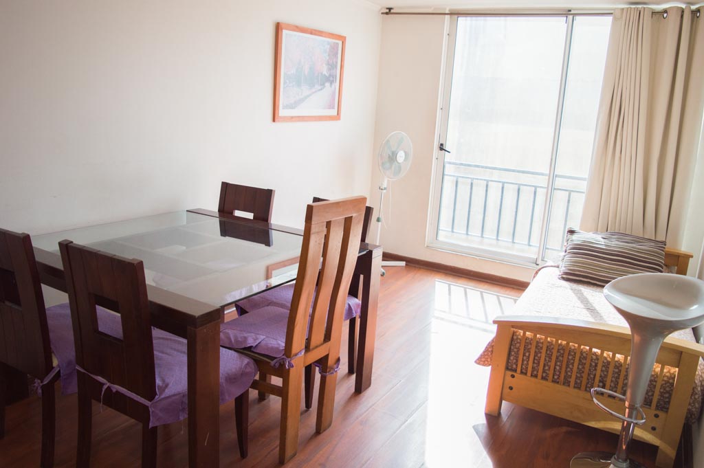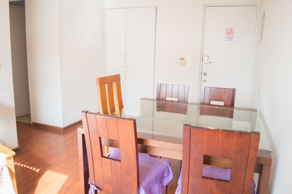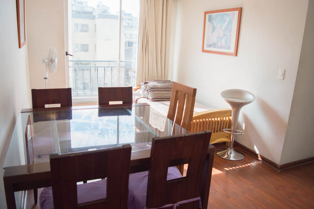 This 2 bedrooms furnished Apartment is located a 2 minutes’ walk from the bus stop and a 2 minutes’ walk from the Metro Station Universidad de Chile.The apartment has a living room, dinning room, kitchen (closed) and 2 bathrooms. The bedroom 1 has a double bed, closet, 2 nightstands, TV and bathroom in suite. The bedroom 2 has a 2 single beds, closet and nightstand. The place measures 50m² approximately. The cost of services like common expenses, hot water, cold water, electricity, internet and TV cable are paid in advance together with the monthly rent, with a consumption limit of $ 217USD. The accommodation has in-house share laundry, price per load for both washers or dryers is $ 1USD approximately. You should pay a security deposit, which will be returned at the end of the lease term; The tenant(s) must also pay $ 46USD fee when the unit is returned for cleaning. The unit is located close to Bernardo O'Higgins Avenue (better known as Alameda,) where you can find different shops, a variety of public transport and the civic center of Santiago; also, a few steps away from the subway, you can find the emblematic José Miguel Carrera National Institute, the University of Chile and the Municipal Theater of Santiago.