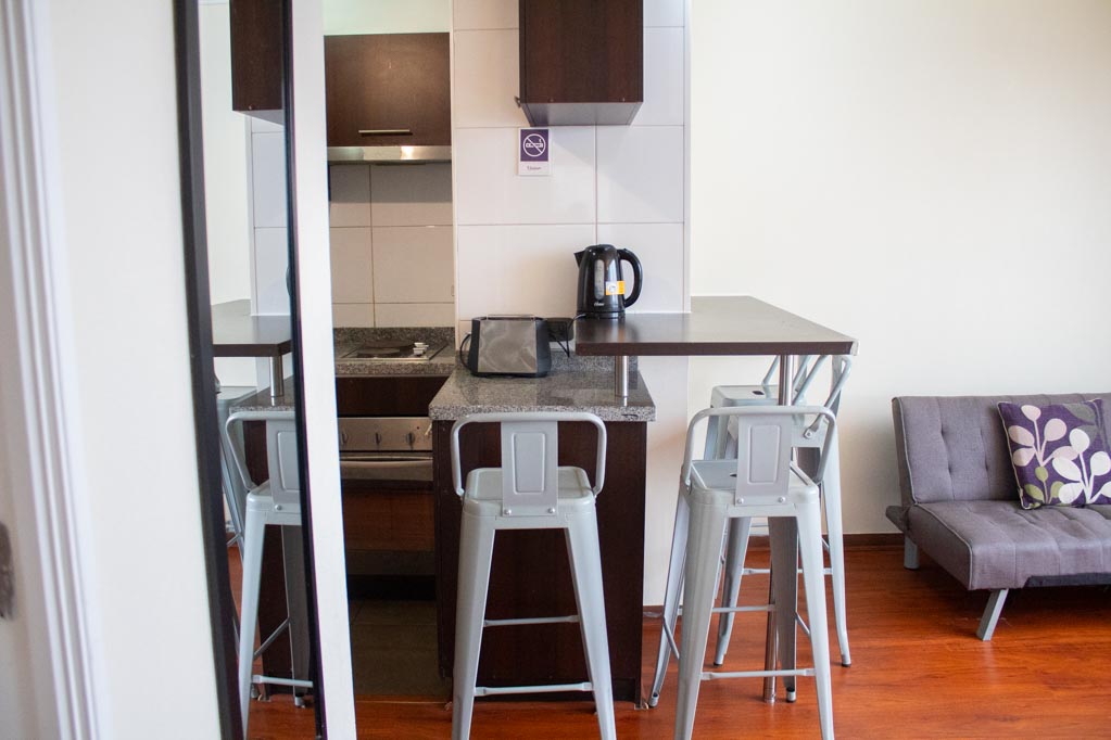 This 2 bedrooms furnished Apartment is located a 4 minutes’ walk from the bus stop and a 4 minutes’ walk from the Metro Station Bellas Artes.The apartment has a living room, dinning room, kitchen (open) and 1 bathroom. The bedroom 1 has a double bed, closet, 2 nightstands and TV. The bedroom 2 has a bunk bed and closet. The place measures 40m² approximately. The cost of services like common expenses, hot water, cold water, electricity and internet are paid in advance together with the monthly rent, with a consumption limit of $ 167USD. The accommodation has in-house share laundry, price per load for both washers or dryers is $ 2USD approximately. You should pay a security deposit, which will be returned at the end of the lease term; The tenant(s) must also pay $ 33USD fee when the unit is returned for cleaning. The unit is located close to the neighborhoods Lastarria and Bellas Artes (historic - cultural neighborhoods), characterized by its XIX century mansions restored and used as restaurants, coofee shops, bookstores, cultural centers, among others. A few steps from it, you will find the Chilean National Museum of Fine Arts, in which there are houses the most valuable national and international arts, and the Forest Park, an ideal place for sharing with friends, play sports and go for a walk.