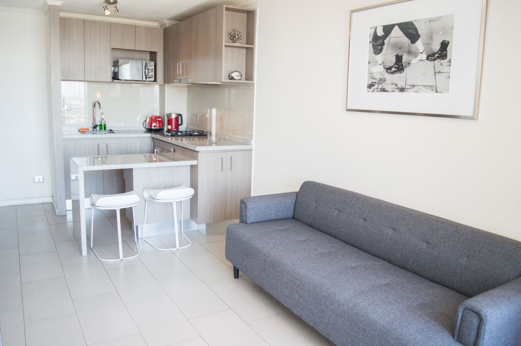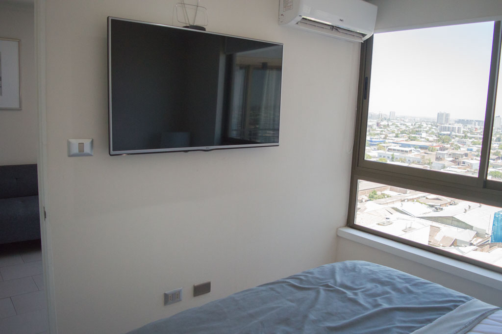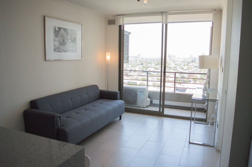 This 1 bedroom furnished Apartment is located a 5 minutes’ walk from the bus stop and a 10 minutes’ walk from the Metro Station Irarrázaval.The apartment has a living room, dinning room, kitchen (open) and balcony. The bedroom 1 has a double bed, closet, 2 nightstands, TV and bathroom in suite. The place measures 45m² + 2m² of balcony approximately The cost of services like common expenses, hot water, cold water, electricity and gas are paid in advance together with the monthly rent, with a consumption limit of $ 133USD. The accommodation has in-house share laundry, price per load for both washers or dryers is $ 2USD approximately. You should pay a security deposit, which will be returned at the end of the lease term; The tenant(s) must also pay $ 35USD fee when the unit is returned for cleaning. The unit is located close to Irarrázaval Avenue, one of the main thoroughfares of Santiago, characterized by its different shops, supermarkets, restaurants, pubs and nightclubs. It also has various means of public transport to different parts of the city.