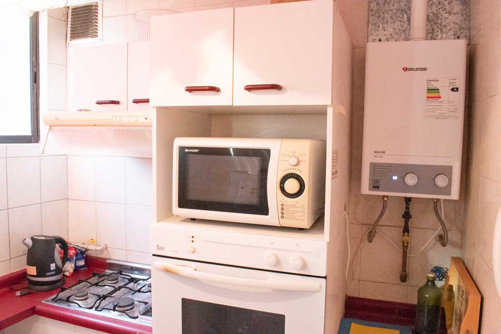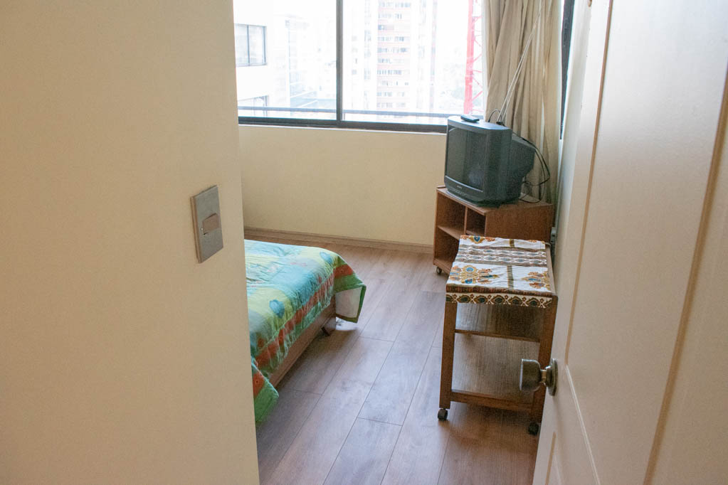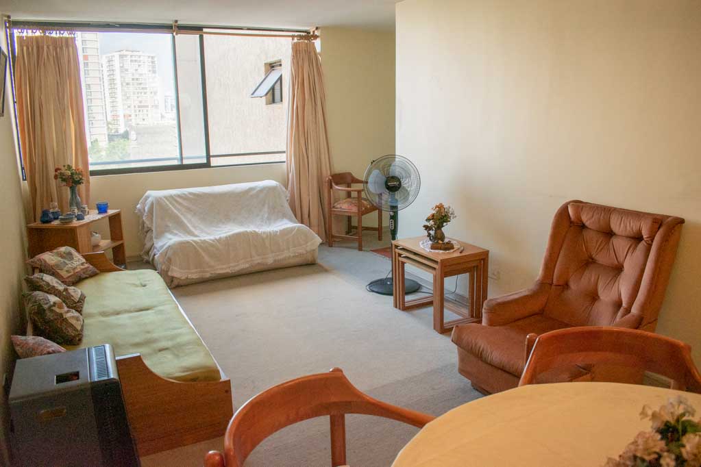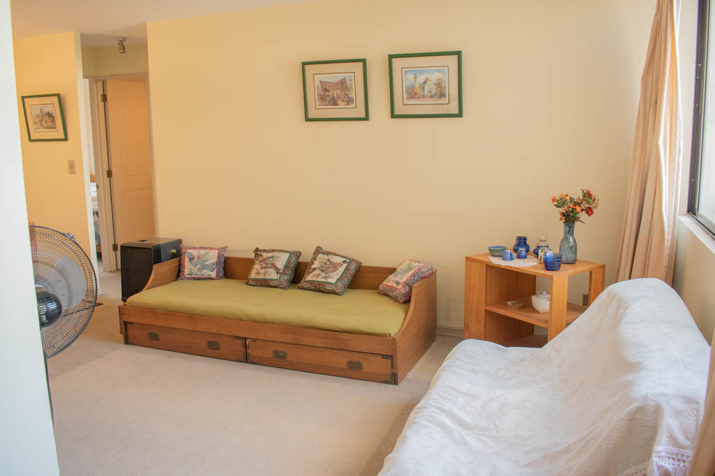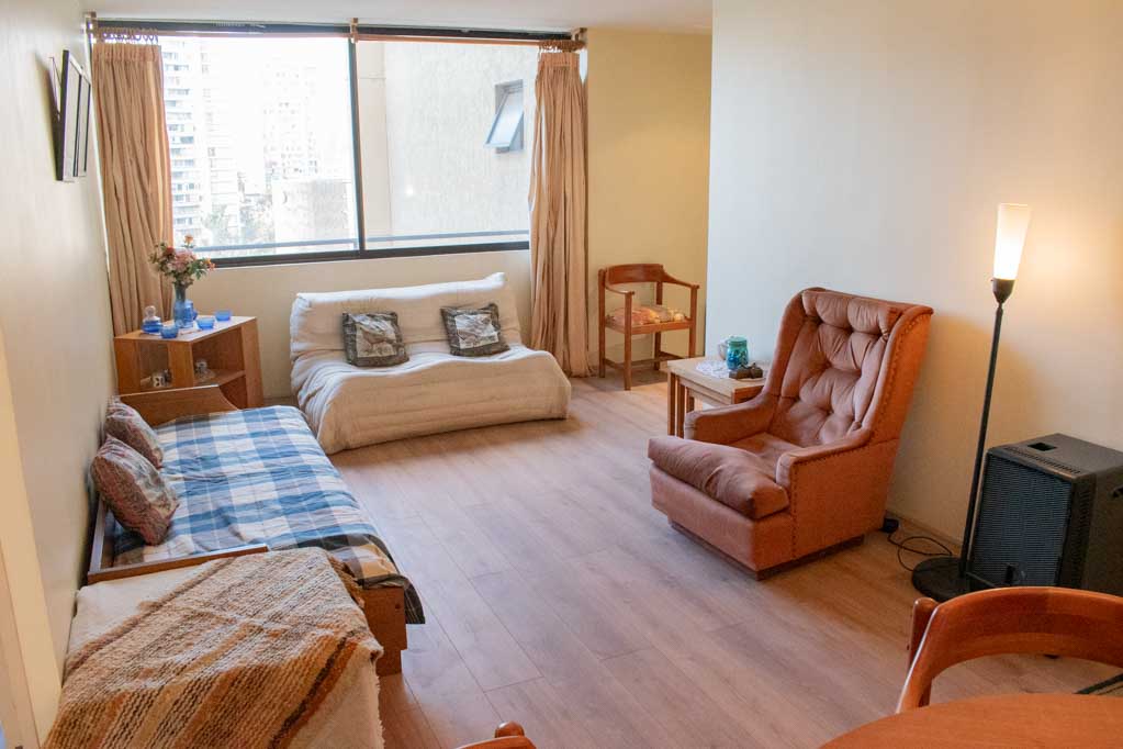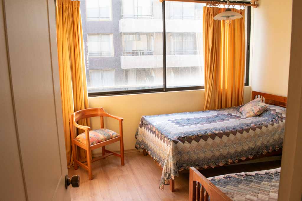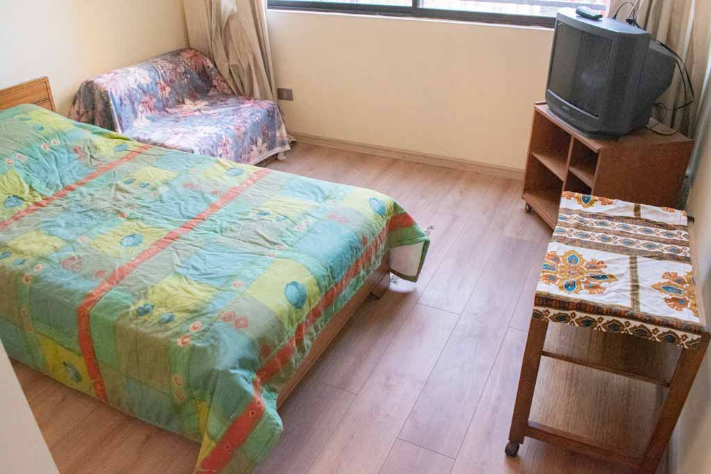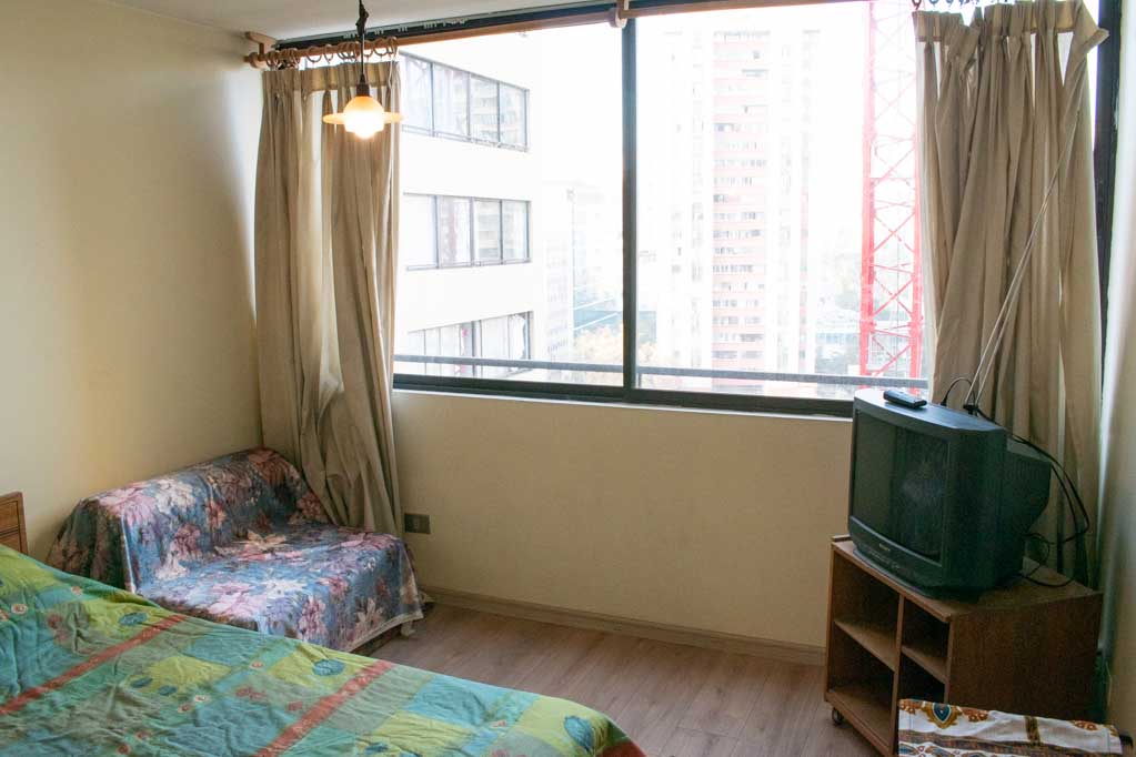 This 2 bedrooms furnished Apartment is located a 5 minutes’ walk from the bus stop and a 5 minutes’ walk from the Metro Station Santa Lucía.The apartment has a living room, dinning room, kitchen (closed), 1 bathroom and 1 estacionamiento (optional for additional value of $ 111USD). The bedroom 1 has a 2 single beds, closet and nightstand. The bedroom 2 has a single bed, closet, couch and TV. The place measures 60m² approximately. The cost of services like common expenses, hot water, cold water, electricity and gas are paid in advance together with the monthly rent, with a consumption limit of $ 146USD. The accommodation has in-house share laundry, price per load for both washers or dryers is $ 2USD approximately. You should pay a security deposit, which will be returned at the end of the lease term; The tenant(s) must also pay $ 47USD fee when the unit is returned for cleaning. The unit is located close to the Faculty of Architecture of the University of Chile and the Central House of the Catholic University. On Bernardo O'Higgins Avenue (better known as Alameda) it is possible to find a wide range of shops, banks, cinemas, restaurants and public transport. In its vicinity, you can also enjoy the neighborhood Lastarria, known for its variety of bars, cafés, restaurants and cultural centers such as the GAM.