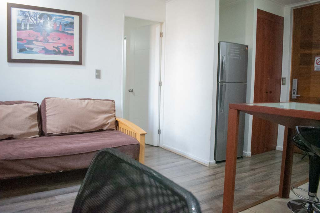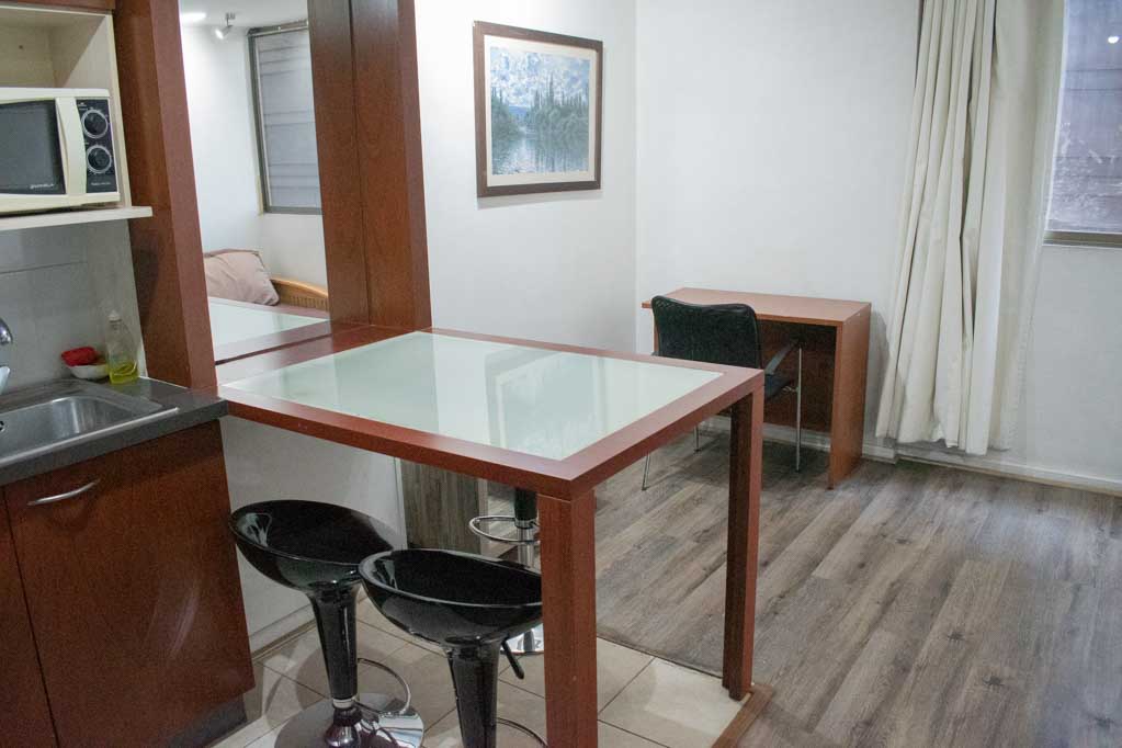This 1 bedroom furnished Apartment is located a 2 minutes’ walk from the bus stop and a 6 minutes’ walk from the Metro Station Bellas Artes.The apartment has a living room, dinning room, kitchen (open) and 1 bathroom. The bedroom 1 has a double bed, walk-in closet, 2 nightstands, TV and bathroom in suite. The place measures 35m² approximately. The cost of services like common expenses, hot water, cold water, electricity, gas, internet and TV cable are paid in advance together with the monthly rent, with a consumption limit of $ 185USD. The accommodation has in-house share laundry, price per load for both washers or dryers is $ 2USD approximately. You should pay a security deposit, which will be returned at the end of the lease term; The tenant(s) must also pay $ 35USD fee when the unit is returned for cleaning. The unit is located close to the neighborhoods Lastarria and Bellas Artes (historic - cultural neighborhoods), characterized by its XIX century mansions restored and used as restaurants, coofee shops, bookstores, cultural centers, among others. A few steps from it, you will find the Chilean National Museum of Fine Arts, in which there are houses the most valuable national and international arts, and the Forest Park, an ideal place for sharing with friends, play sports and go for a walk.