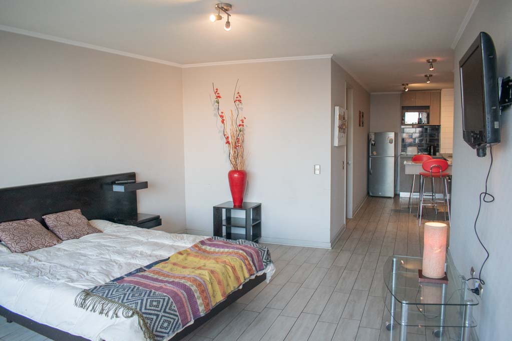 This 1 studio Apartment, with orientation south, is located a 1 minute’ walk from the bus stop and a 6 minutes’ walk from the Metro Station Parque Almagro.General features: