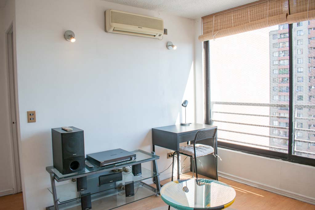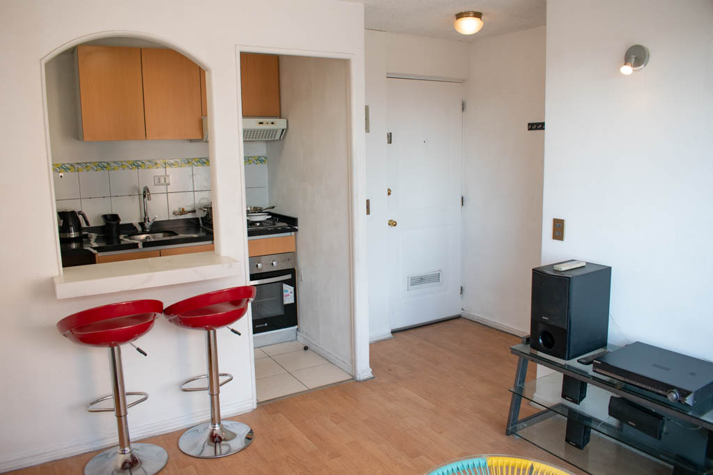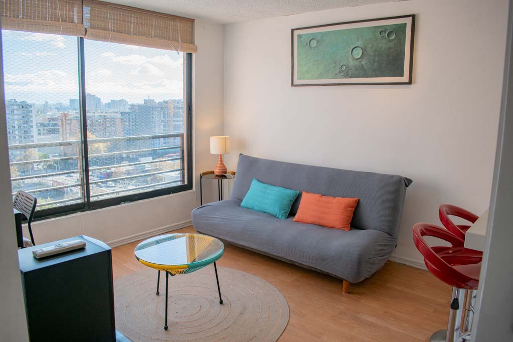 This 1 bedroom furnished Apartment is located a 3 minutes’ walk from the bus stop and a 3 minutes’ walk from the Metro Station Santa Ana.The apartment has a living room, kitchen (open) and 1 bathroom. The bedroom 1 has a double bed, closet, 2 nightstands, TV and bathroom in suite. The place measures 33m² approximately. The cost of services like internet are paid in advance together with the monthly rent, with a consumption limit of $ 35USD. In addition, should be considered, the payment of the expenses of services of common expenses, hot water, cold water, electricity and gas that add $ 99USD approximately. The accommodation has in-house share laundry, price per load for both washers or dryers is $ 2USD approximately. You should pay a security deposit, which will be returned at the end of the lease term; The tenant(s) must also pay $ 46USD fee when the unit is returned for cleaning. The unit is located close to the emblematic high schools 1 Javiera Carrera and Liceo de Aplicación, in addition to the national monument, the church Iglesia Parroquial de Santa Ana. A few steps away, you can find the square Plaza de Armas, an important part of the historic center of Santiago, renowned for its architecture and infrastructure; such as the Post Office of Santiago, the Cathedral of Santiago, the Municipality and the Casa Colorada.