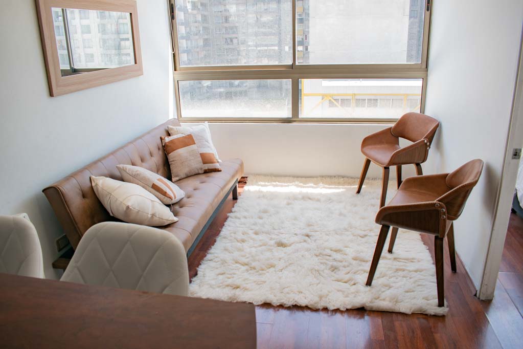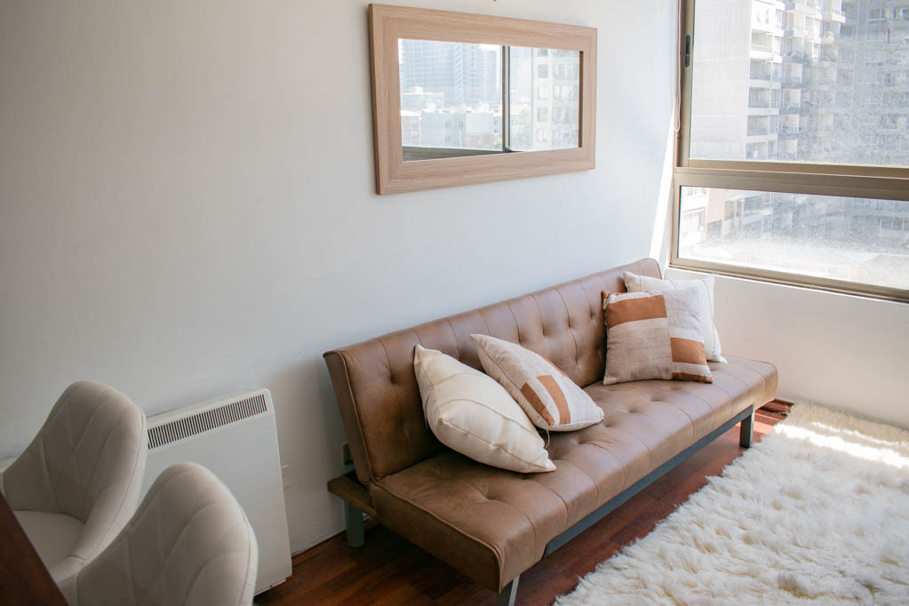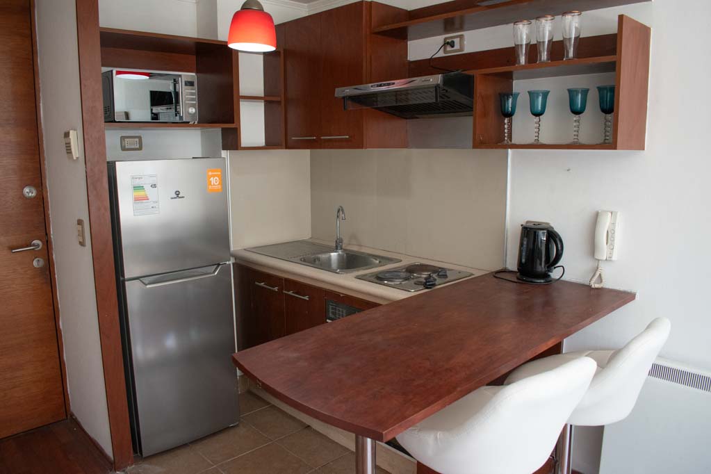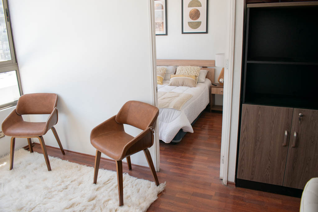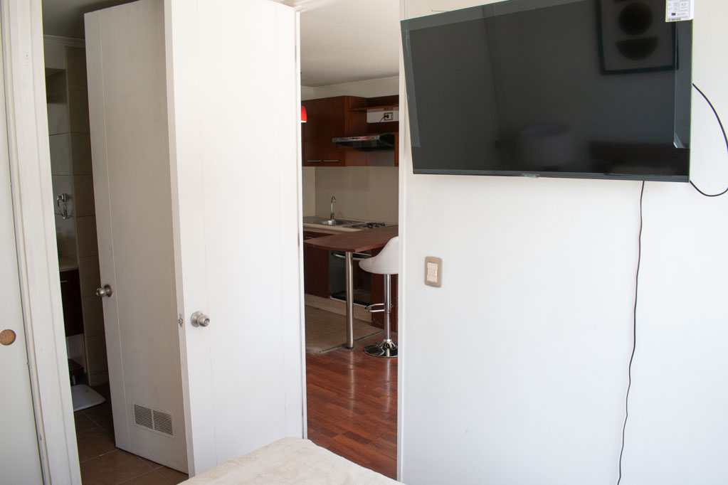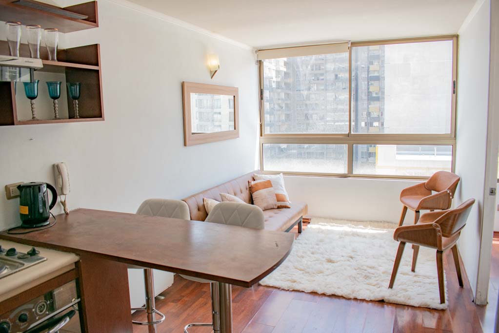 This 1 bedroom furnished Apartment is located a 7 minutes’ walk from the bus stop and a 7 minutes’ walk from the Metro Station Universidad de Chile.The apartment has a living room, kitchen (open) and 1 bathroom. The place measures 28m² approximately. Should be considered, the payment of the expenses of services of common expenses, hot water, cold water and electricity that add $ 94USD approximately. The accommodation has in-house share laundry, price per load for both washers or dryers is $ 2USD approximately. You should pay a security deposit, which will be returned at the end of the lease term; The tenant(s) must also pay $ 41USD fee when the unit is returned for cleaning. The unit is located close to Bernardo O'Higgins Avenue (better known as Alameda,) where you can find different shops, a variety of public transport and the civic center of Santiago; also, a few steps away from the subway, you can find the emblematic José Miguel Carrera National Institute, the University of Chile and the Municipal Theater of Santiago.
