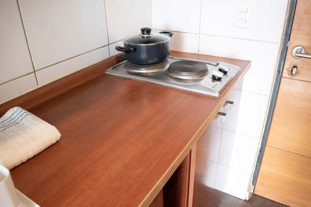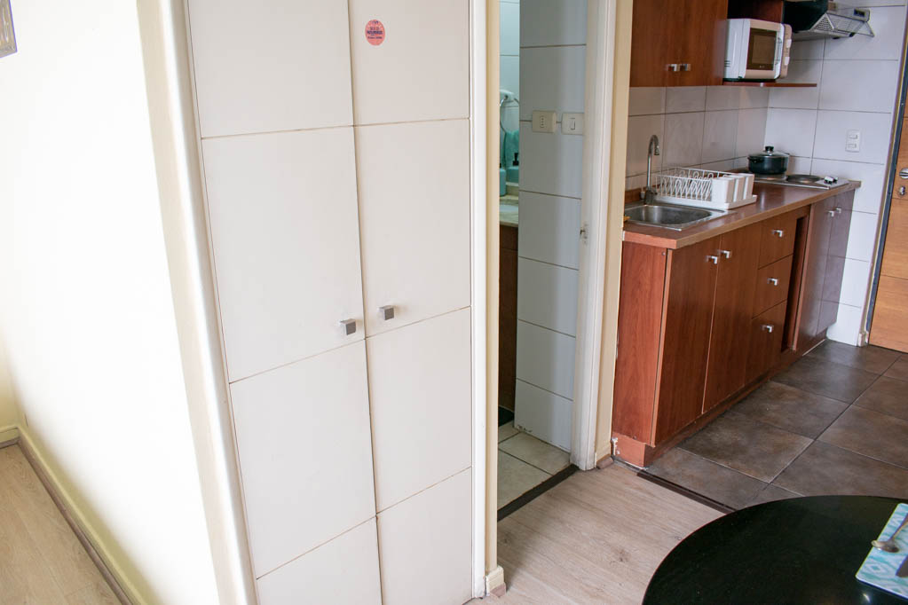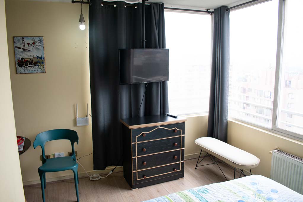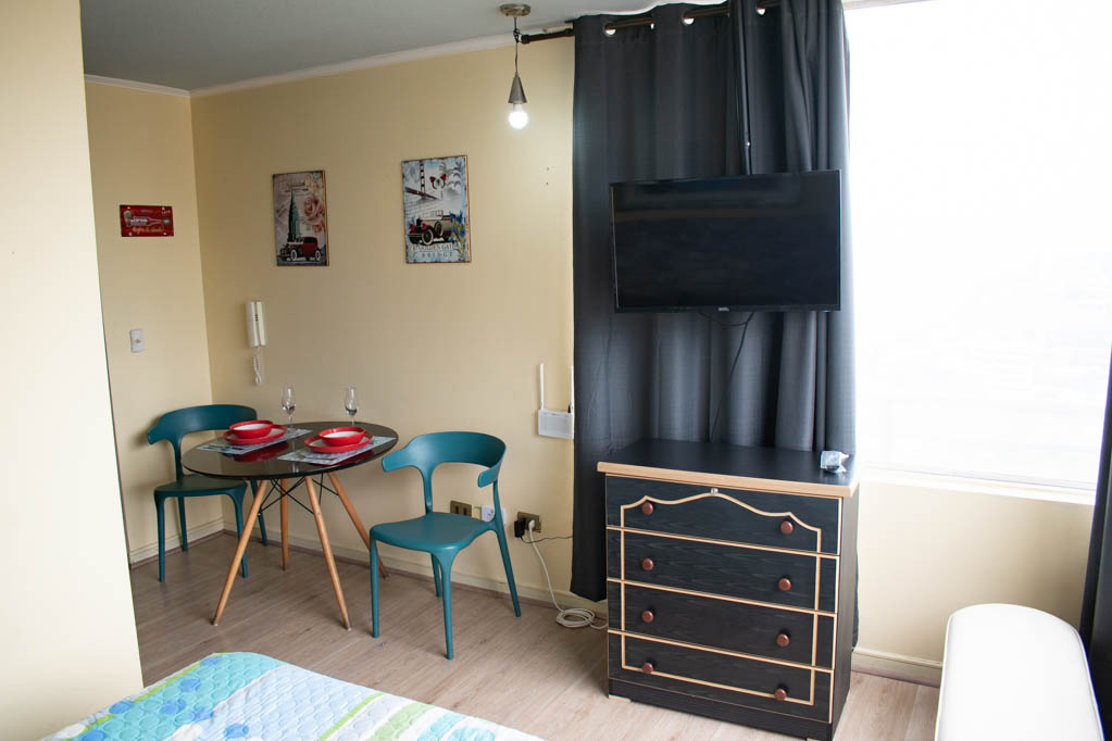 This 1 studio furnished Apartment is located a 1 minute’ walk from the bus stop and a 6 minutes’ walk from the Metro Station Santa Ana.The apartment has a dinning room, kitchen (open) and 1 bathroom. The bedroom 1 has a double bed, closet, dresser and TV. The place measures 22m² approximately. The cost of services like common expenses, hot water, cold water and electricity are paid in advance together with the monthly rent, with a consumption limit of $ 116USD. The accommodation has in-house share laundry, price per load for both washers or dryers is $ 2USD approximately. You should pay a security deposit, which will be returned at the end of the lease term; The tenant(s) must also pay $ 35USD fee when the unit is returned for cleaning. The unit is located close to the emblematic high schools 1 Javiera Carrera and Liceo de Aplicación, in addition to the national monument, the church Iglesia Parroquial de Santa Ana. A few steps away, you can find the square Plaza de Armas, an important part of the historic center of Santiago, renowned for its architecture and infrastructure; such as the Post Office of Santiago, the Cathedral of Santiago, the Municipality and the Casa Colorada.