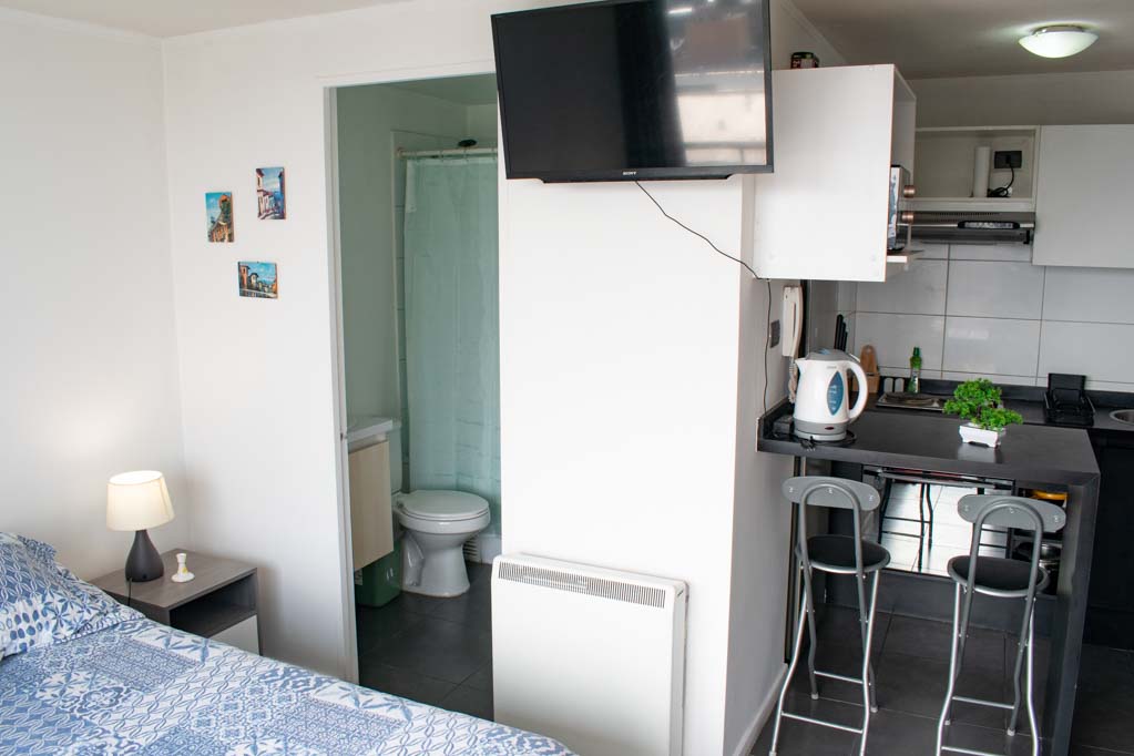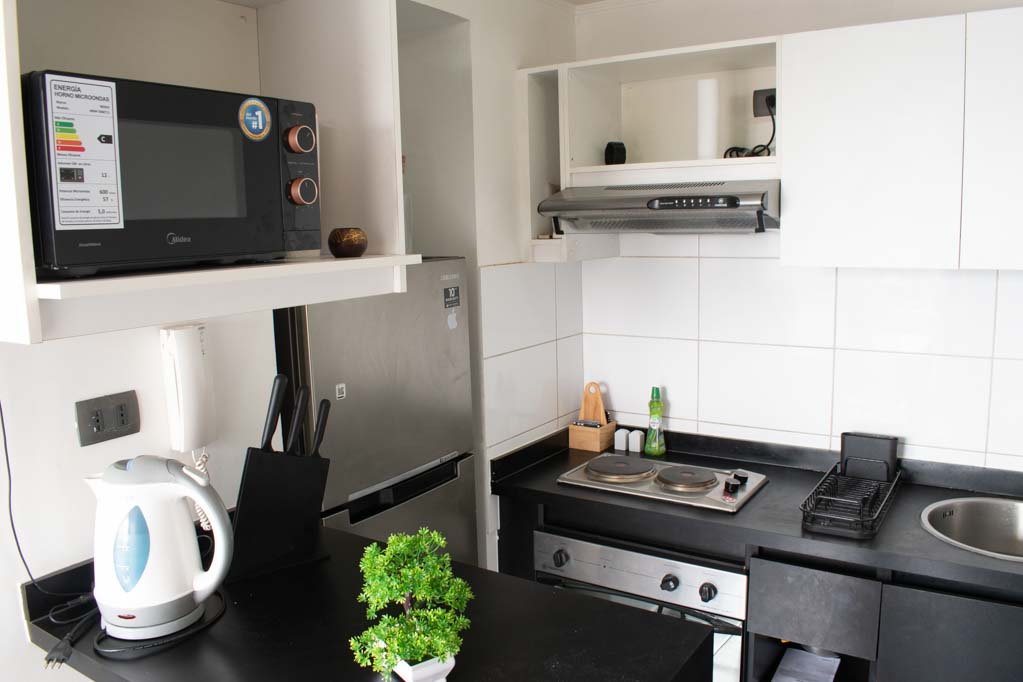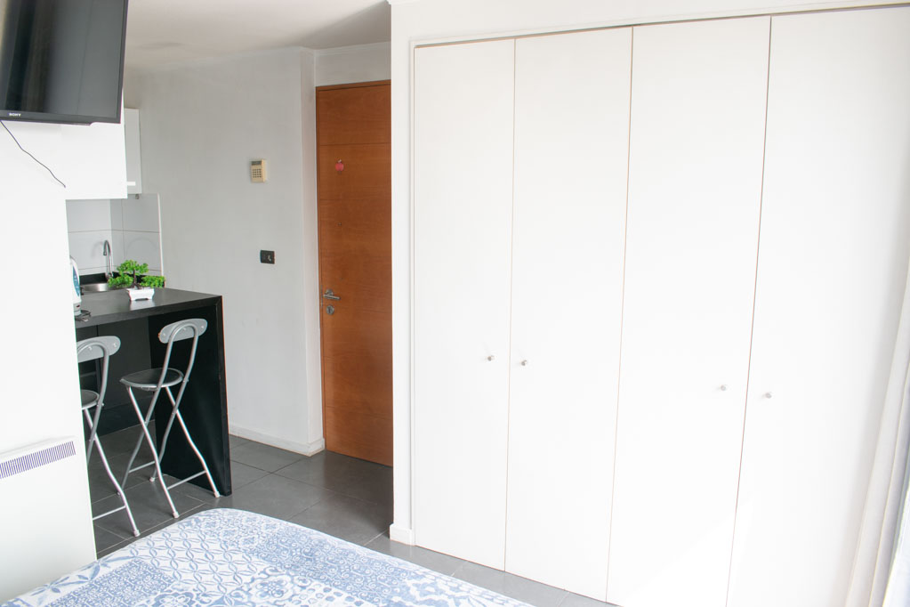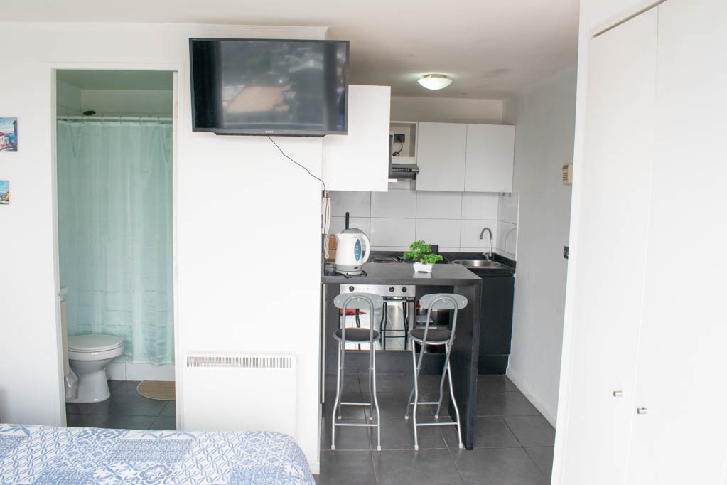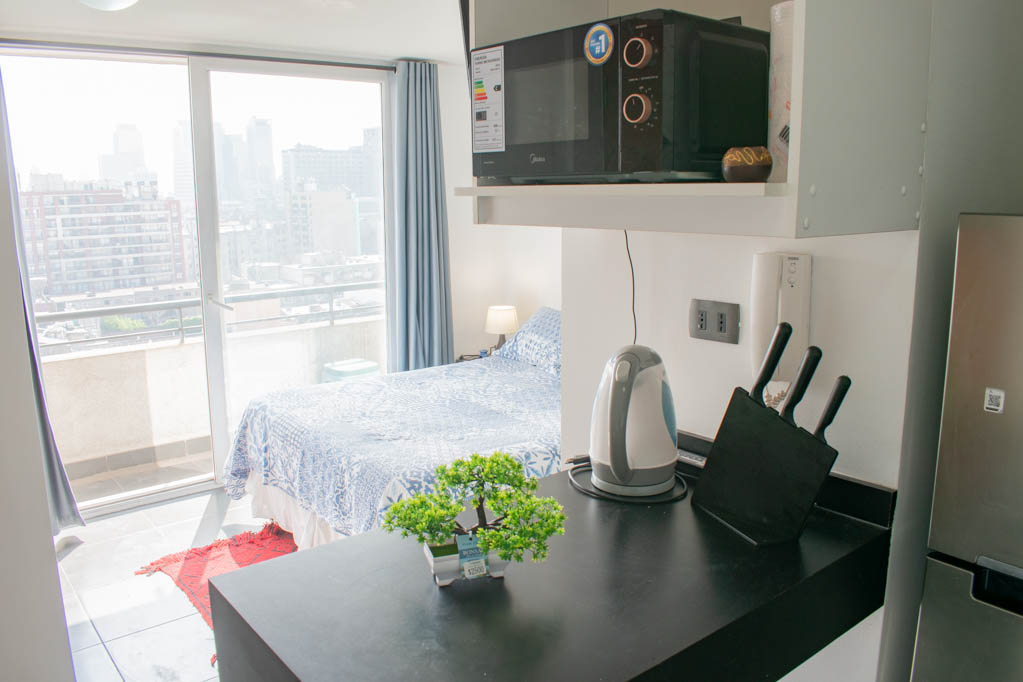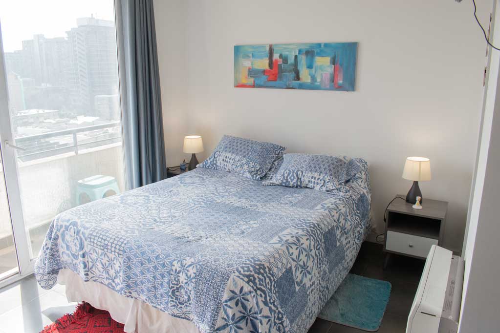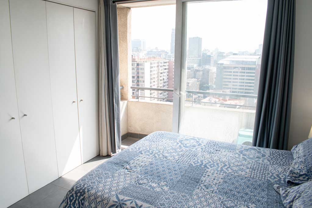 This 1 studio furnished Apartment is located a 2 minutes’ walk from the bus stop and a 10 minutes’ walk from the Metro Station Santa Lucía.The apartment has a kitchen (open), 1 bathroom and balcony. The bedroom 1 has a double bed, closet, 2 nightstands and TV. The place measures 22m² + 1m² of balcony approximately The cost of services like common expenses, hot water, cold water and electricity are paid in advance together with the monthly rent, with a consumption limit of $ 116USD. You should pay a security deposit, which will be returned at the end of the lease term; The tenant(s) must also pay $ 35USD fee when the unit is returned for cleaning. The unit is located close to the Biblioteca Nacional de Chile, the Municipal Theater of Santiago, Cine Arte, craft fairs, cultural centers and the Santa Lucia Hill (an important focus for tourism and Sunday walks due to the attractions it presents, such as water fountains, terraces and viewpoints where you can enjoy a privileged view of Santiago.)