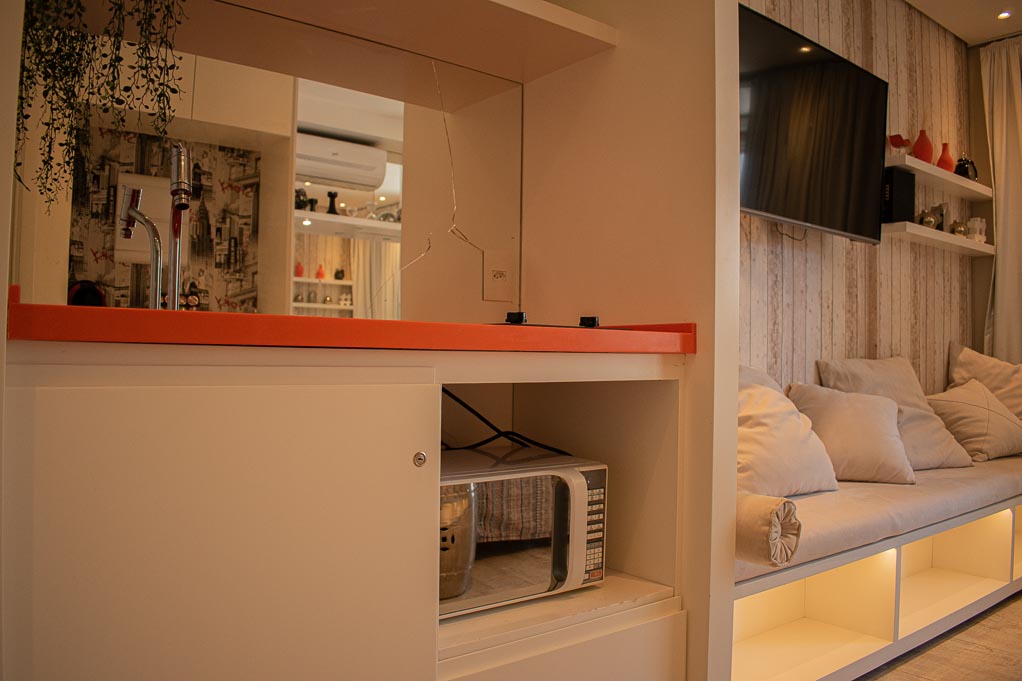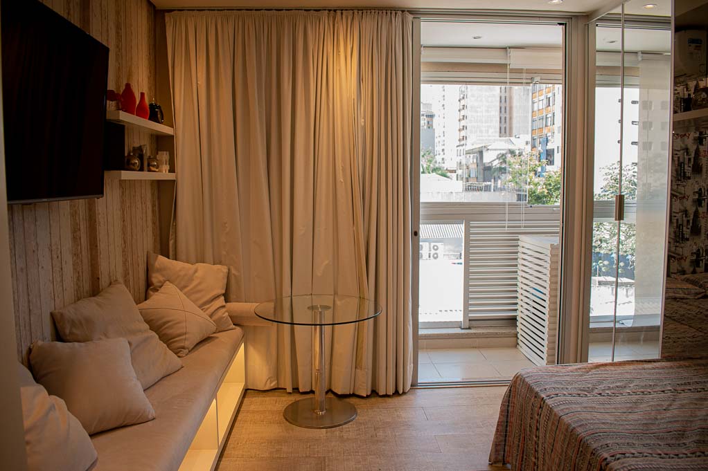 This 1 studio furnished Apartment is located a 1 minute’ walk from the bus stop and a 4 minutes’ walk from the Metro Station Higienópolis-Mackenzie.The apartment has a living room, kitchen (kitchinette), 1 bathroom, balcony, hall and 1 parking. The bedroom 1 has a double bed, wardrobe and TV. The place measures 22m² + 4m² of balcony approximately. The cost of services like common expenses, hot water, cold water, internet and TV cable are paid in advance together with the monthly rent, with a consumption limit of $ 123USD. In addition, should be considered, the payment of the expenses of services of electricity that add $ 18USD approximately. The accommodation has in-house share laundry, price per load for both washers or dryers is $ 1USD approximately. You should pay a security deposit, which will be returned at the end of the lease term; The tenant(s) must also pay $ 18USD fee when the unit is returned for cleaning. The unit is located close to the one of the most vibrant areas of the city, known as Baixo Augusta district with several restaurants, bars and cultural spaces. Within a walking distance you will be in the Augusta Park, an ideal place for chill out or practice physical exercises. Also you can reach quickly the Avenida Paulista, one of the most important avenues in the city which is considered the financial heart of Brazil, besides having several points of tourist and cultural interest. It has easy access to public transport, with quick connection to other parts of the city.