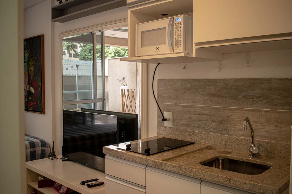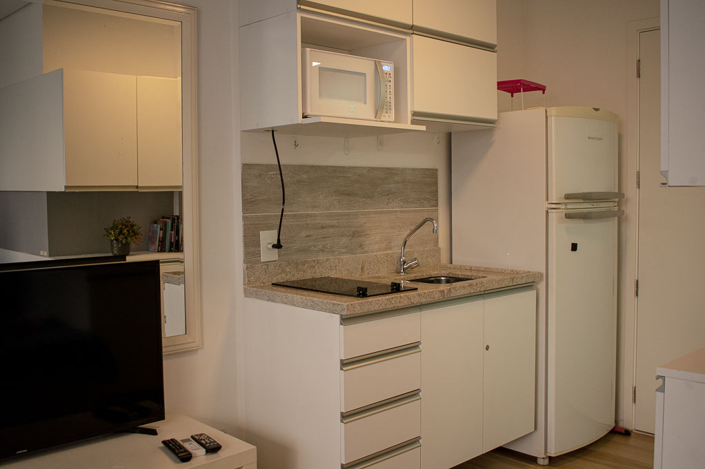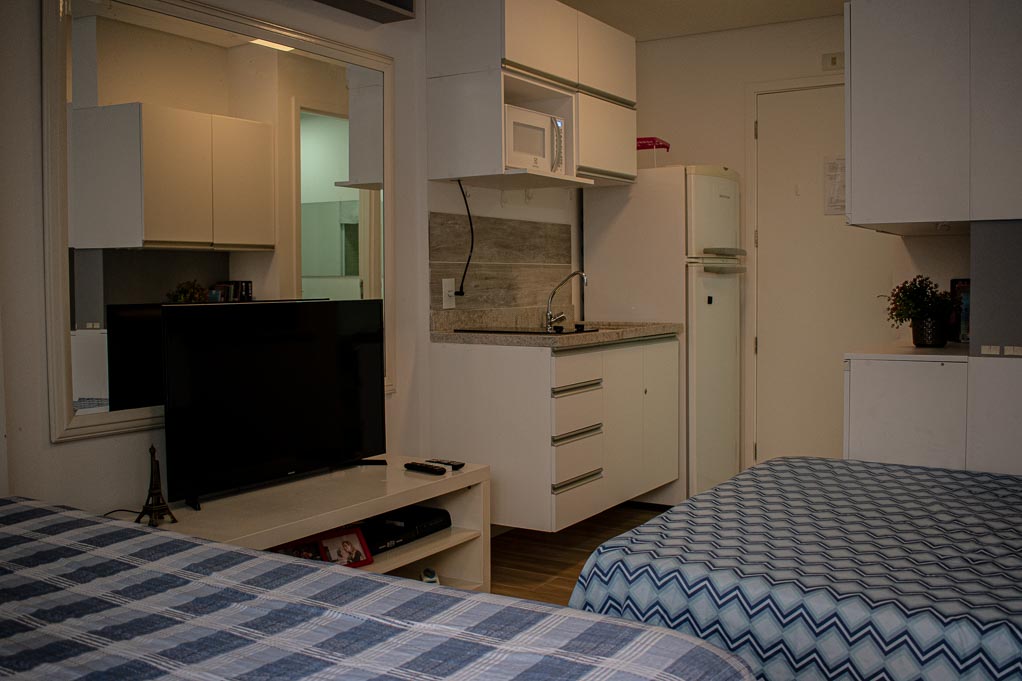This 1 studio furnished Apartment is located a 1 minute’ walk from the bus stop and a 4 minutes’ walk from the Metro Station Higienópolis-Mackenzie.The apartment has a kitchen (kitchinette), 1 bathroom, balcony, hall and 1 parking. The bedroom 1 has a double bed, wardrobe, nightstand and TV. The place measures 22m² + 9m² of balcony approximately. The cost of services like common expenses, hot water, cold water, internet and TV cable are paid in advance together with the monthly rent, with a consumption limit of $ 125USD. In addition, should be considered, the payment of the expenses of services of electricity that add $ 19USD approximately. The accommodation has in-house share laundry, price per load for both washers or dryers is $ 1USD approximately. You should pay a security deposit, which will be returned at the end of the lease term; The tenant(s) must also pay $ 19USD fee when the unit is returned for cleaning. The unit is located close to the one of the most vibrant areas of the city, known as Baixo Augusta district with several restaurants, bars and cultural spaces. Within a walking distance you will be in the Augusta Park, an ideal place for chill out or practice physical exercises. Also you can reach quickly the Avenida Paulista, one of the most important avenues in the city which is considered the financial heart of Brazil, besides having several points of tourist and cultural interest. It has easy access to public transport, with quick connection to other parts of the city.