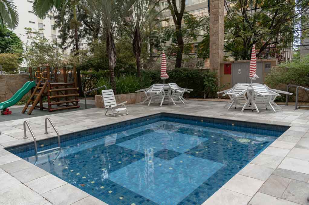 This 2 bedrooms furnished Apartment is located a 3 minutes’ walk from the bus stop.The apartment has a living room, dinning room, kitchen (closed), 2 bathrooms, 1 ½ bathroom, hall and 1 parking. The bedroom 1 has a double bed, closet, 2 nightstands, couch and bathroom in suite. The bedroom 2 has a double bed, wardrobe, dresser and couch. The place measures 130m² approximately. The cost of services like common expenses, hot water, cold water, electricity, gas, TV cable and tax (IPTU) are paid in advance together with the monthly rent, with a consumption limit of $ 357USD. You should pay a security deposit, which will be returned at the end of the lease term; The tenant(s) must also pay $ 28USD fee when the unit is returned for cleaning. The unit is located close to the Avenida Nove de Julho, an important axis connecting with Avenida Paulista, one of the most important avenues of the city and with the downtown of São Paulo. The neighborhood has a plenty of stores and general services, especially bars and restaurants. It has easy access to public transport, with quick connection to other parts of the city.