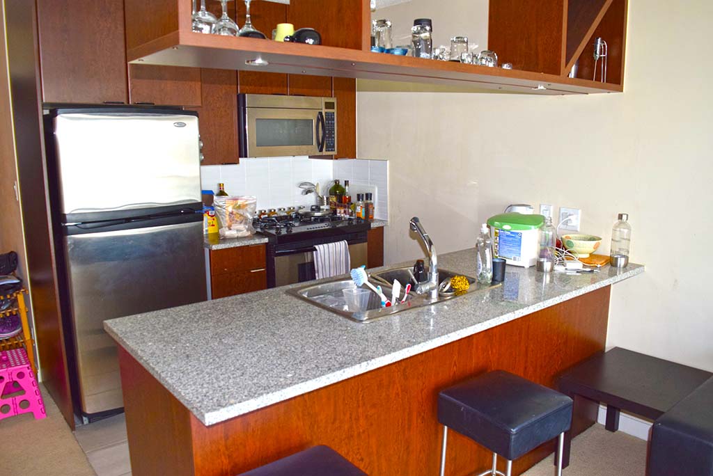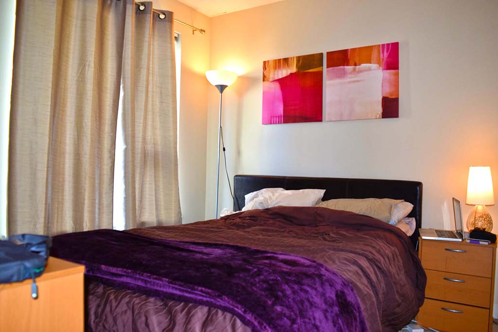 1 furnished bedroom apartment, located 2 minute walk from bus stop, and 10 minute walk from Vancouver City Centre Metro Station.