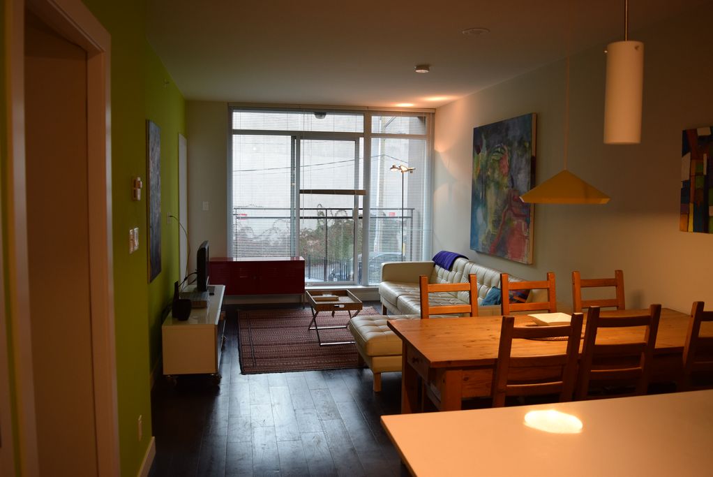 This 1 bedroom and den furnished apartment is located a 3 minute walk from the bus stop and 10 minutes from the Main Street Metro Station.