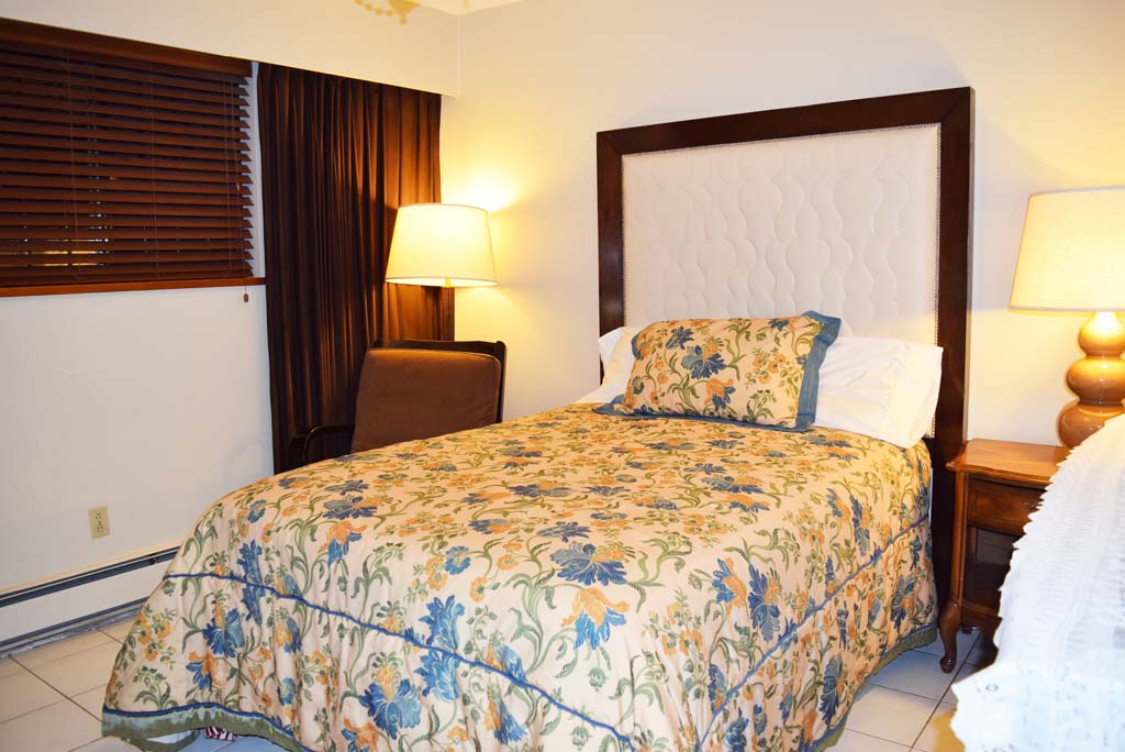 The unit has a shared living room, kitchen, terrace, and 2 share bathrooms for 4 bedrooms. The bedroom 1 has a queen size bed, nightstand, desk, closet, and drawer; the bedroom 2 has a single size bed, nightstand, desk, and closet; the bedroom 3 has a single size bed, nightstand, desk, closet, and drawer; the bedroom 4 has a single size bed, nightstand, desk, closet, and drawer.