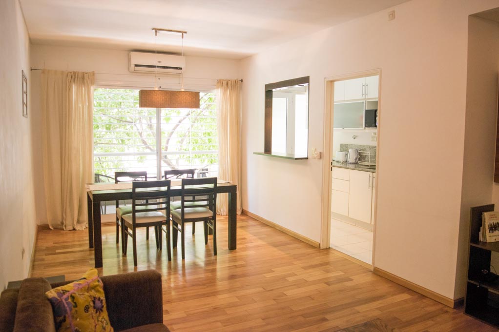 Departamento amoblado de 1 habitación ubicado a 1 minuto caminando de la parada de autobús y a 9 minutos caminando de la Estación de Metro Juramento.La habitación 1 tiene cama matrimonial, walk-in clóset, 2 mesas de noche y televisor; El lugar mide 60m² + 7m² de terraza aproximadamente. Los gastos de servicios de gastos comunes, agua caliente, agua fría, electricidad, gas, internet, TV cable y calefacción se pagan por adelantado junto a la renta mensual, con un límite de consumo de $ 5USD. Se debe pagar garantía (depósito) la que será devuelta al finalizar el período de arriendo; además, se debe pagar $ 0USD al momento de devolver el alojamiento para realizar la limpieza del lugar. Cerca del alojamiento se encuentra la Avenida Cabildo, donde hay diversos comercios, bancos, supermercados y restaurantes. También se ubica la Plaza Manuel Belgrano (conocida como Plaza Juramento), que está rodeada de bares y restaurantes. Los fines de semana se desarrolla una feria de artesanos locales. La zona contiene una gran variedad de medios de transporte público hacia otros puntos de la ciudad.