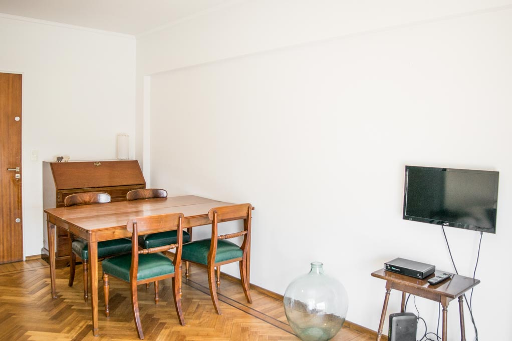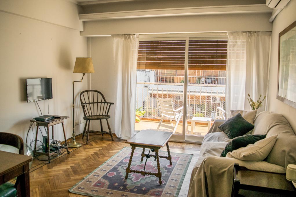Departamento amoblado de 2 habitaciones ubicado a 2 minutos caminando de la parada de autobús y a 4 minutos caminando de la Estación de Metro Juramento.El departamento tiene living, comedor, cocina (cerrada), 1 baño, 1 ½ baño y balcón. La habitación 1 tiene cama matrimonial, armario y 2 mesas de noche; La habitación 2 tiene 2 camas individuales, armario y mesa de noche; El lugar mide 60m² + 10m² de terraza aproximadamente. Los gastos de servicios de gastos comunes, agua caliente, agua fría, electricidad, gas, internet, TV cable y limpieza quincenal se pagan por adelantado junto a la renta mensual, con un límite de consumo de $ 7USD. Además, se debe considerar el pago de gastos de servicios de calefacción que suman $ 0USD aproximadamente. Se debe pagar garantía (depósito) la que será devuelta al finalizar el período de arriendo. Cerca del alojamiento se encuentra la Avenida Cabildo, donde hay diversos comercios, bancos, supermercados y restaurantes. También se ubica la Plaza Manuel Belgrano (conocida como Plaza Juramento), que está rodeada de bares y restaurantes. Los fines de semana se desarrolla una feria de artesanos locales. La zona contiene una gran variedad de medios de transporte público hacia otros puntos de la ciudad.