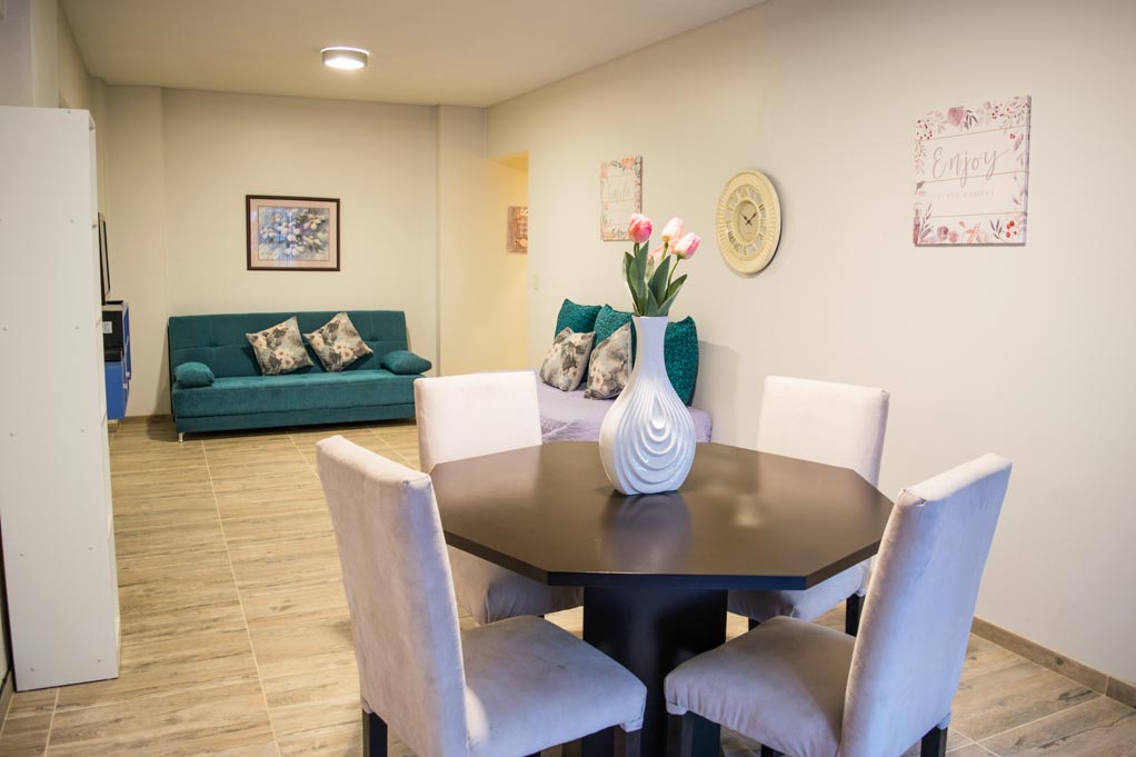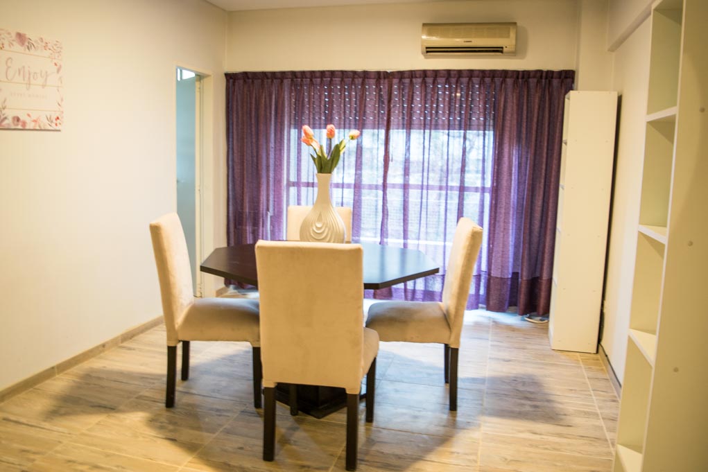 Departamento amoblado de 1 habitación ubicado a 2 minutos caminando de la parada de autobús y a 5 minutos caminando de la Estación de Metro José Hernández.El departamento tiene living, comedor, cocina (cerrada), 1 baño y balcón. La habitación 1 tiene cama matrimonial y armario; El lugar mide 70m² + 3m² de terraza aproximadamente. Los gastos de servicios de gastos comunes, agua caliente, agua fría, electricidad, gas, internet, TV cable, limpieza quincenal y calefacción se pagan por adelantado junto a la renta mensual, con un límite de consumo de $ 220USD. Se debe pagar garantía (depósito) la que será devuelta al finalizar el período de arriendo. Cerca del alojamiento se encuentra la Avenida Cabildo, donde hay una zona con diversos comercios, bancos, supermercados y restaurantes. Una de las sedes de la Universidad de Belgrano se encuentra ubicada en este sector. El sector es principalmente residencial y tranquilo.