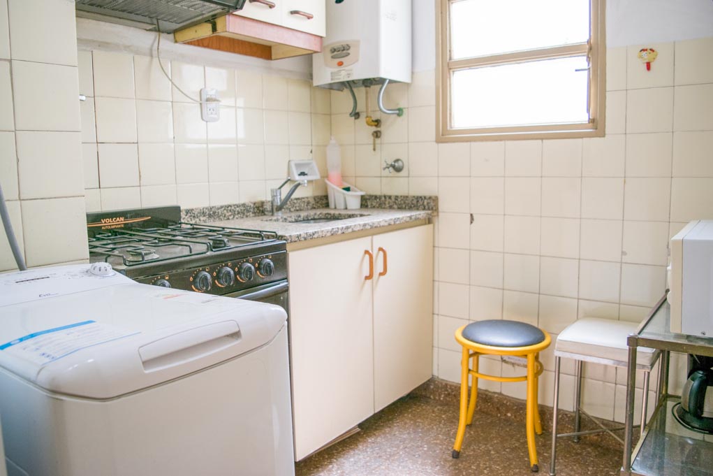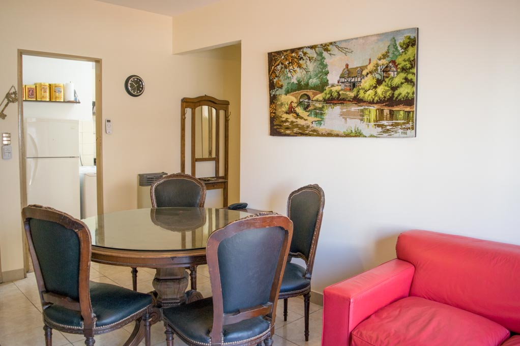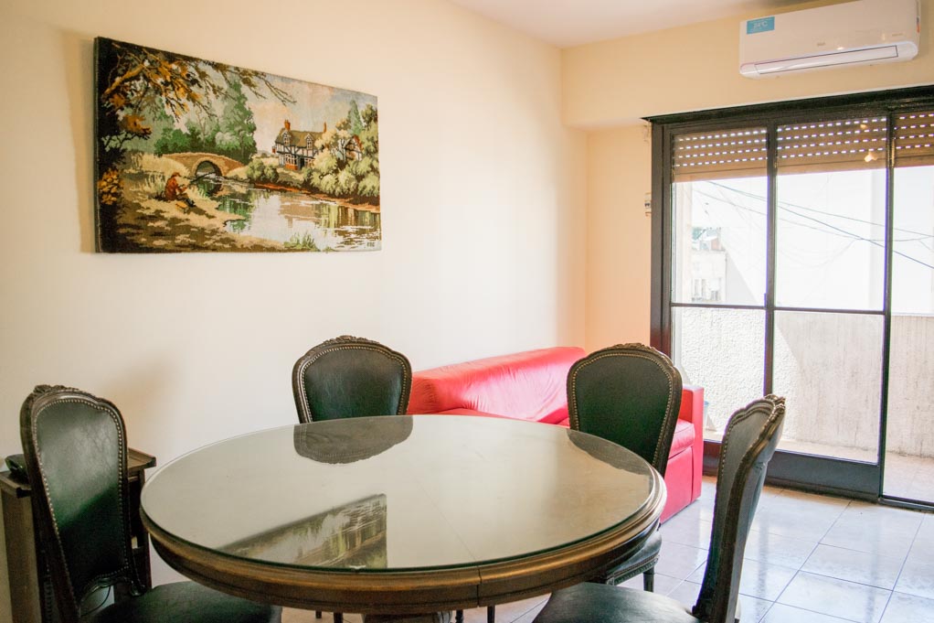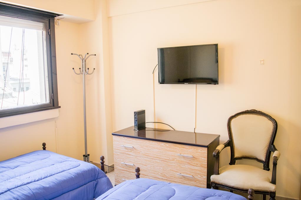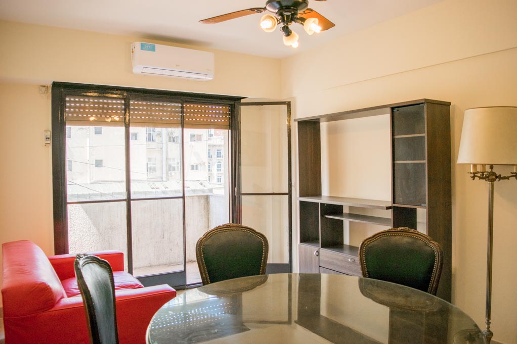 Departamento amoblado de 1 habitación ubicado a 1 minuto caminando de la parada de autobús y a 4 minutos caminando de la Estación de Metro Plaza de Mayo.El departamento tiene living, comedor, cocina (cerrada), 1 baño y balcón. La habitación 1 tiene 2 camas individuales, armario, cómoda, mesa de noche, televisor y silla; El lugar mide 38m² + 2m² de terraza aproximadamente. Los gastos de servicios de gastos comunes, agua caliente, agua fría, internet, TV cable, teléfono y calefacción se pagan por adelantado junto a la renta mensual, con un límite de consumo de $ 4USD. Además, se debe considerar el pago de gastos de servicios de electricidad y gas que suman $ 1USD aproximadamente. Se debe pagar garantía (depósito) la que será devuelta al finalizar el período de arriendo; además, se debe pagar $ 1USD al momento de devolver el alojamiento para realizar la limpieza del lugar.