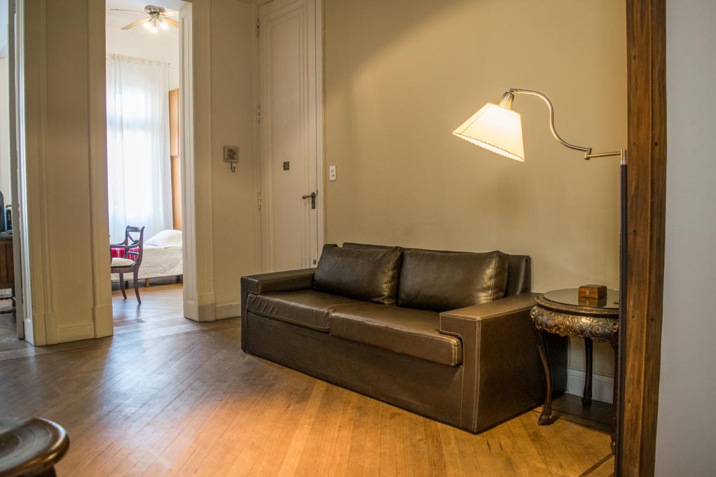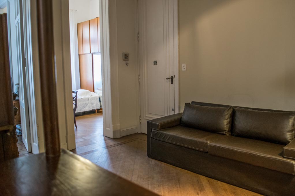 Departamento amoblado de 2 habitaciones ubicado a 1 minuto caminando de la parada de autobús y a 2 minutos caminando de la Estación de Metro Lima.El departamento tiene living, comedor, cocina (cerrada), 1 baño y 1 ½ baño. La habitación 1 tiene cama matrimonial, armario, cómoda, 2 mesas de noche y televisor; La habitación 2 tiene cama individual, armario y escritorio; El lugar mide 110m² aproximadamente. Los gastos de servicios de gastos comunes, agua caliente, agua fría, electricidad, gas, internet, TV cable, limpieza quincenal y calefacción se pagan por adelantado junto a la renta mensual, con un límite de consumo de $ 300USD. Se debe pagar garantía (depósito) la que será devuelta al finalizar el período de arriendo. Cerca del alojamiento se encuentra se encuentra el centro comercial Abasto (Ex - Mercado Central de Frutos). Esta zona se caracteriza por su gran variedad de restaurantes, bares, museos y teatros que hacen referencia al popular estilo musical de Buenos Aires: “El Tango”. Se ubica cerca de algunas de las avenidas más transitadas como Avenida Córdoba, Pueyrredón y Corrientes, donde se puede acceder a varios medios de transporte público para dirigirse a diversos puntos de la ciudad.