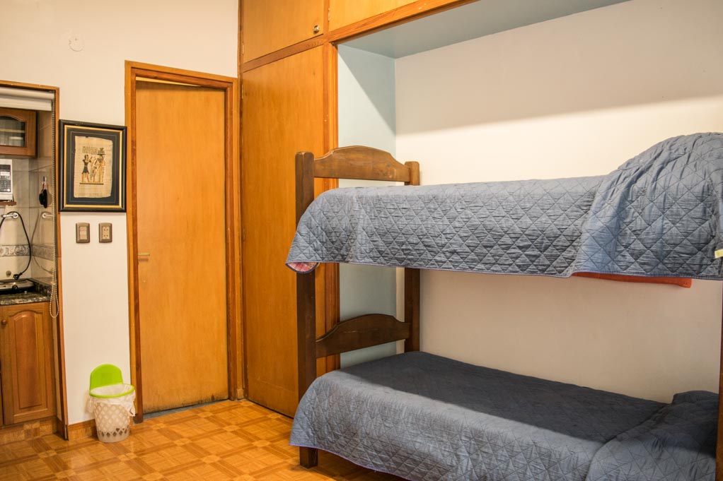 Departamento amoblado de 2 habitaciones ubicado a 1 minuto caminando de la parada de autobús y a 5 minutos caminando de la Estación de Metro Leandro N Alem.El departamento tiene comedor, cocina (kitchinette) y 1 baño. La habitación 1 tiene cama individual, litera, televisor y baño en suite; La habitación 2 tiene cama matrimonial, cómoda y televisor; El lugar mide 45m² aproximadamente. Los gastos de servicios de electricidad, internet, TV cable y calefacción se pagan por adelantado junto a la renta mensual, con un límite de consumo de $ 2USD. Además, se debe considerar el pago de gastos de servicios de gastos comunes, agua caliente y agua fría que suman $ 4USD aproximadamente. Se debe pagar garantía (depósito) la que será devuelta al finalizar el período de arriendo; además, se debe pagar $ 1USD al momento de devolver el alojamiento para realizar la limpieza del lugar.